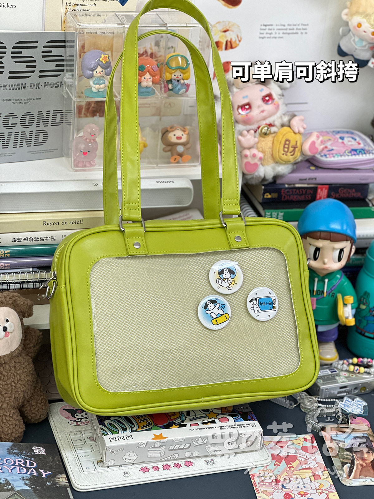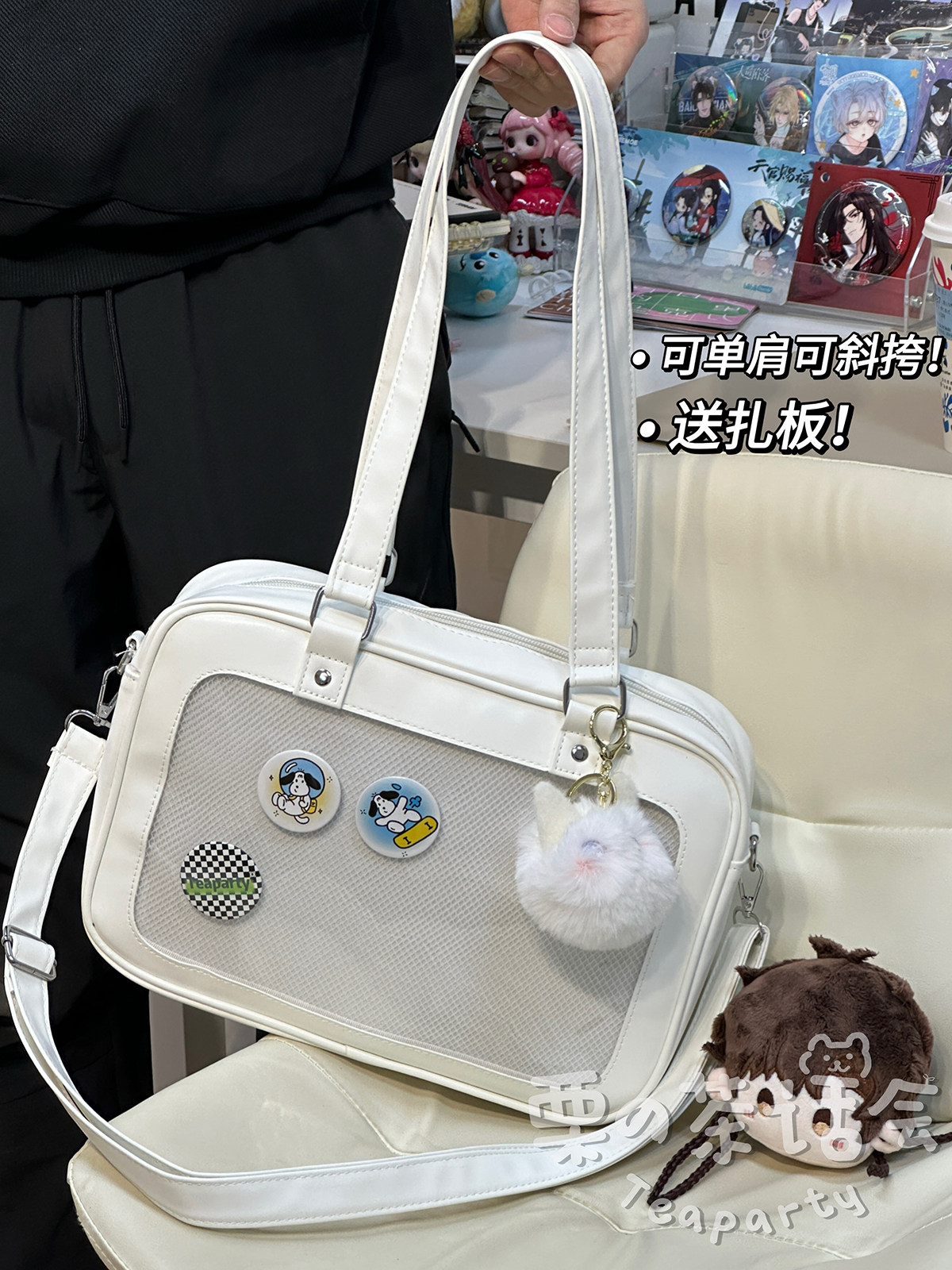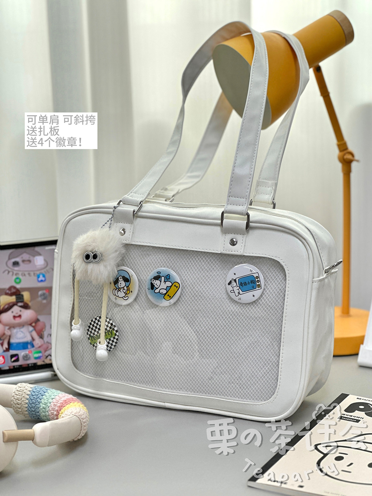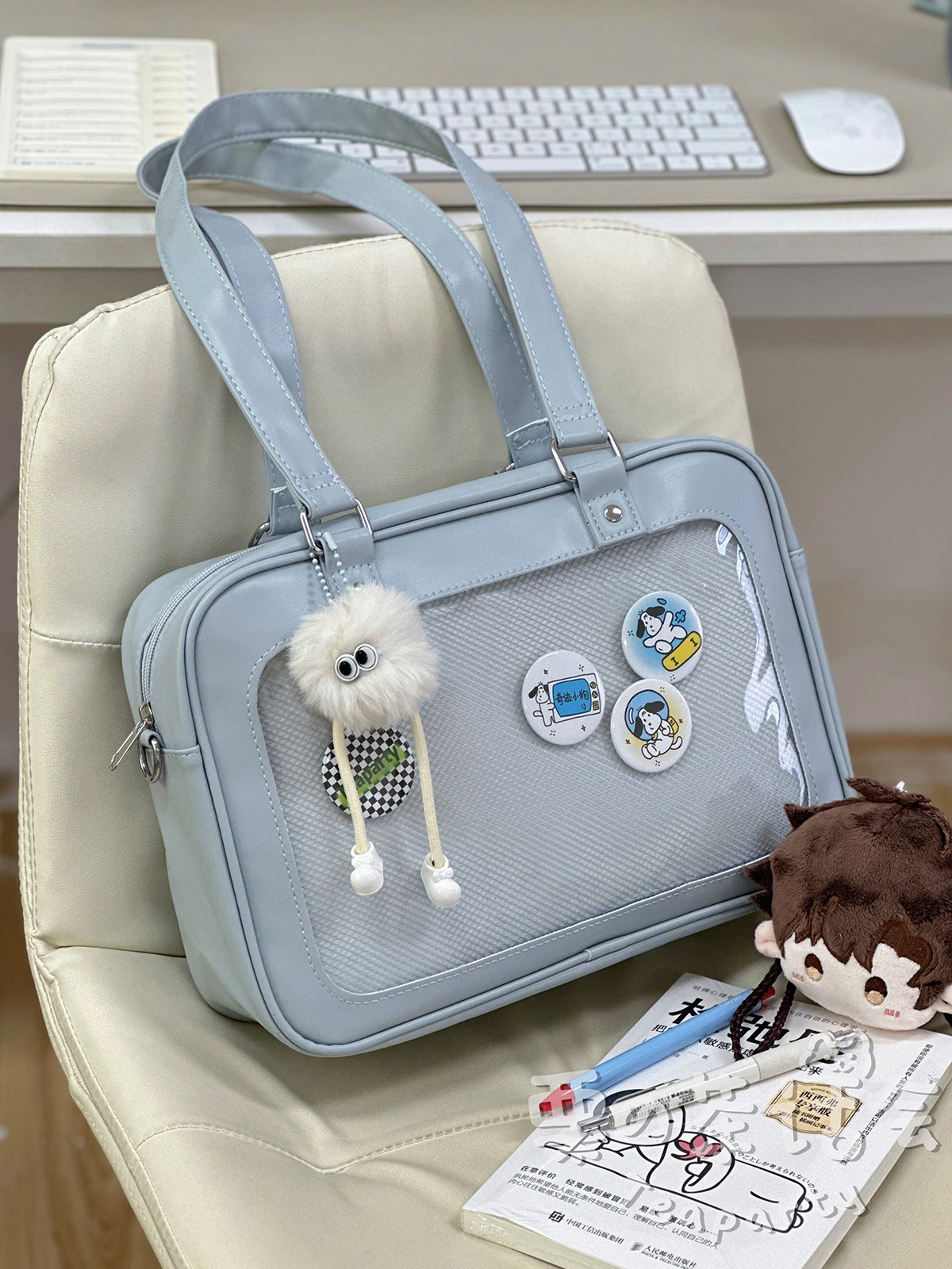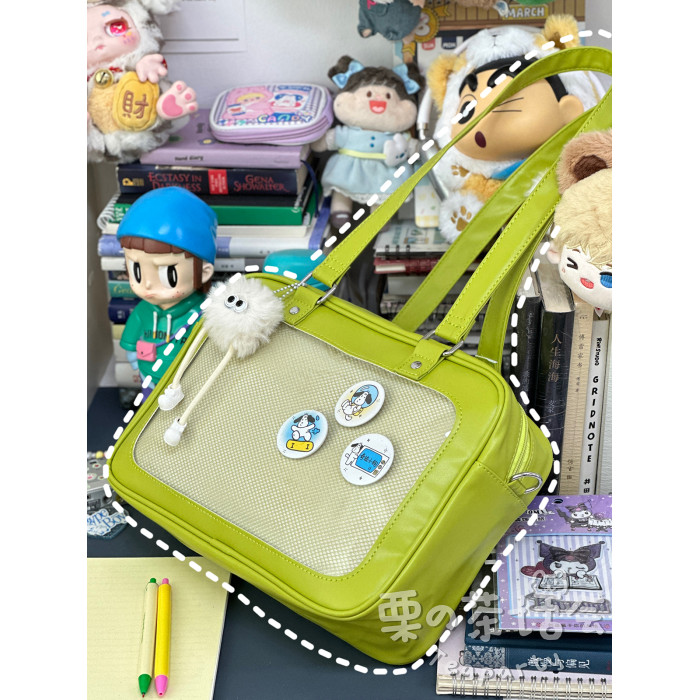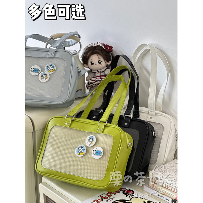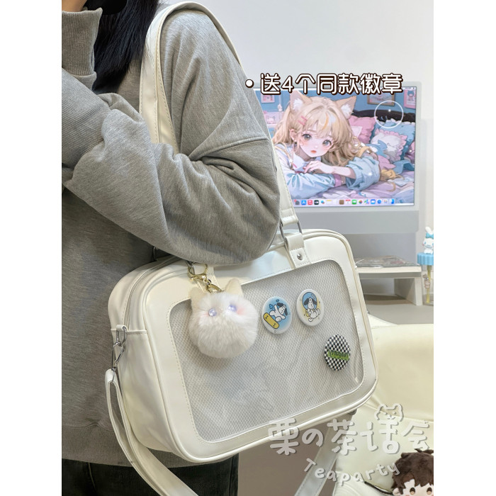 日系軟妹看展吧唧痛包穀子展示袋 學院ins二次元PU手提斜後後背包包女