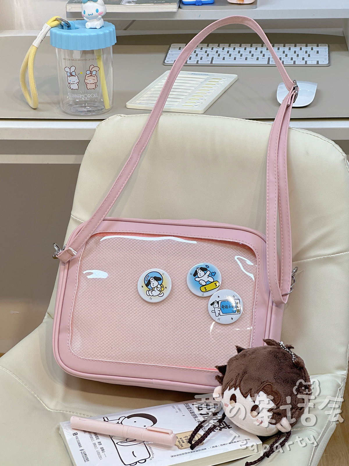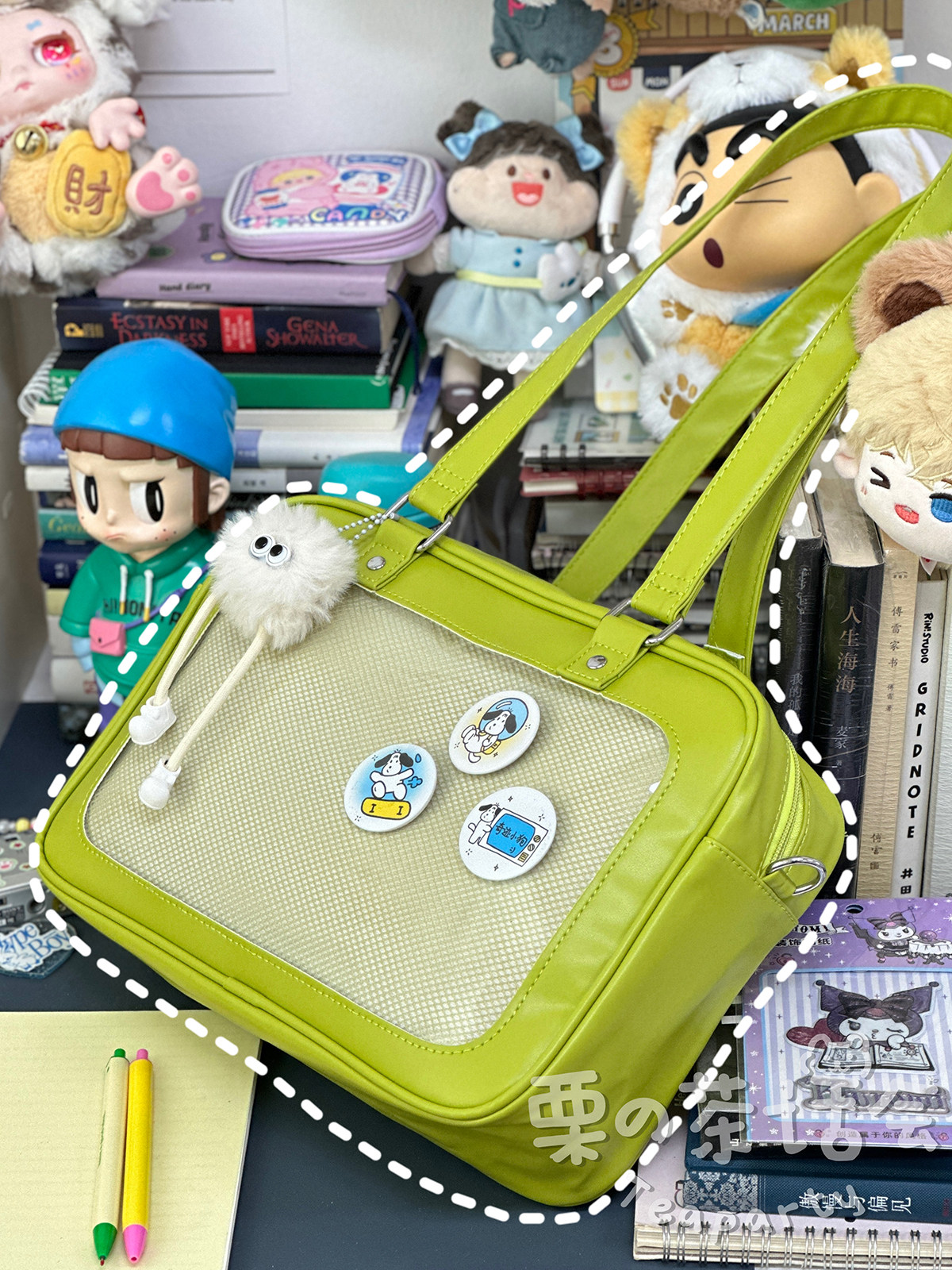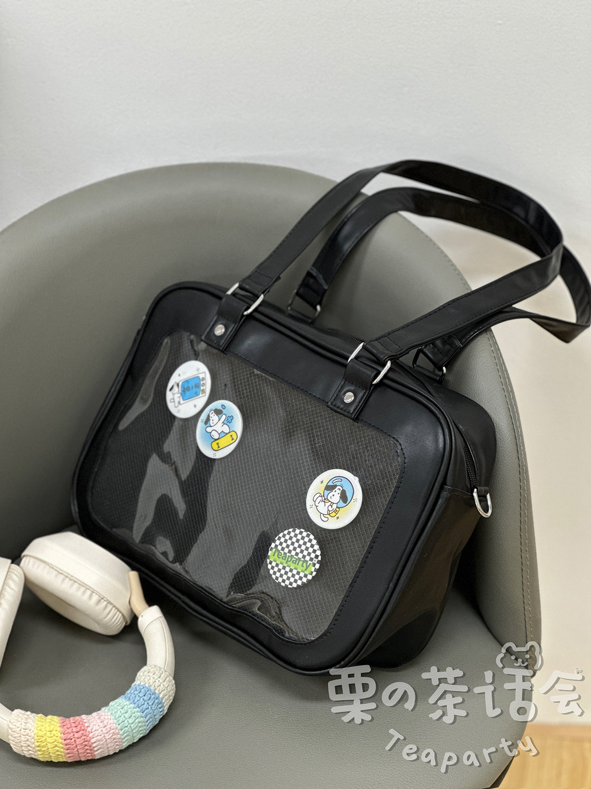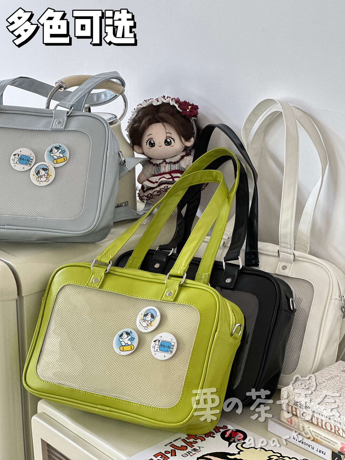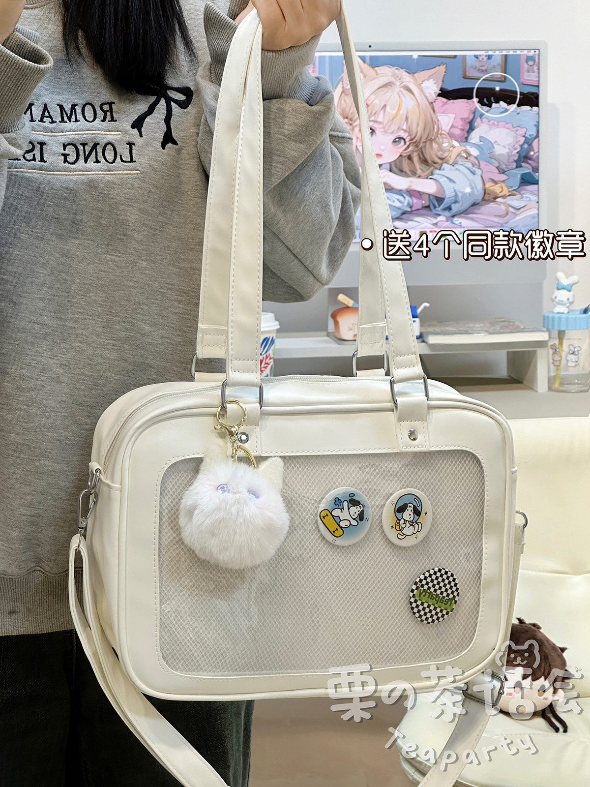 日系軟妹看展吧唧痛包穀子展示袋 學院ins二次元PU手提斜後後背包包女