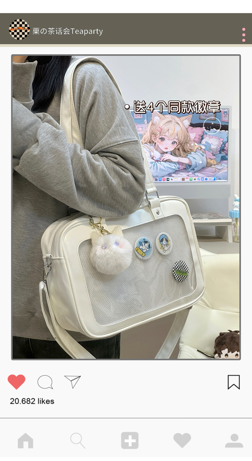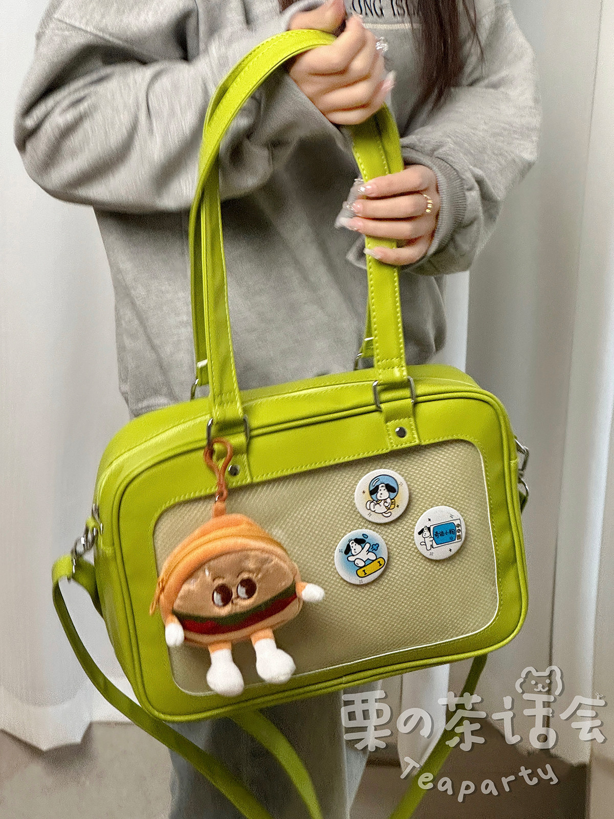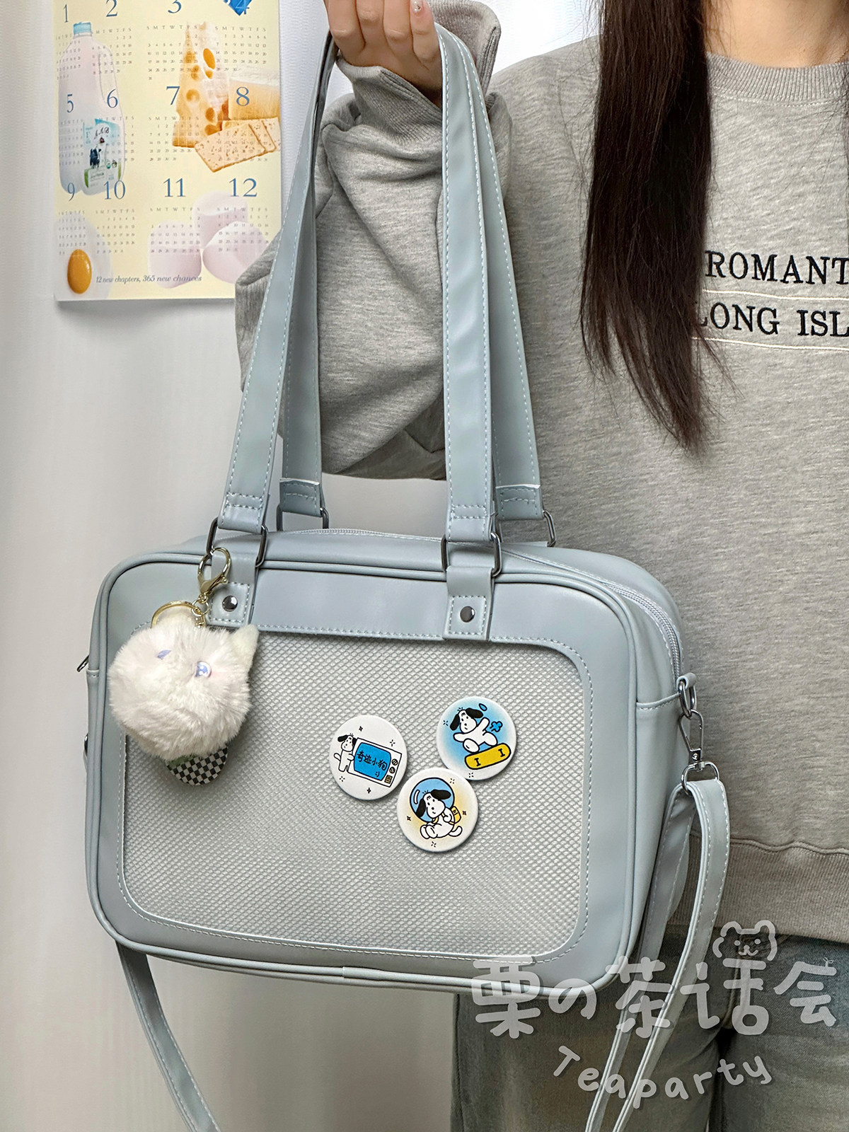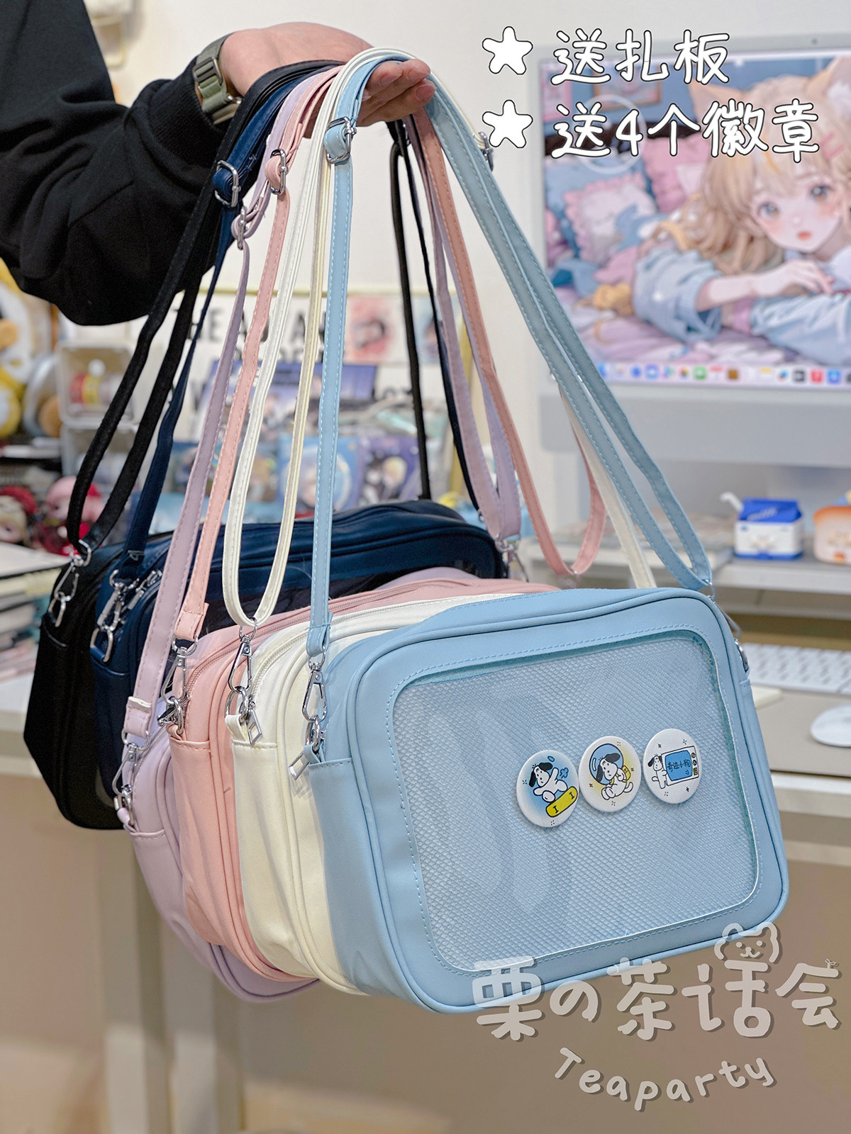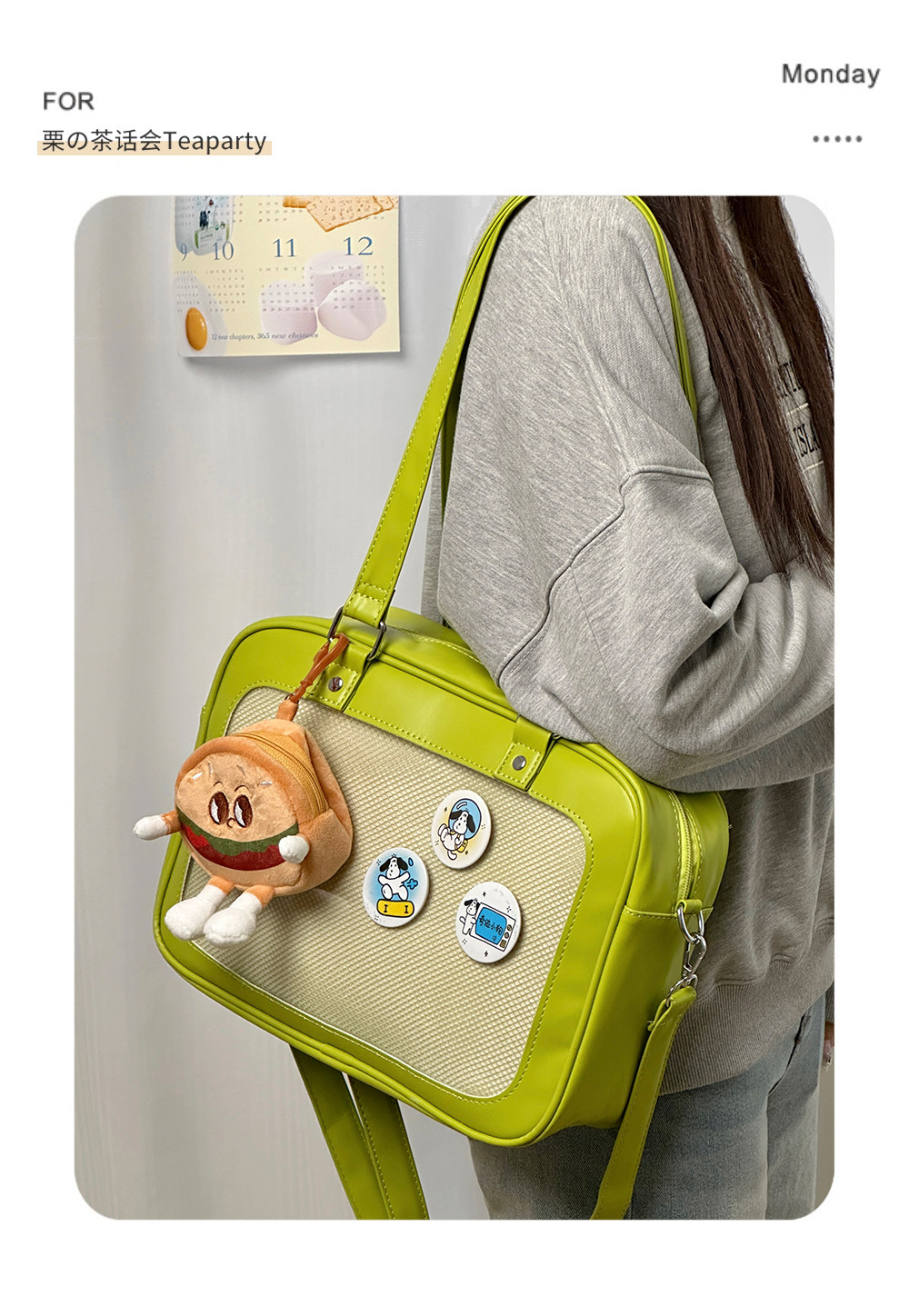 日系軟妹看展吧唧痛包穀子展示袋 學院ins二次元PU手提斜後後背包包女