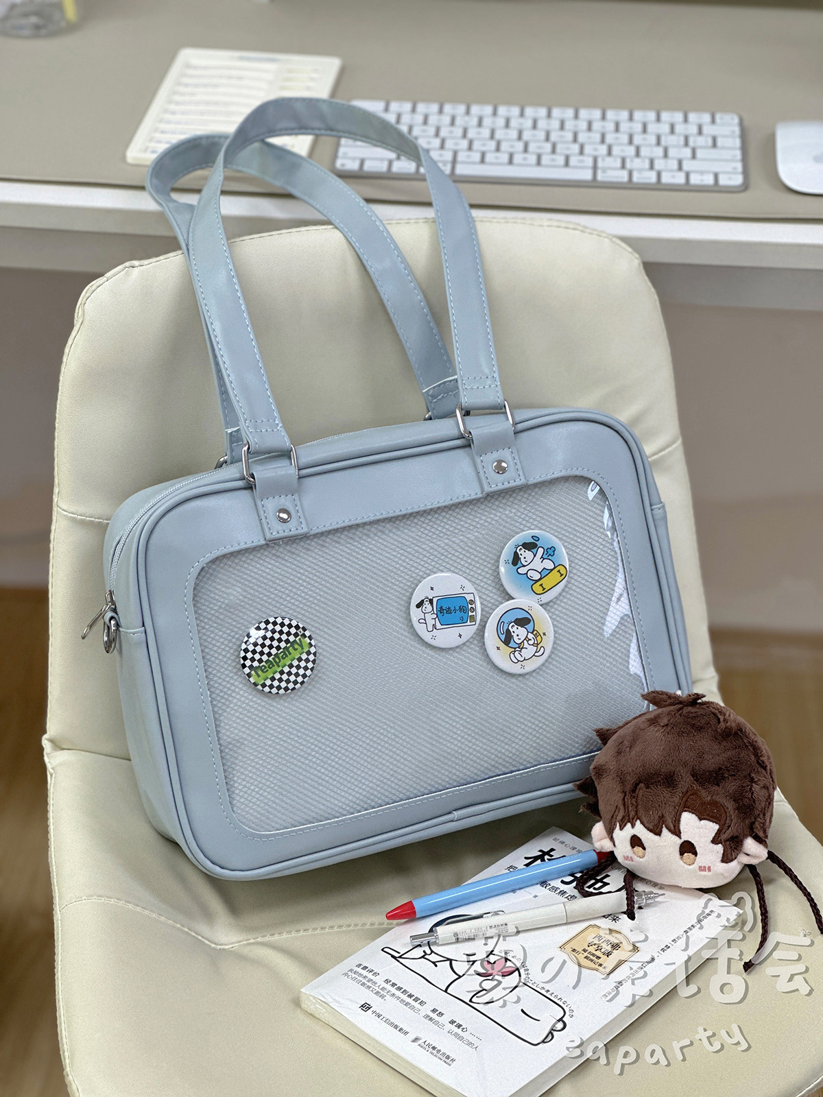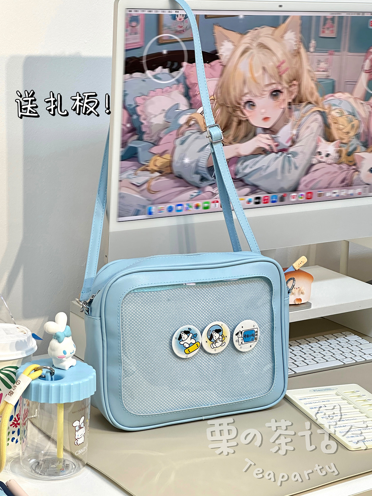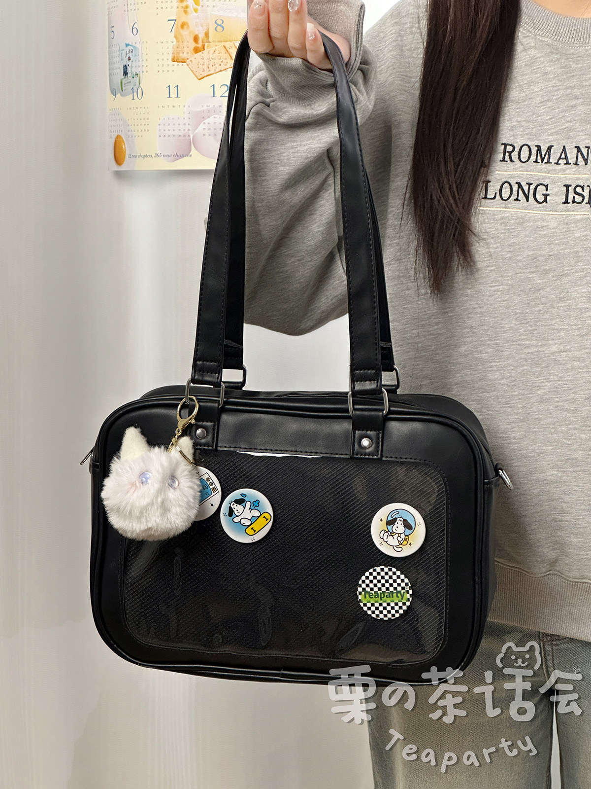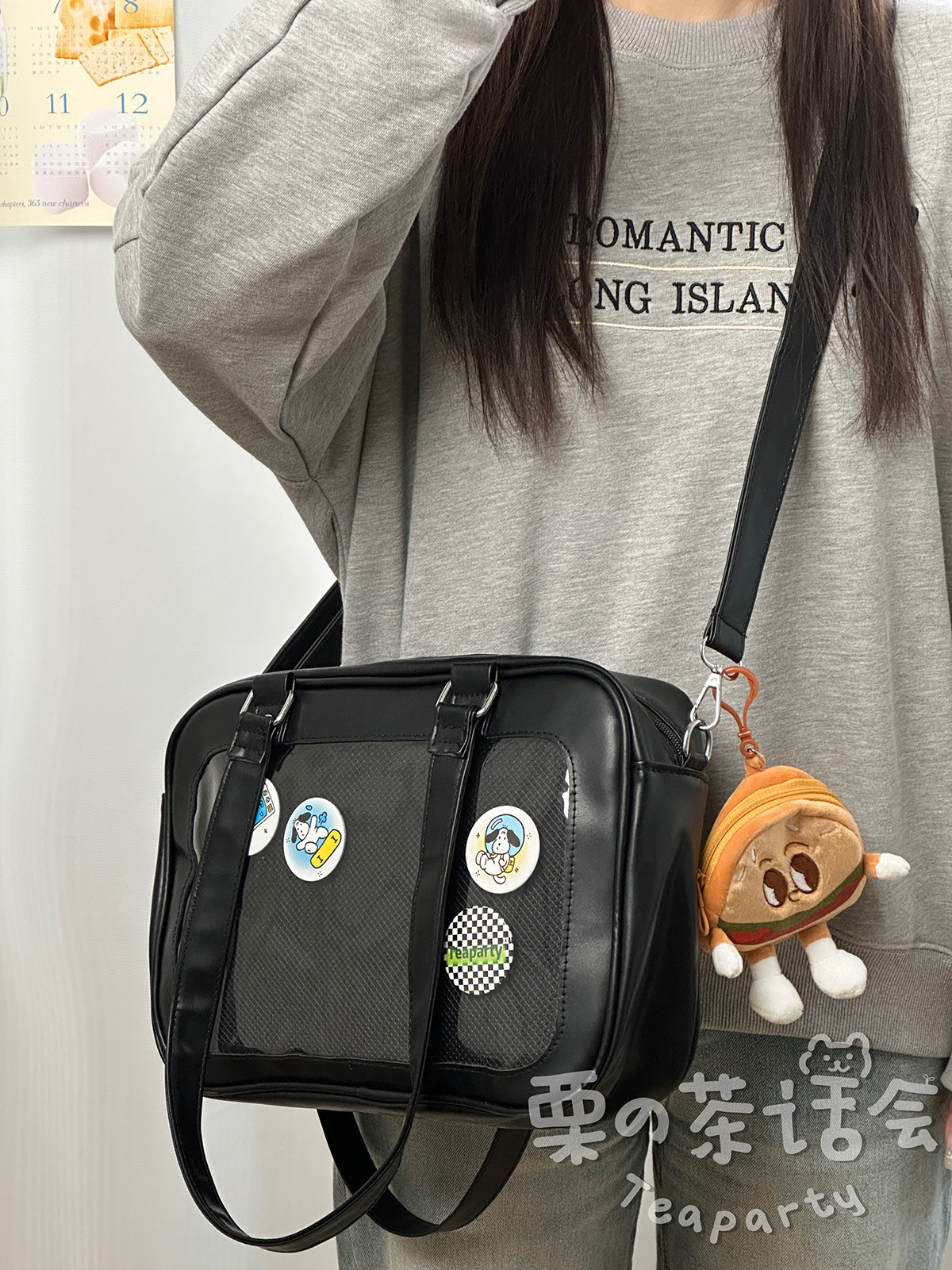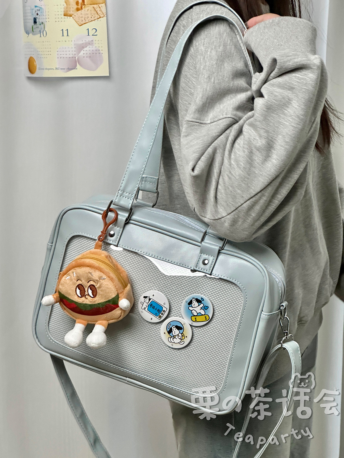 日系軟妹看展吧唧痛包穀子展示袋 學院ins二次元PU手提斜後後背包包女