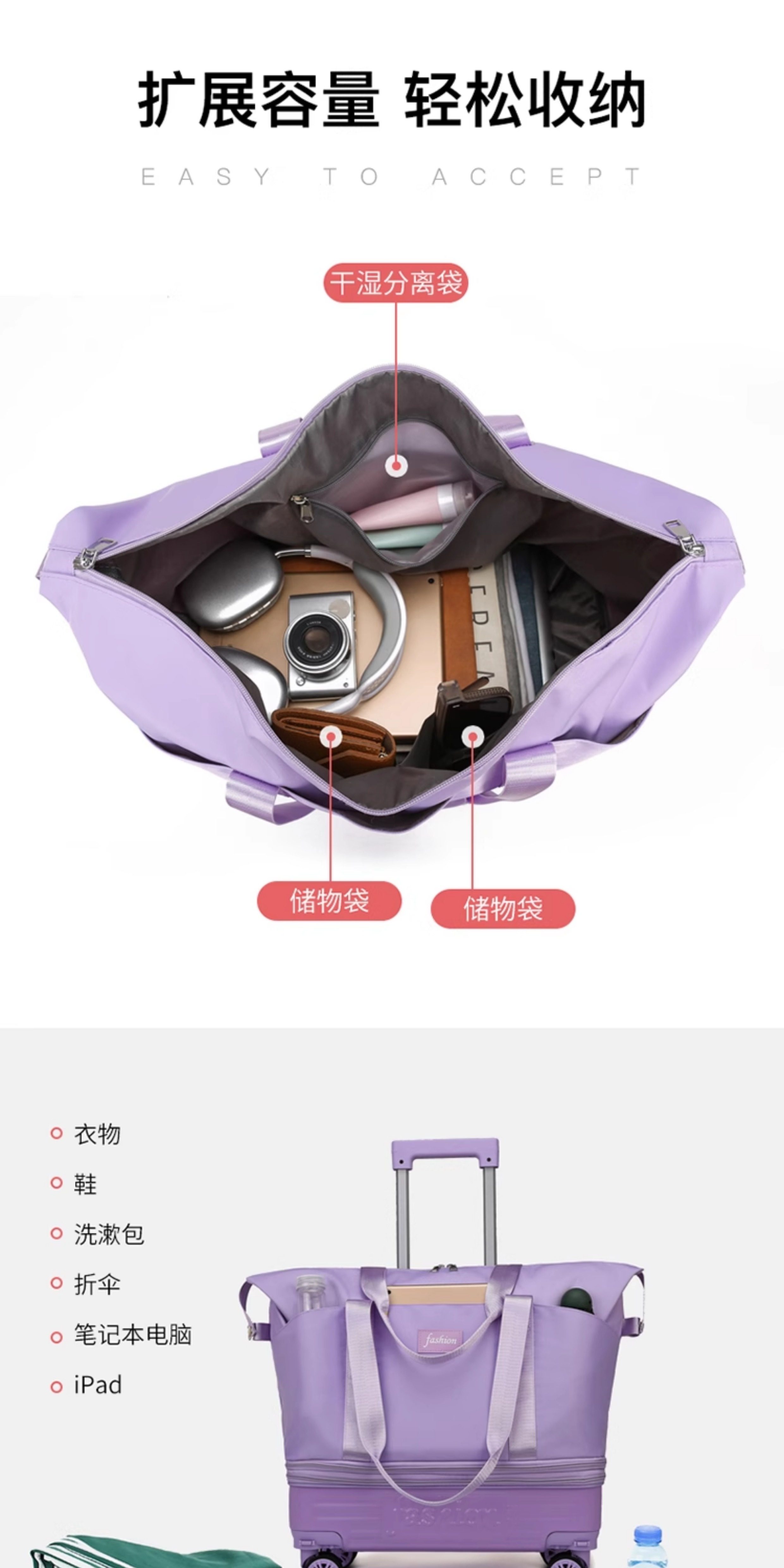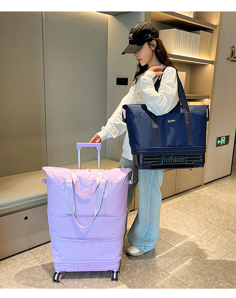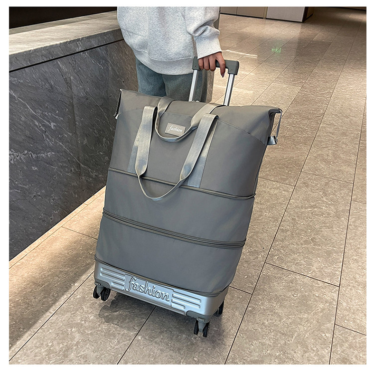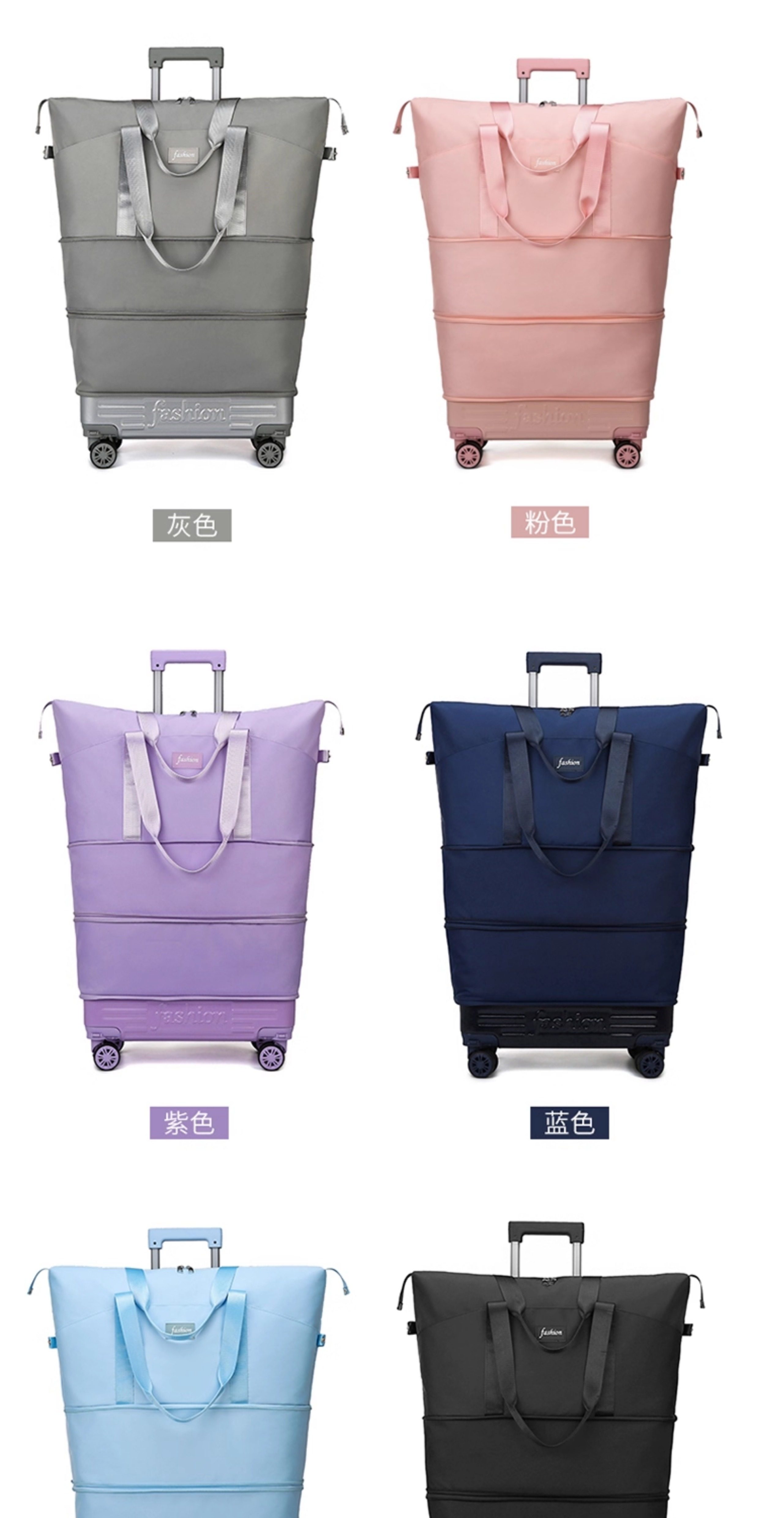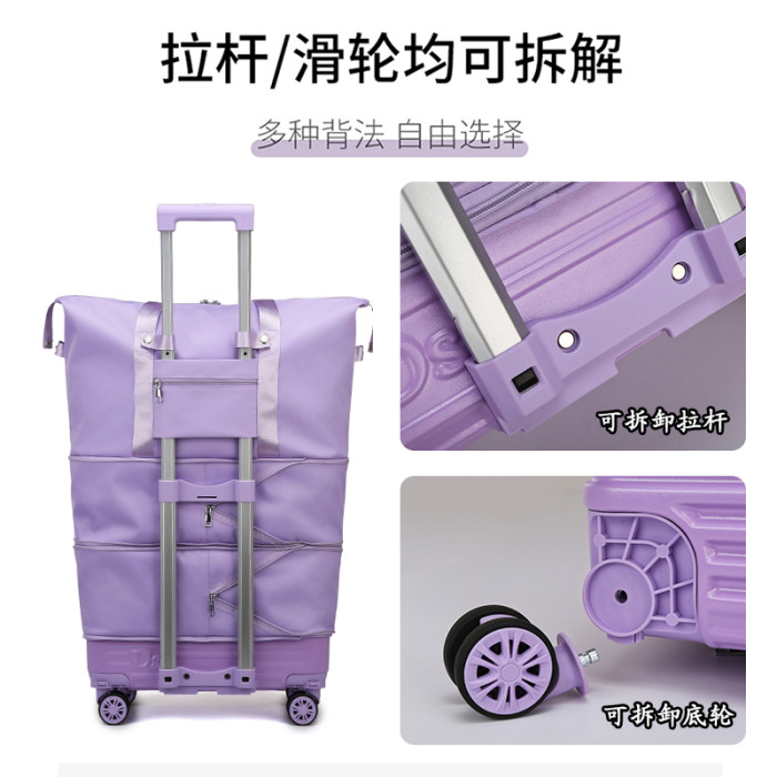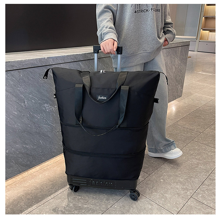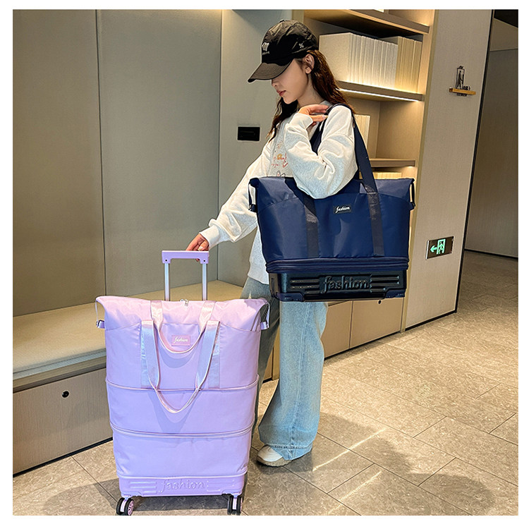 帶滑輪萬向輪旅行包輕便手提大容量可托運折曡拉桿行李包收納袋男