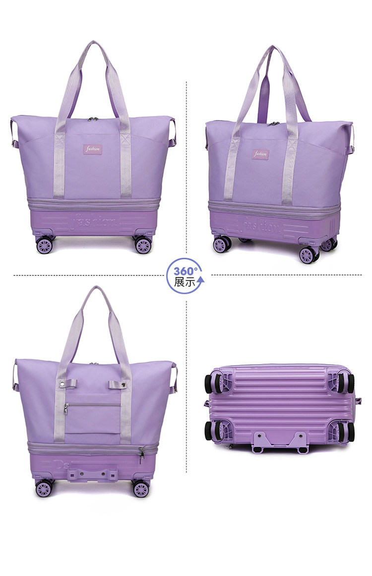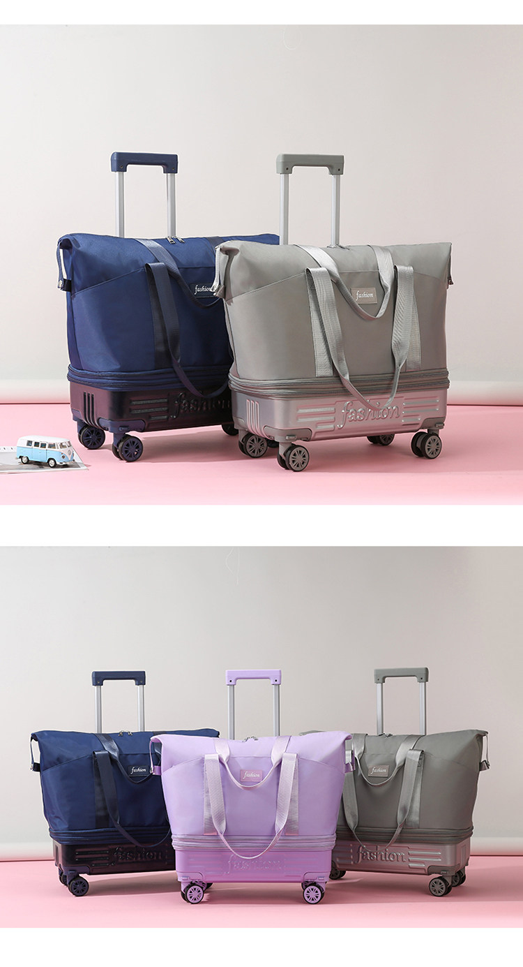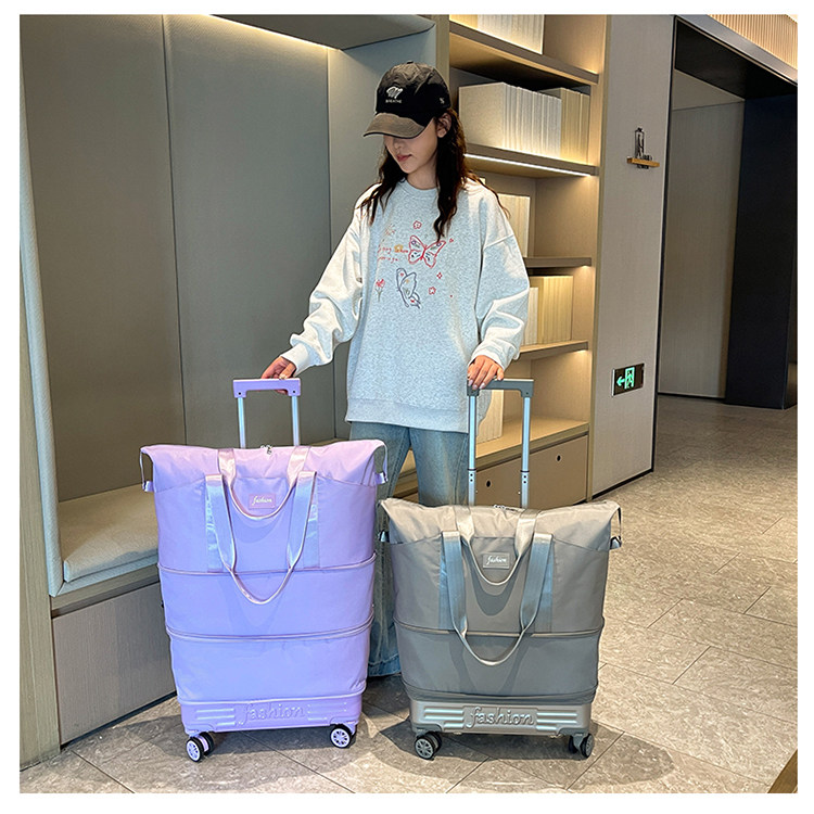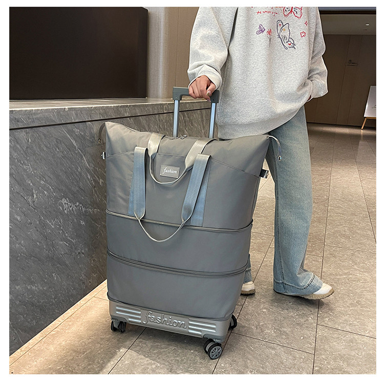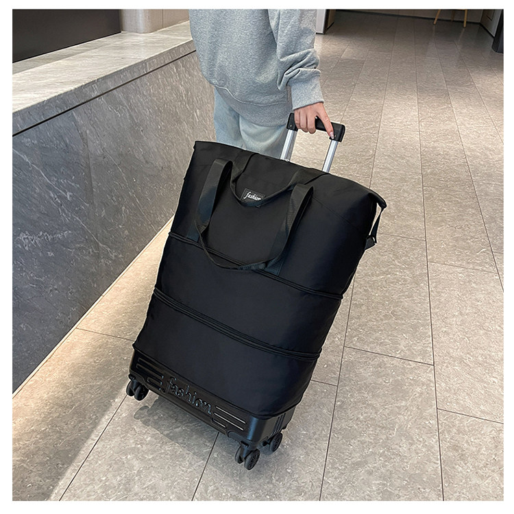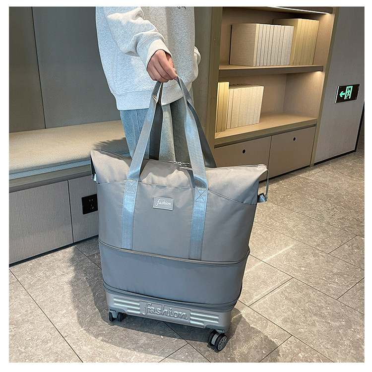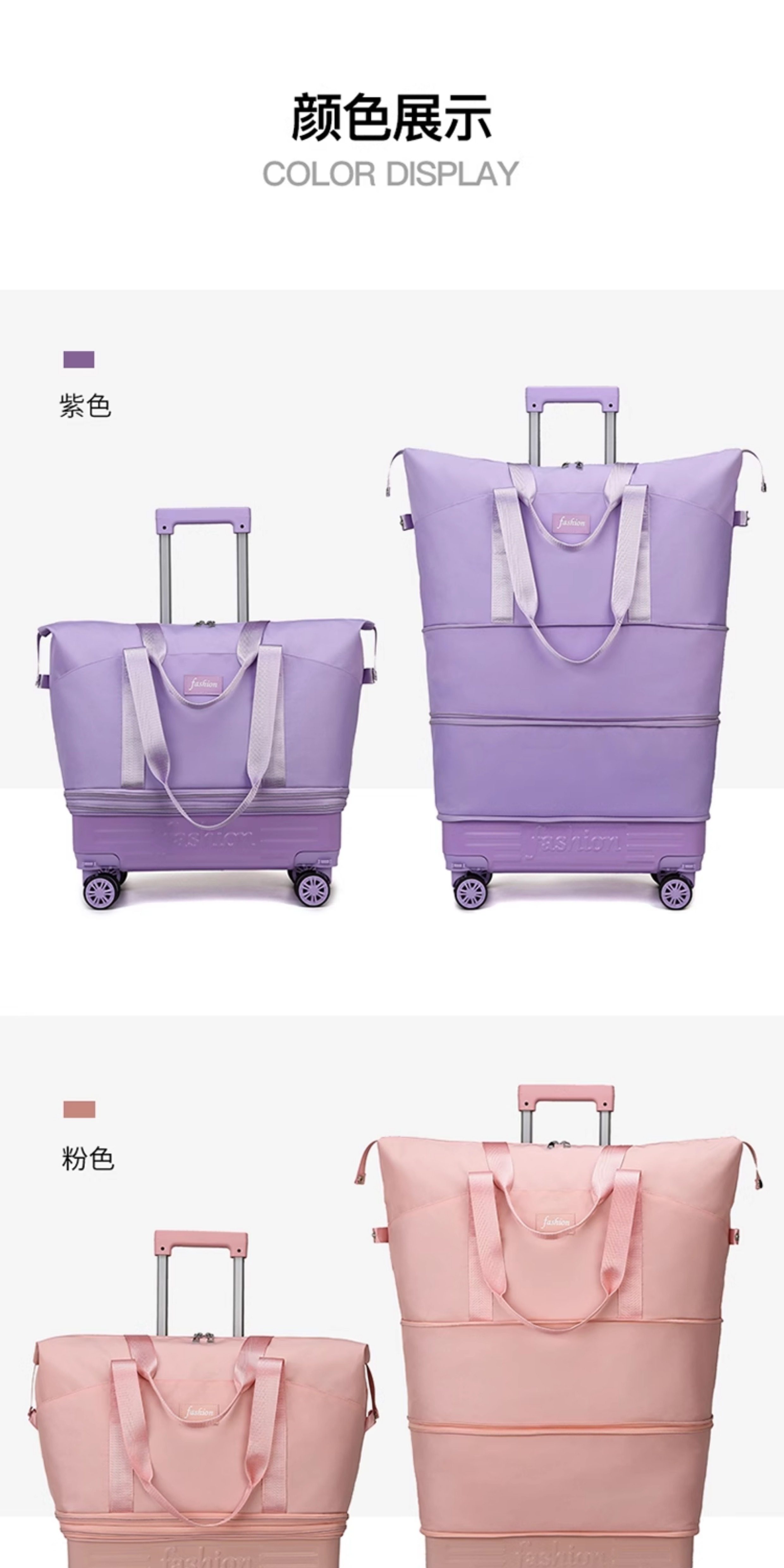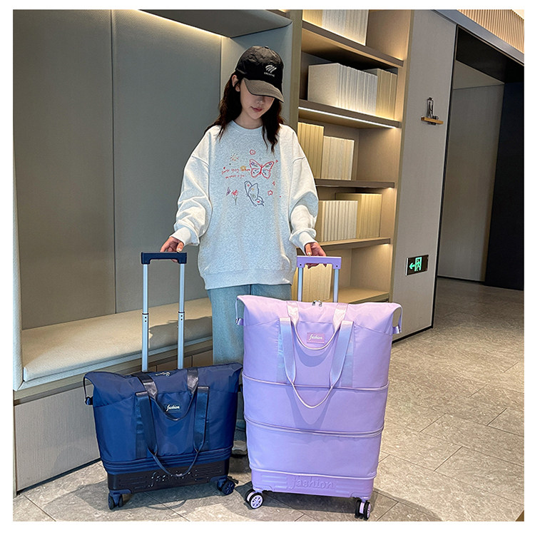 帶滑輪萬向輪旅行包輕便手提大容量可托運折曡拉桿行李包收納袋男