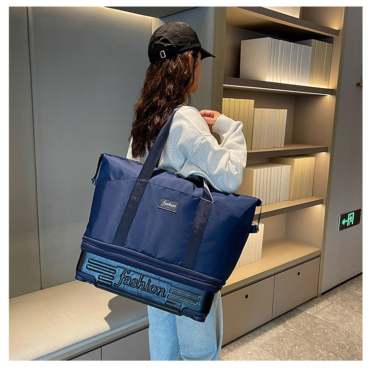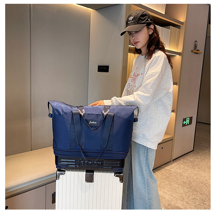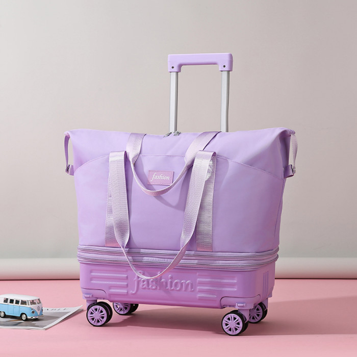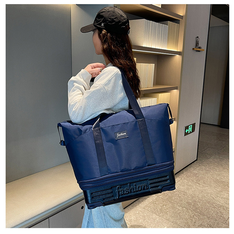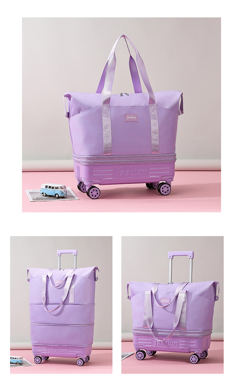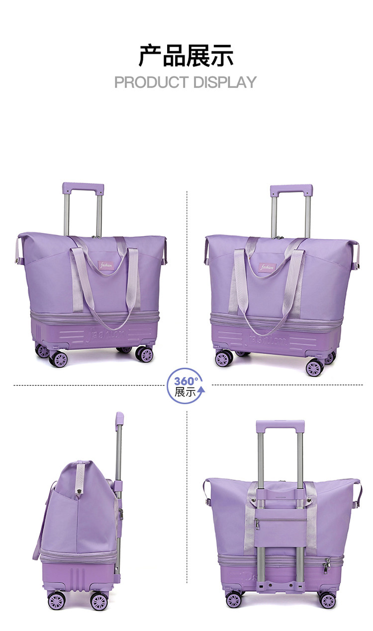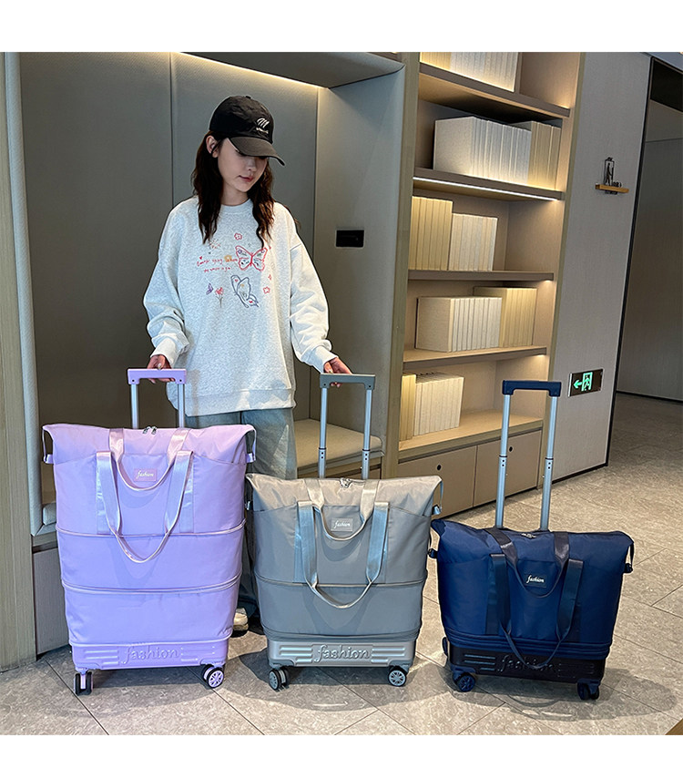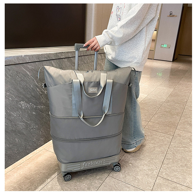 帶滑輪萬向輪旅行包輕便手提大容量可托運折曡拉桿行李包收納袋男