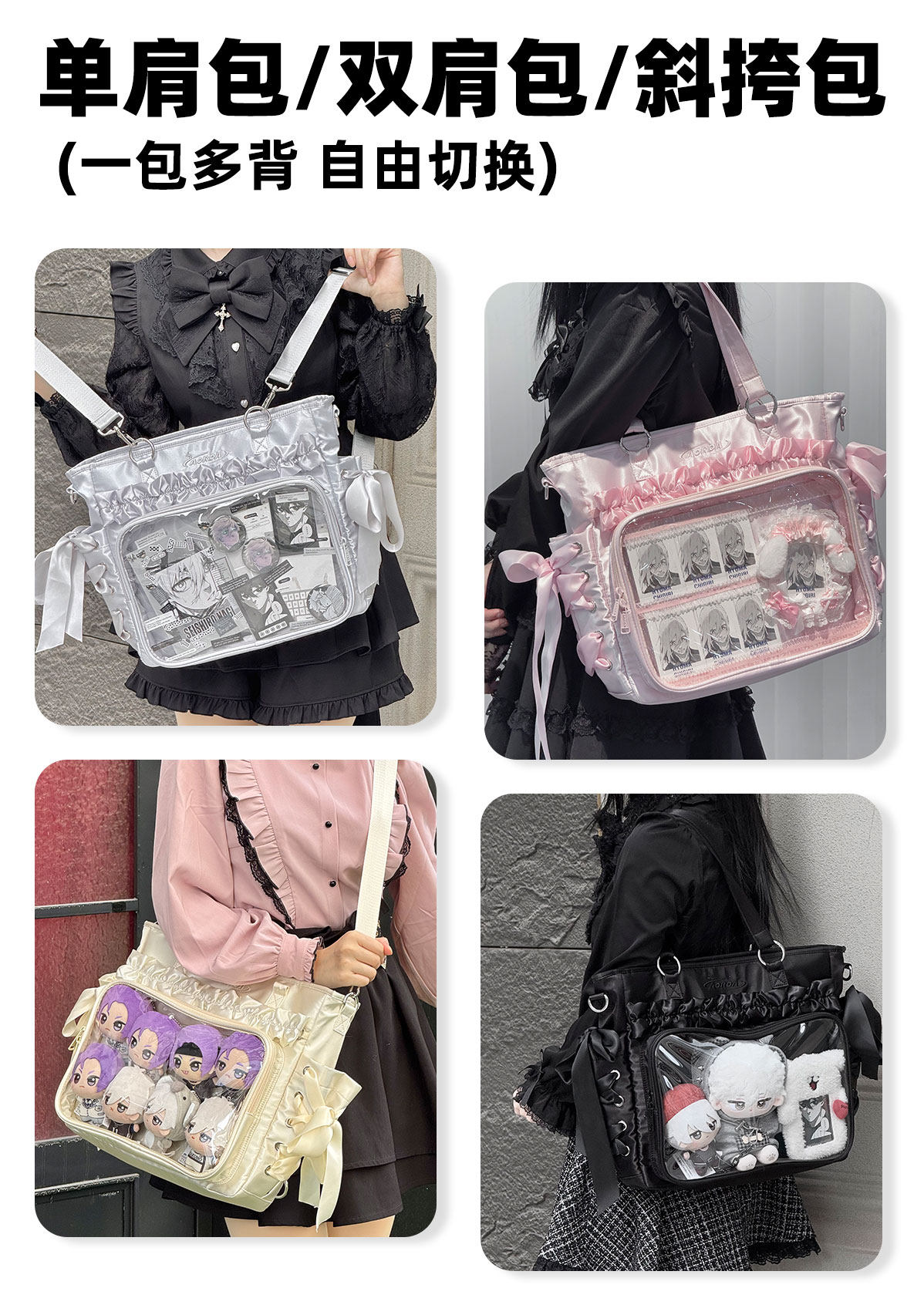 AORDA 大腸絲帶痛包雙肩大容量單肩斜背吧唧包二次元日常20cm娃包