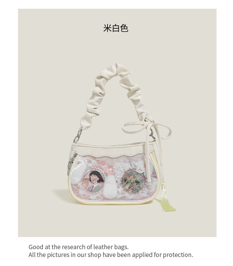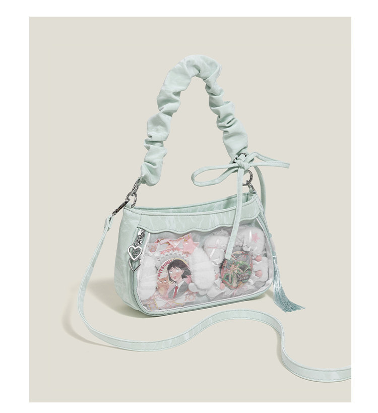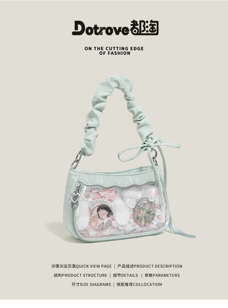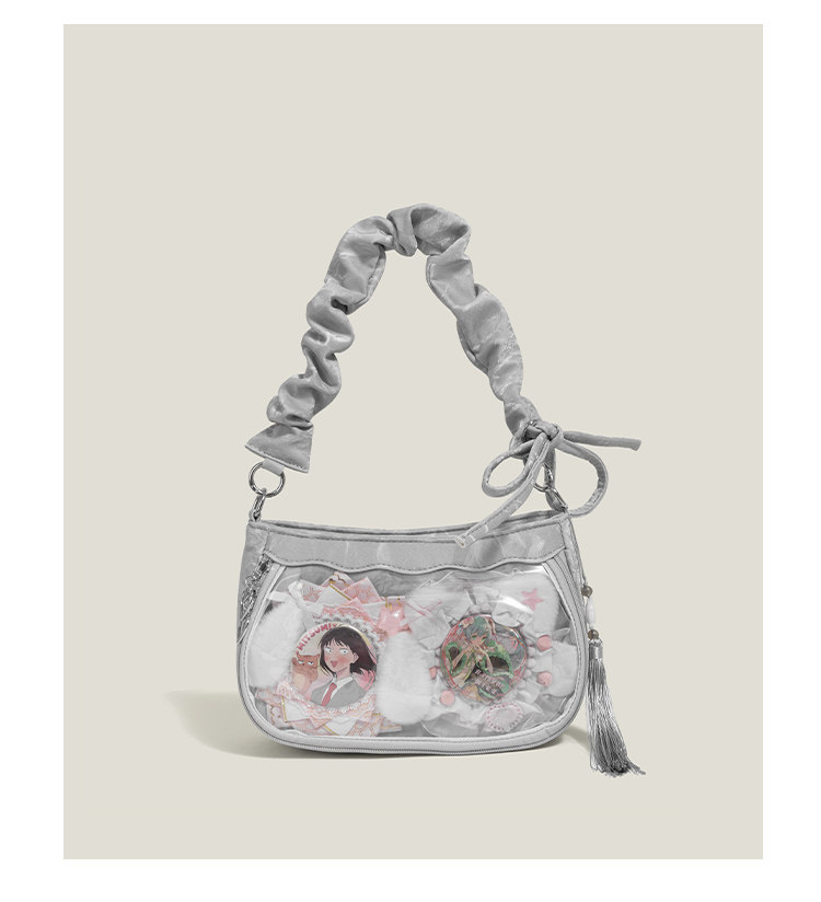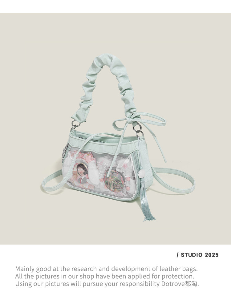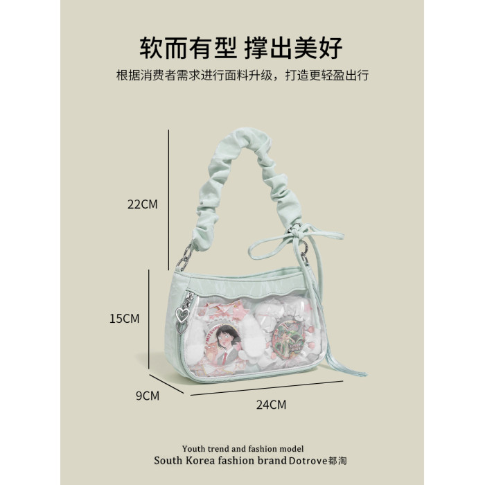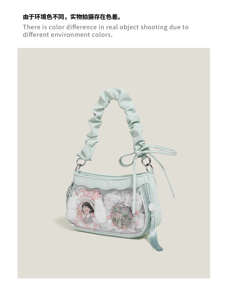 都淘原創設計國風流蘇痛包女新中式小食量透明吧唧通勤單肩斜後後背包