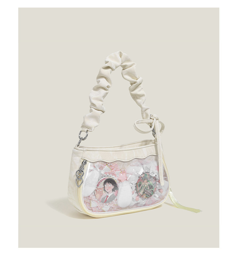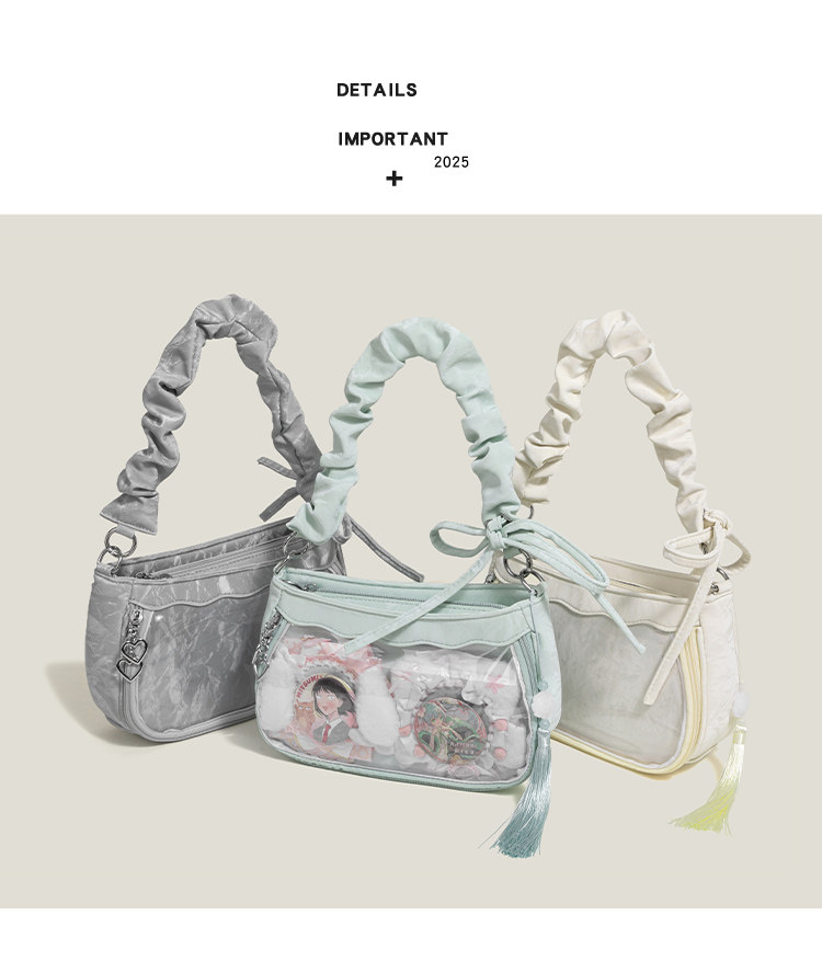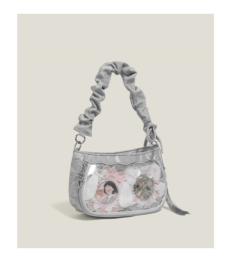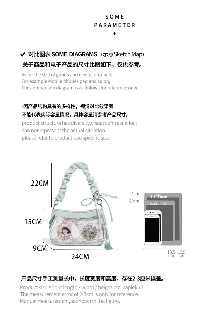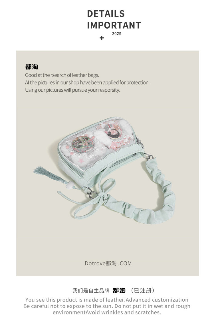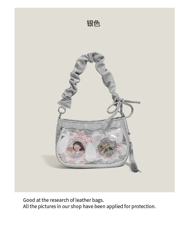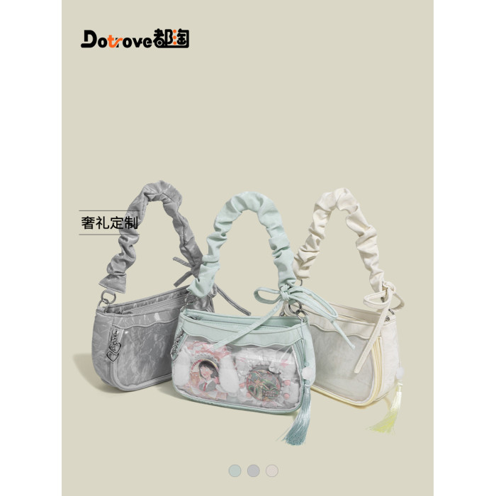 都淘原創設計國風流蘇痛包女新中式小食量透明吧唧通勤單肩斜後後背包