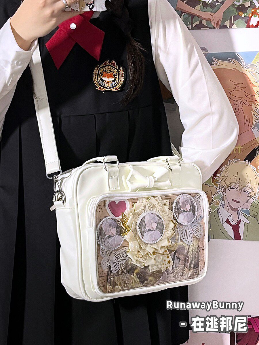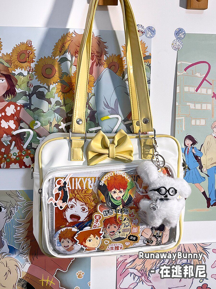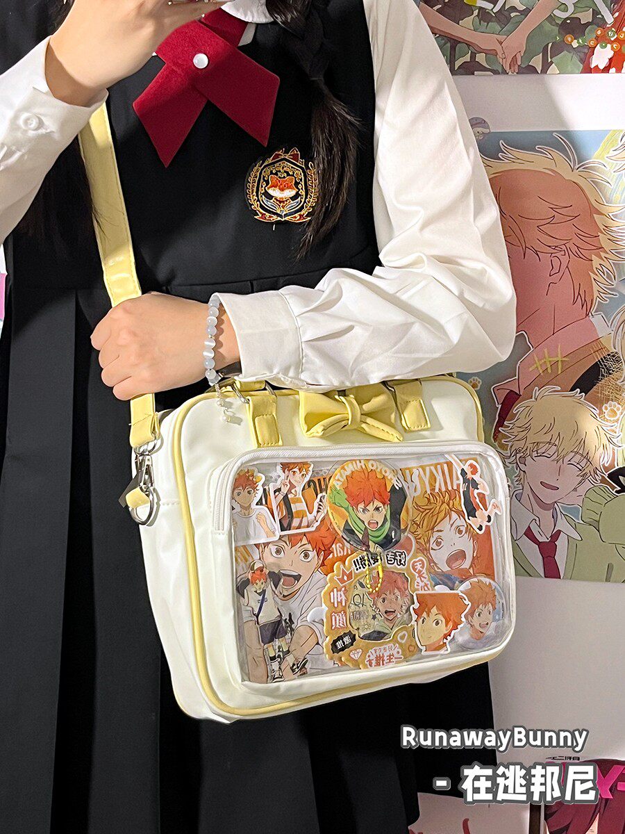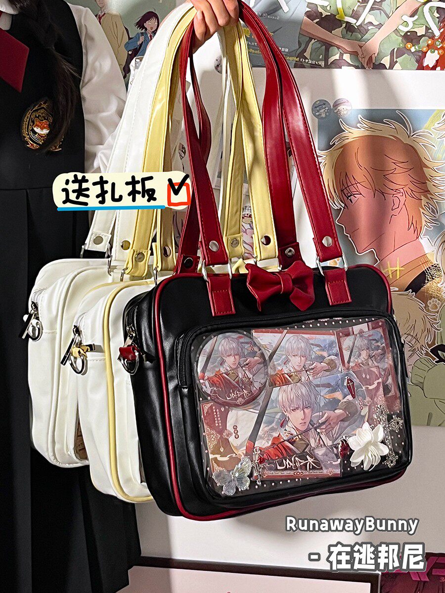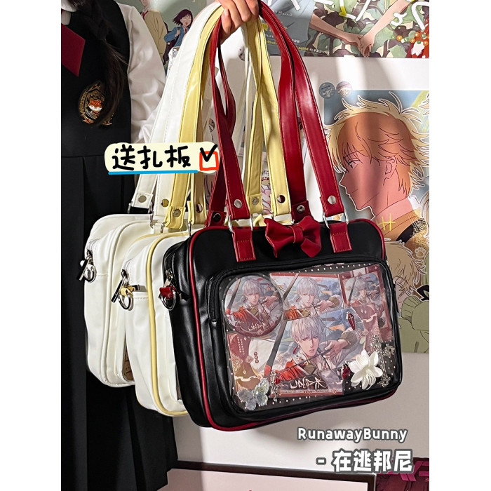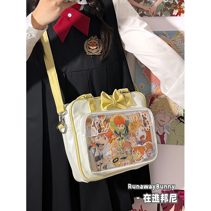 校園百搭純色簡約小食量吧唧紥穀痛包蝴蝶結JK二次元單肩斜後後背包女