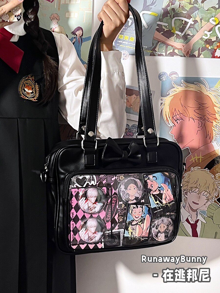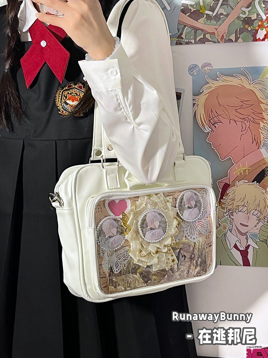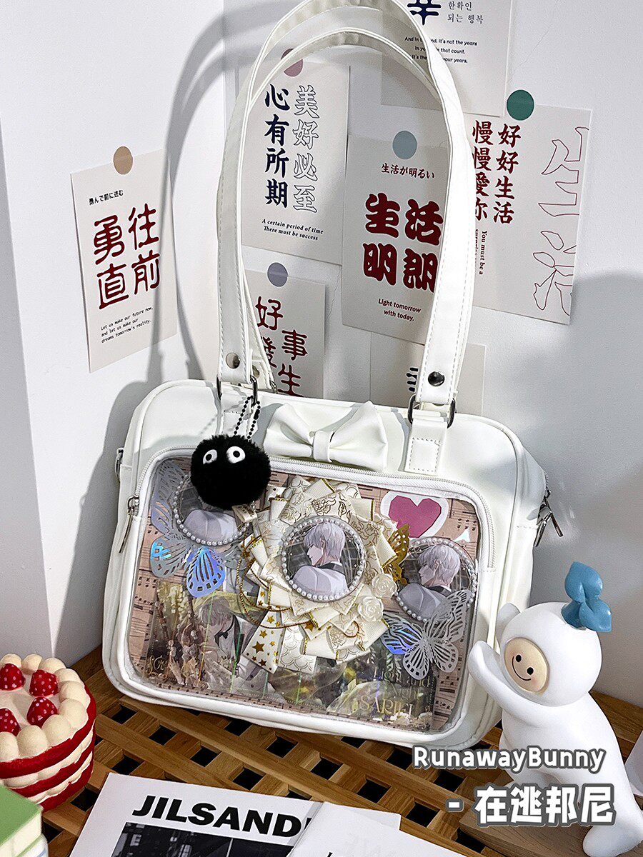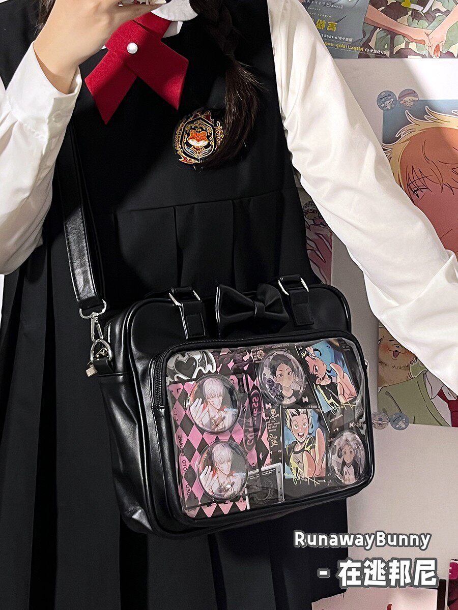 校園百搭純色簡約小食量吧唧紥穀痛包蝴蝶結JK二次元單肩斜後後背包女