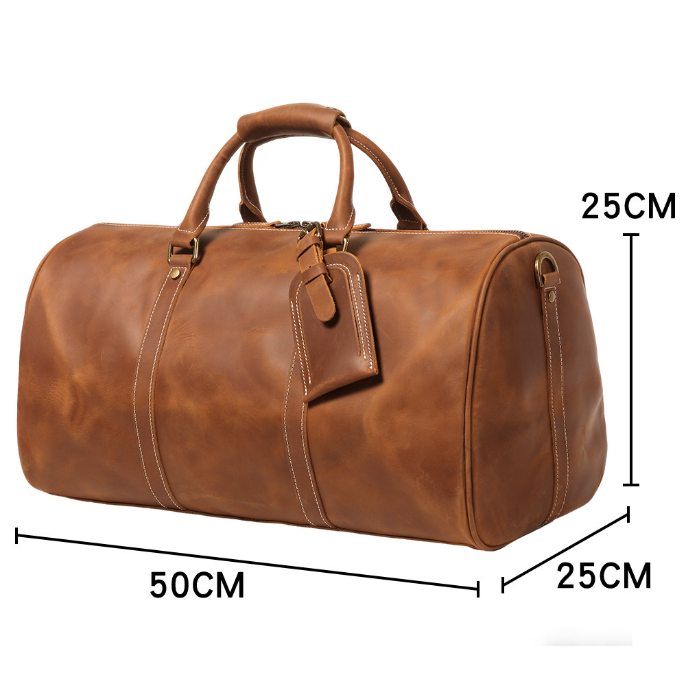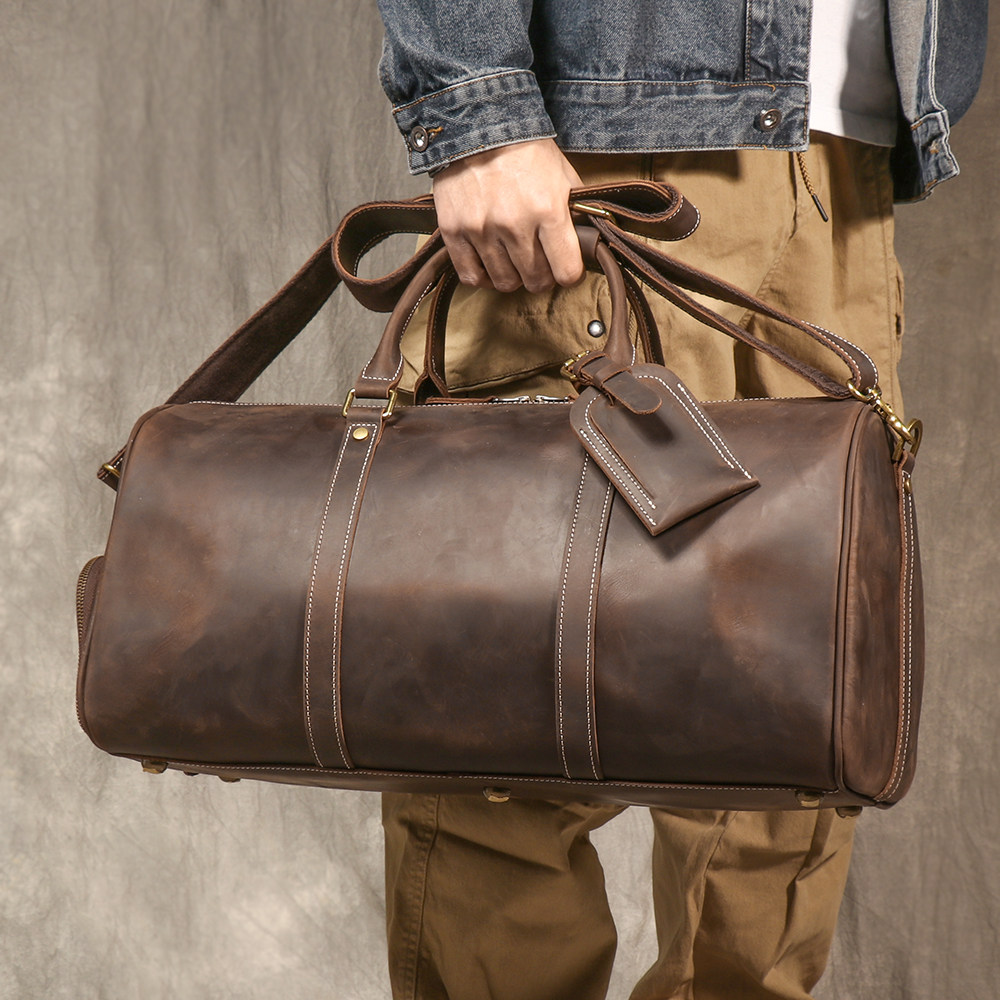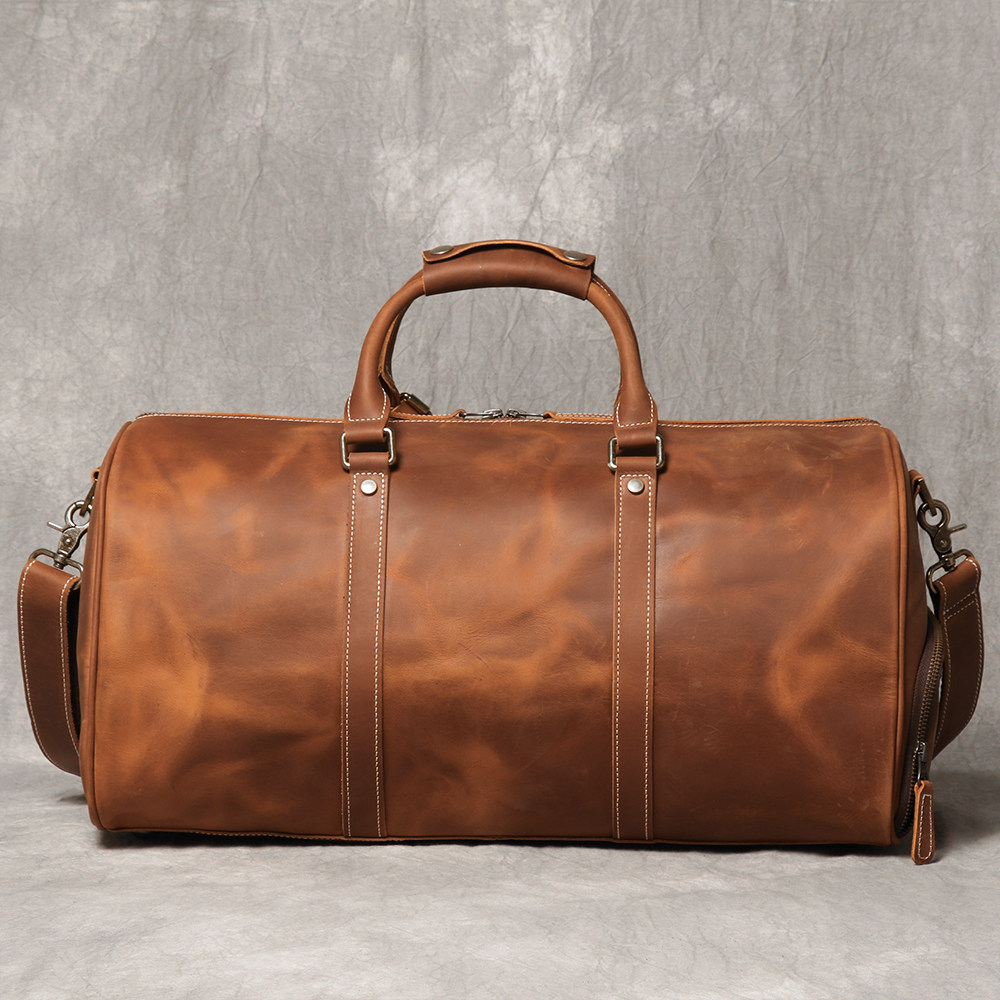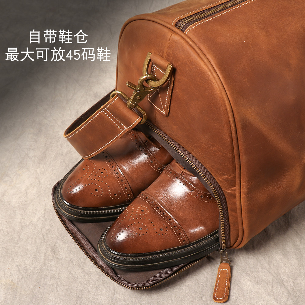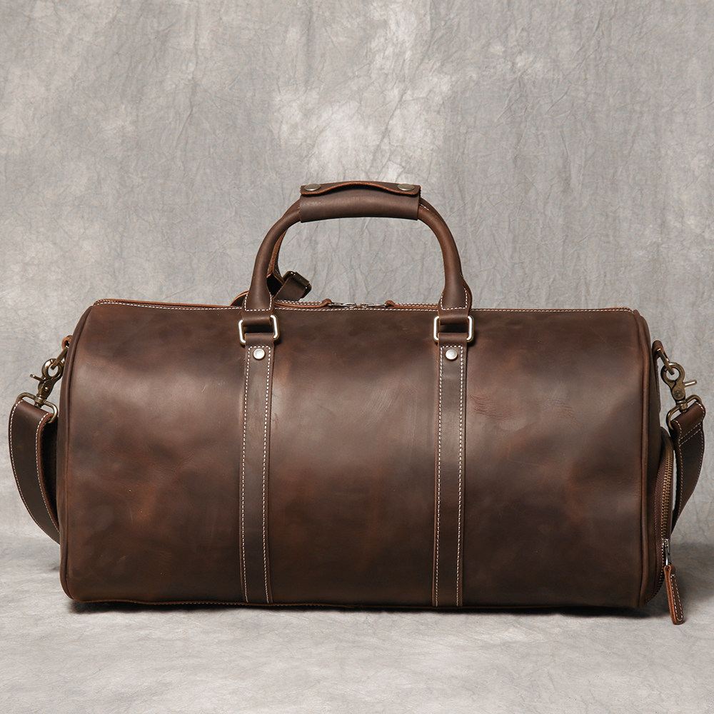 復古男士手提行李袋歐美瘋馬皮出差旅行包頭層牛皮大容量單肩斜背