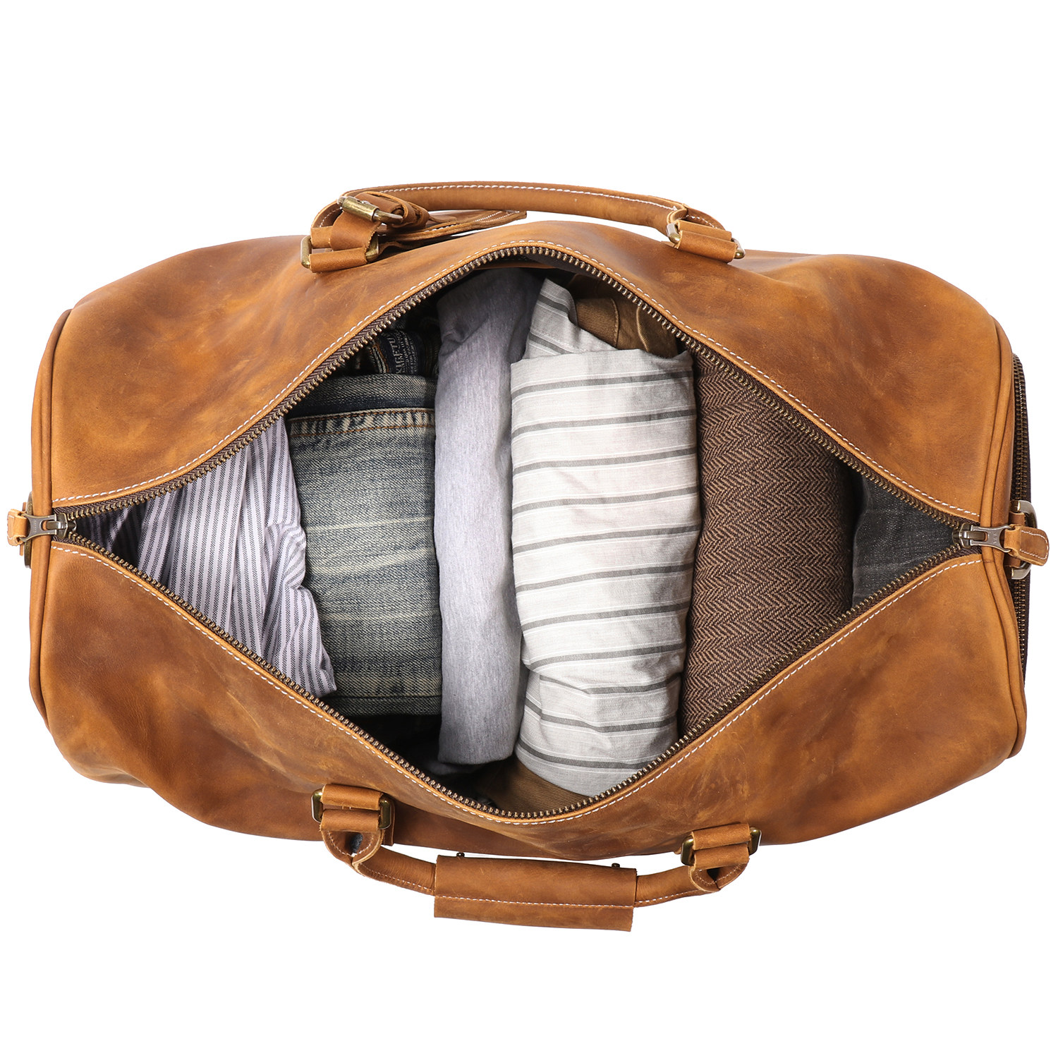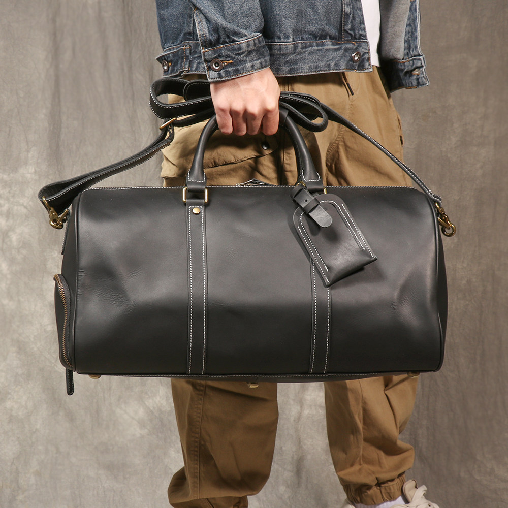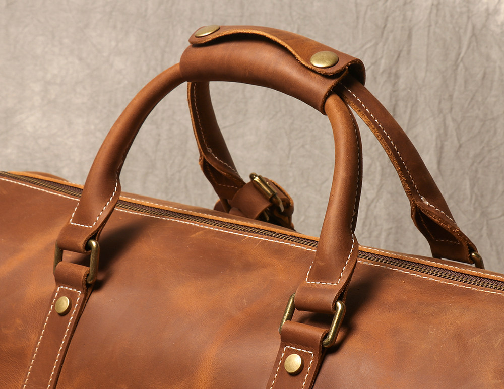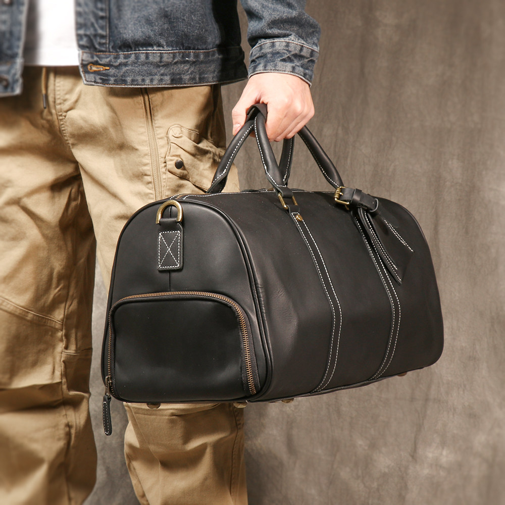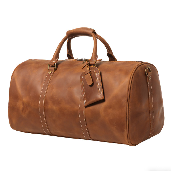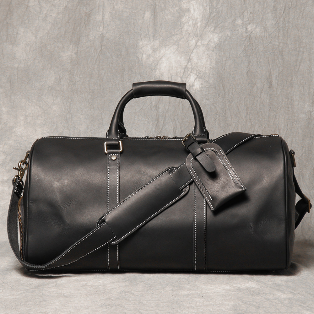 復古男士手提行李袋歐美瘋馬皮出差旅行包頭層牛皮大容量單肩斜背