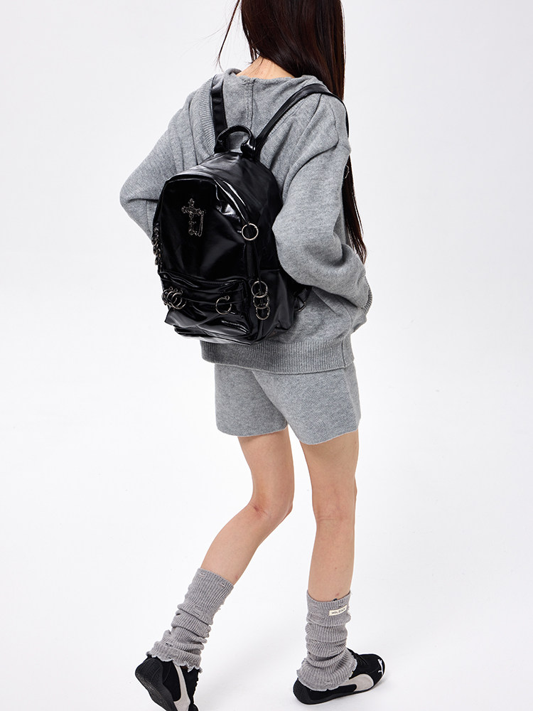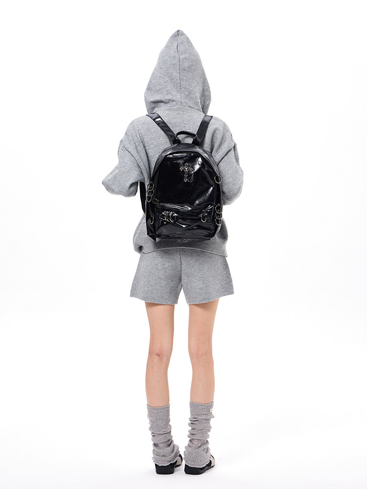 暗黑龐克穿刺鉚釘潮復古甜酷辣妹雙肩包女大學生書包輕便迷你後後背包