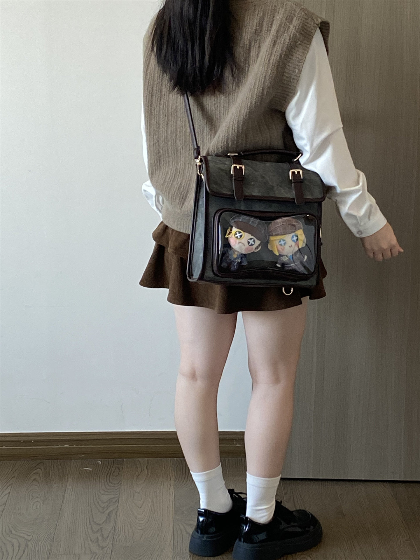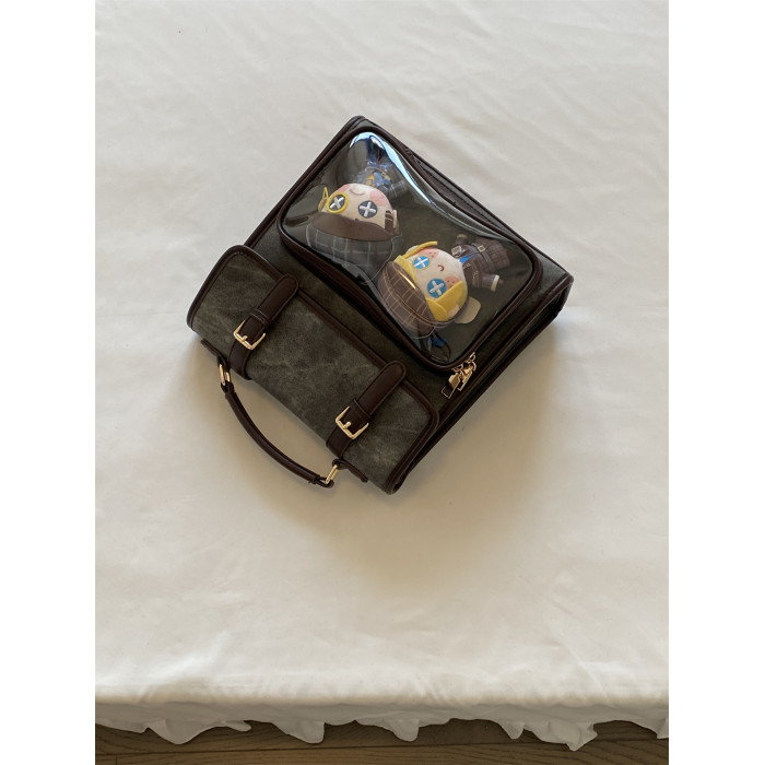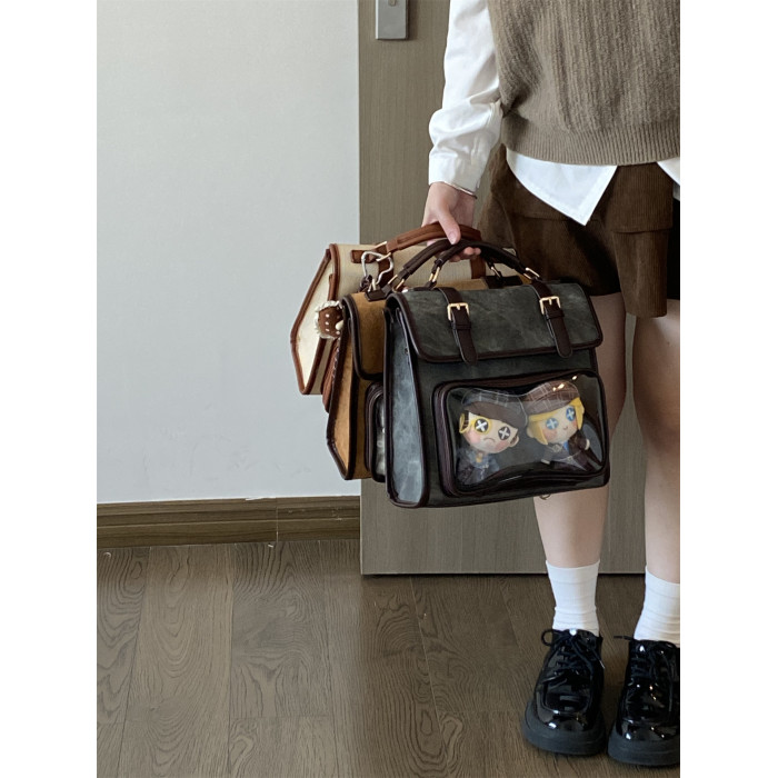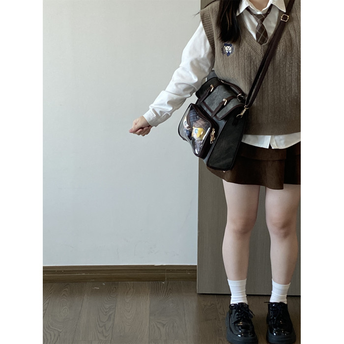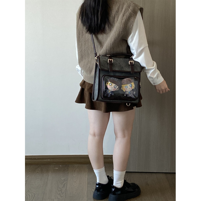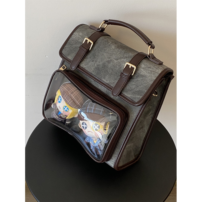 錢一波痛包|秋冬新款10cm娃包牛仔紋灰棕小食量學院風斜背雙肩包