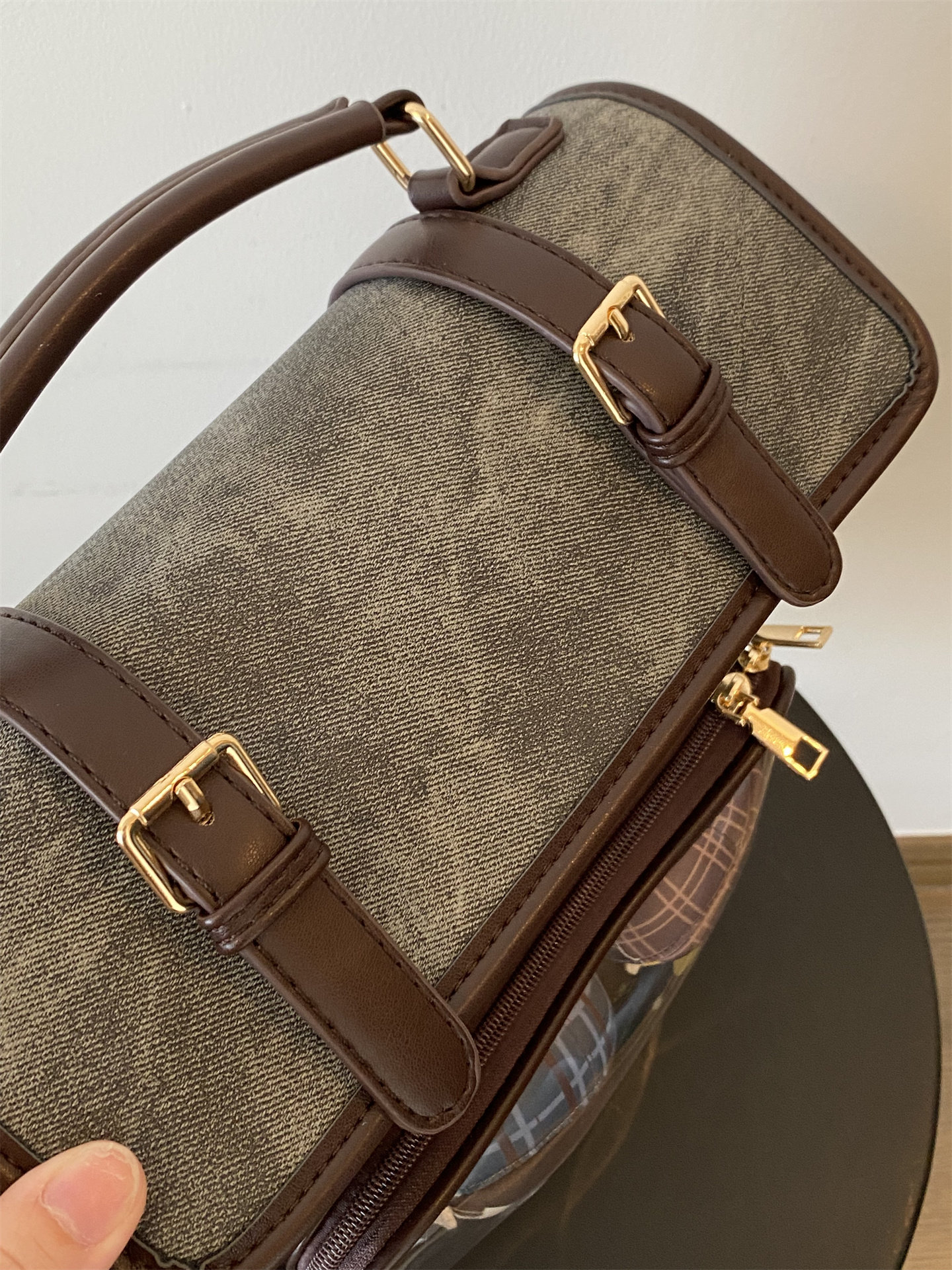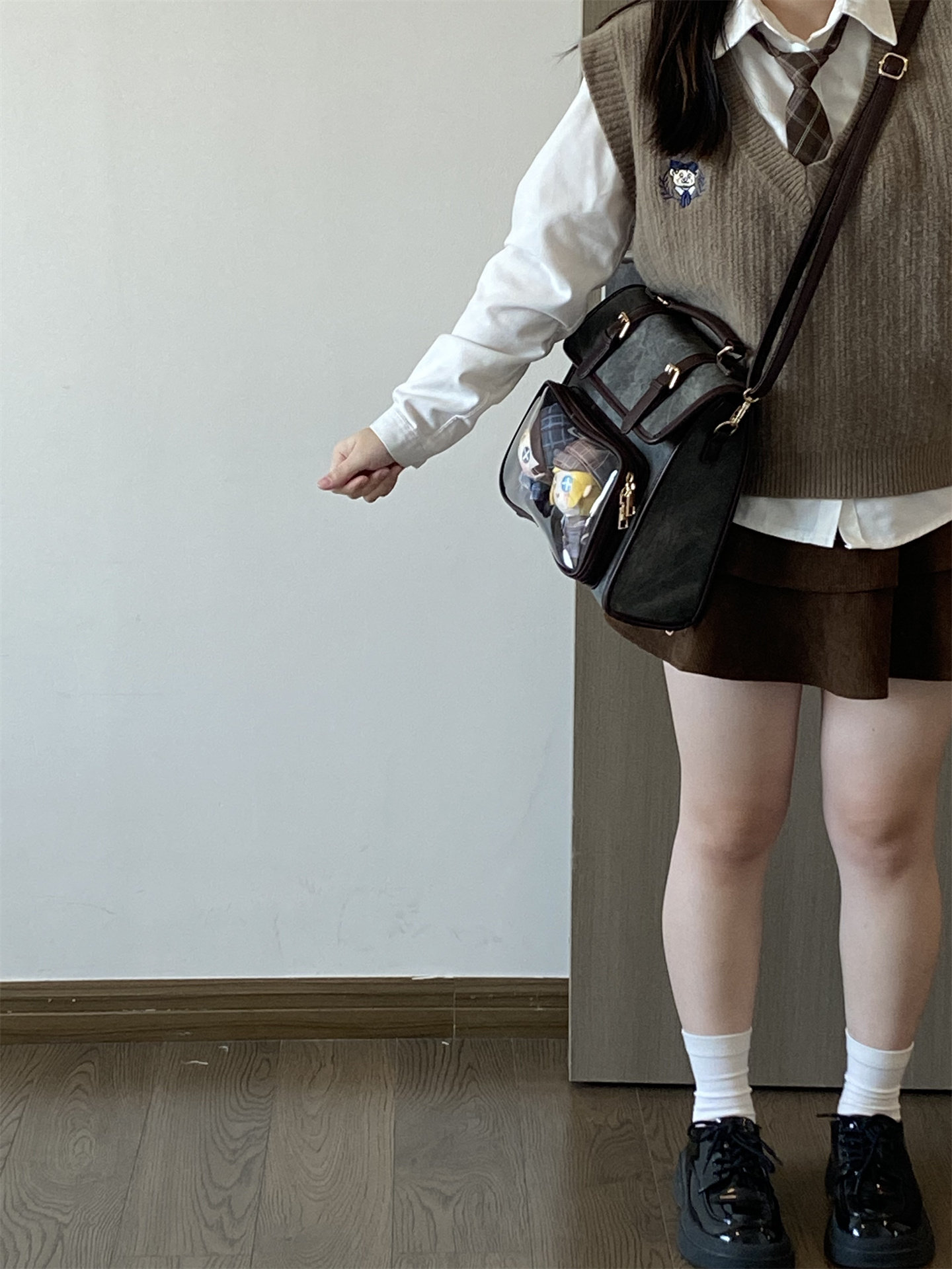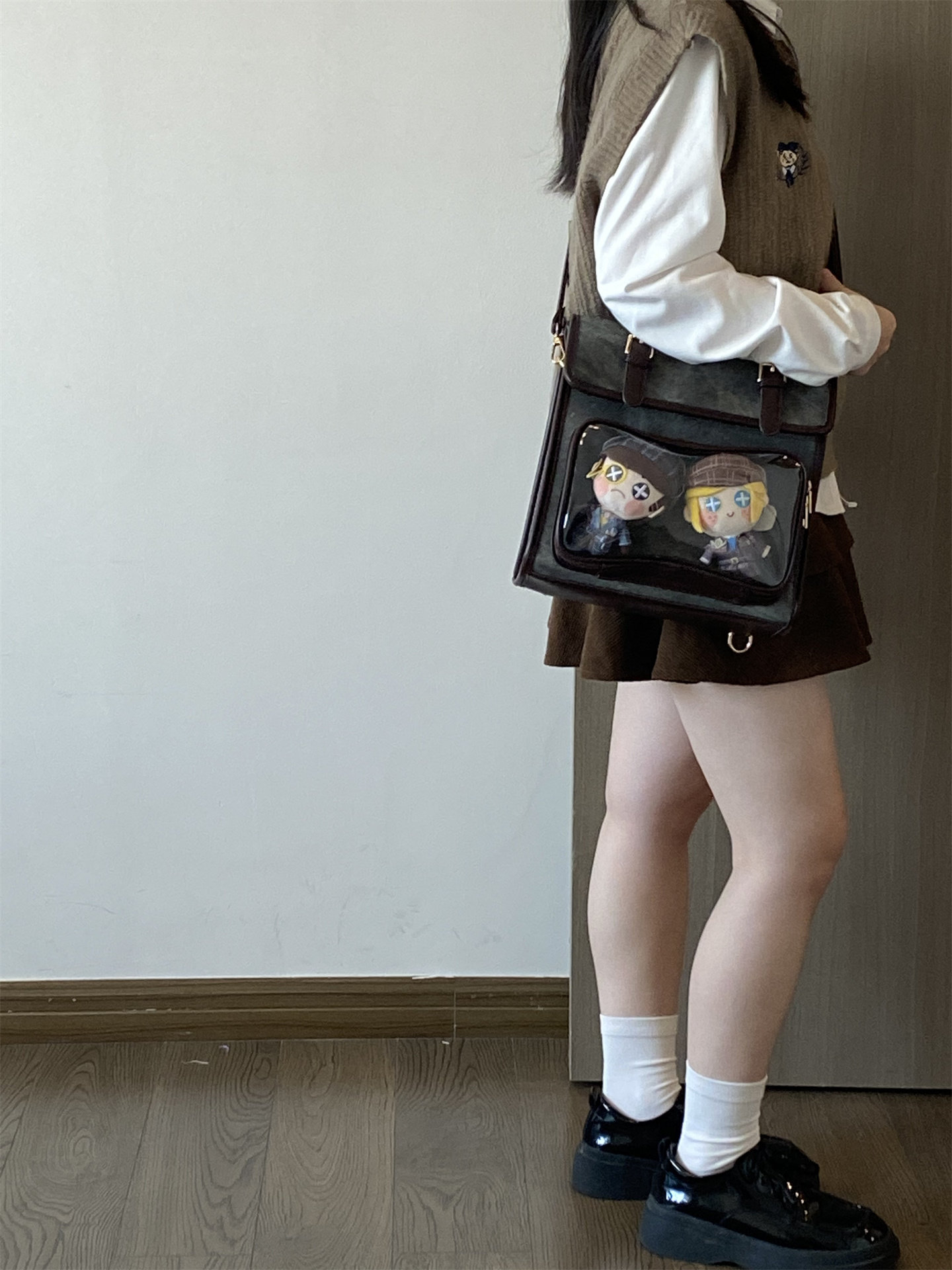 錢一波痛包|秋冬新款10cm娃包牛仔紋灰棕小食量學院風斜背雙肩包