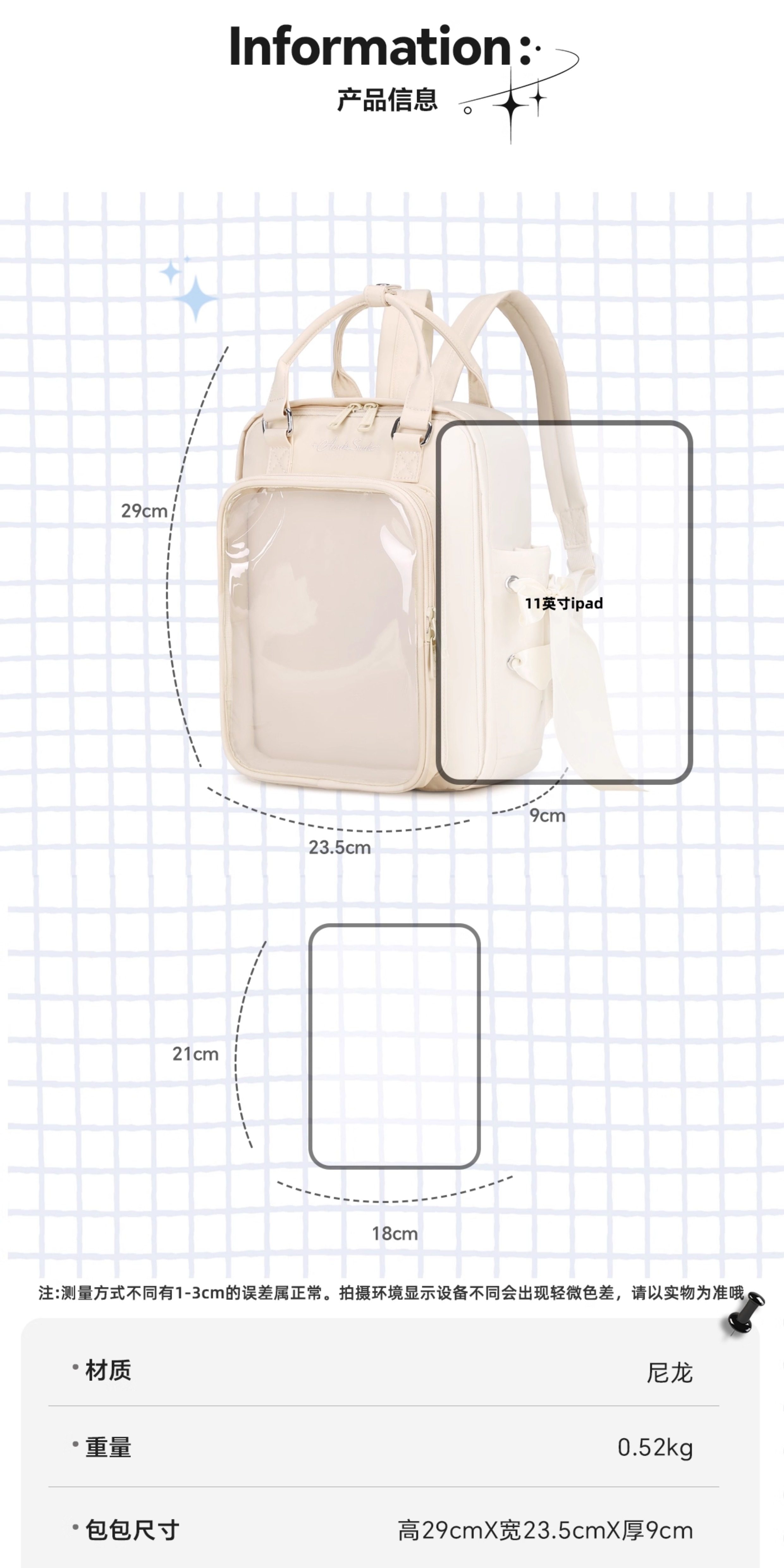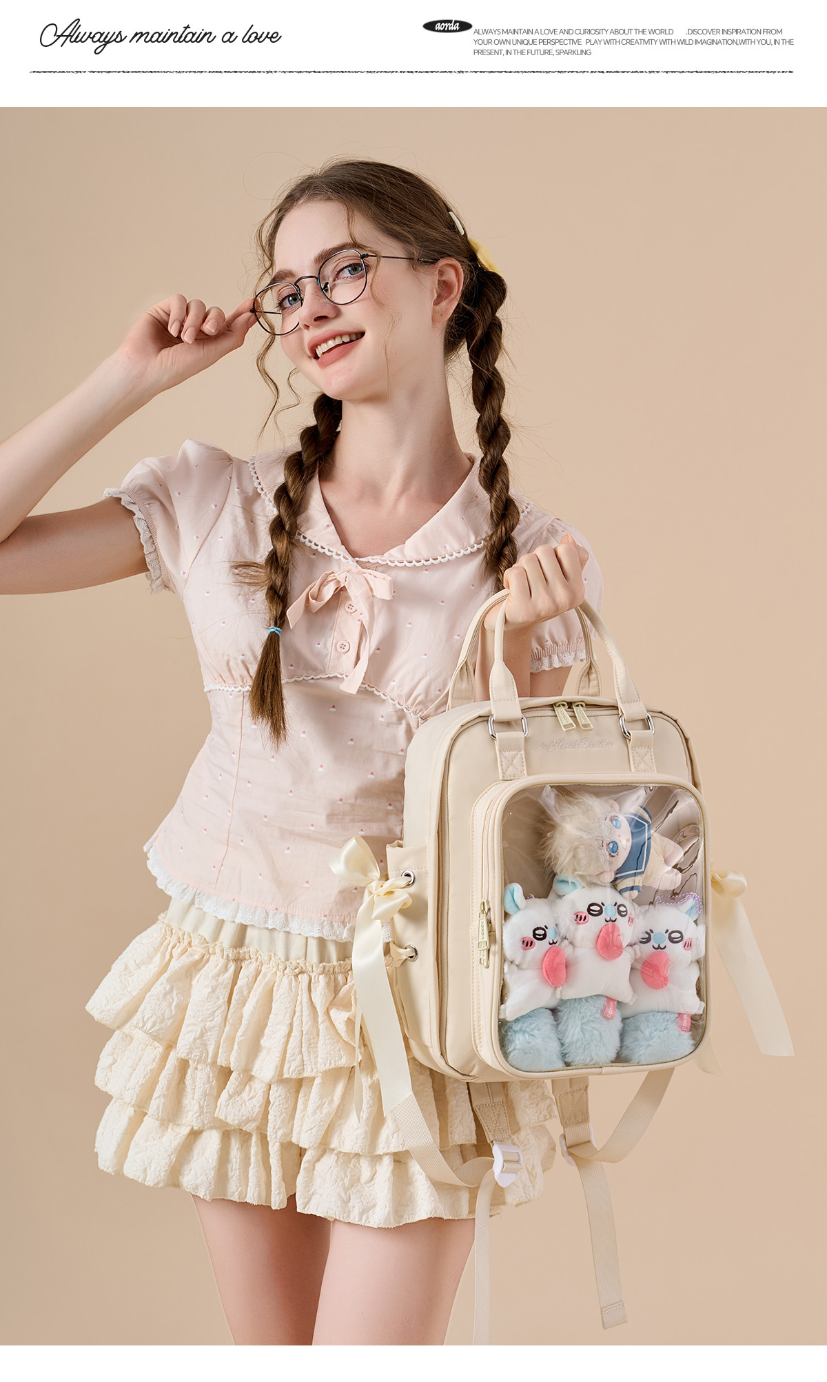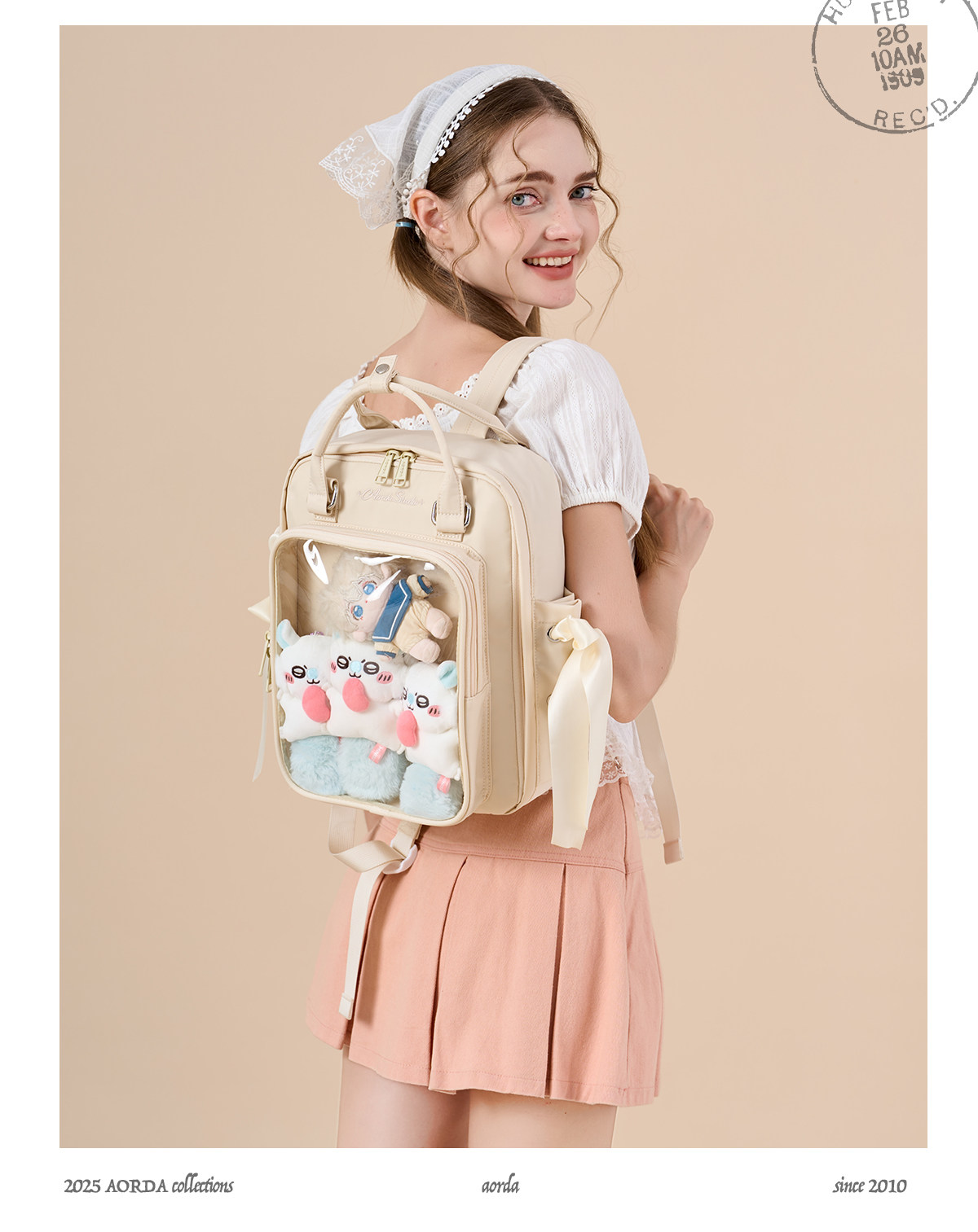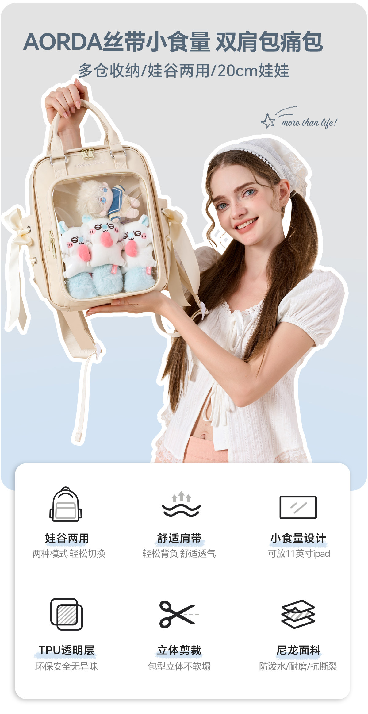 AORDA 絲帶小食量痛包雙肩包日常外出小型後後背包書包20cm娃包吧唧包