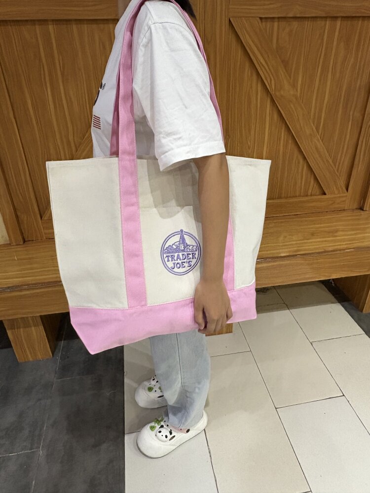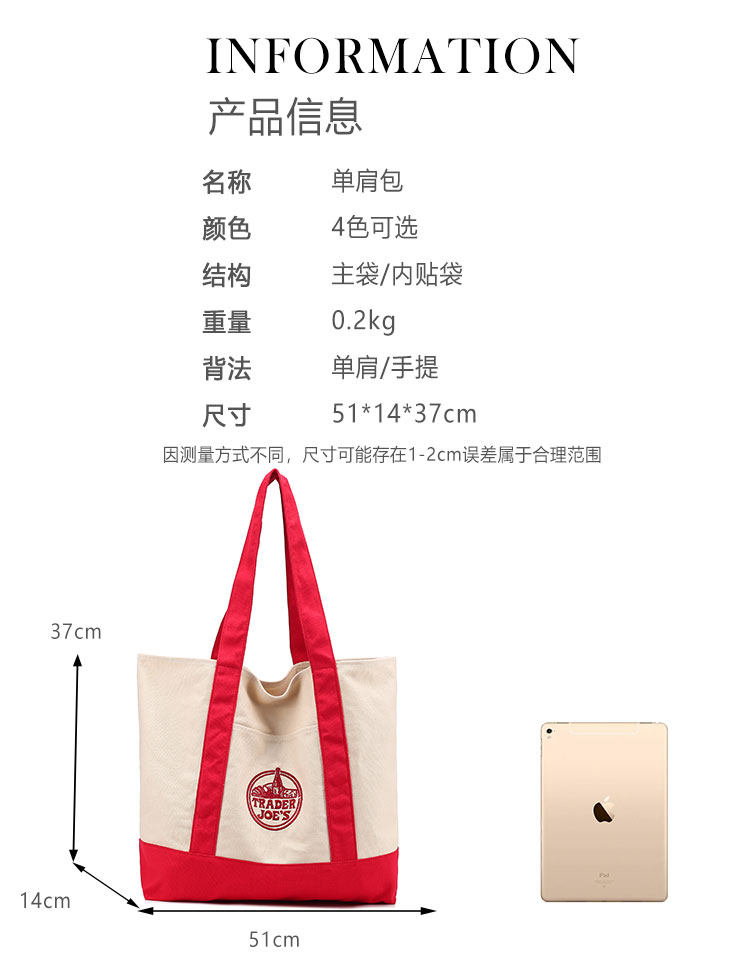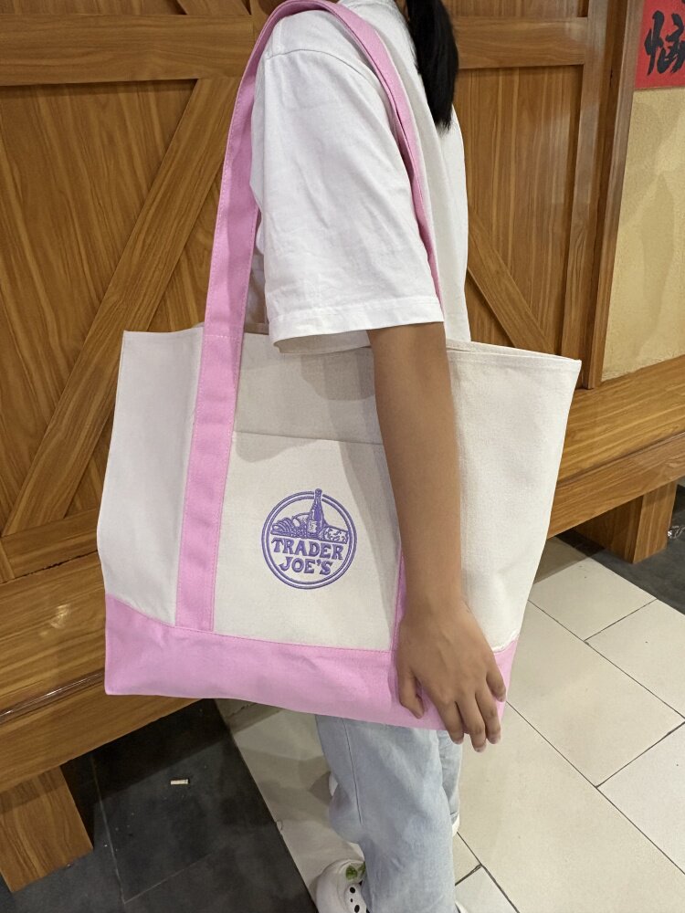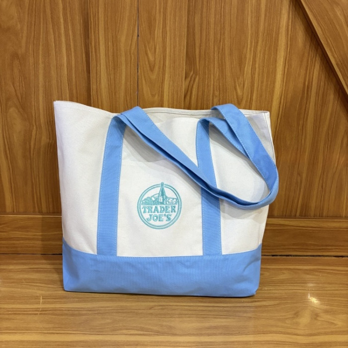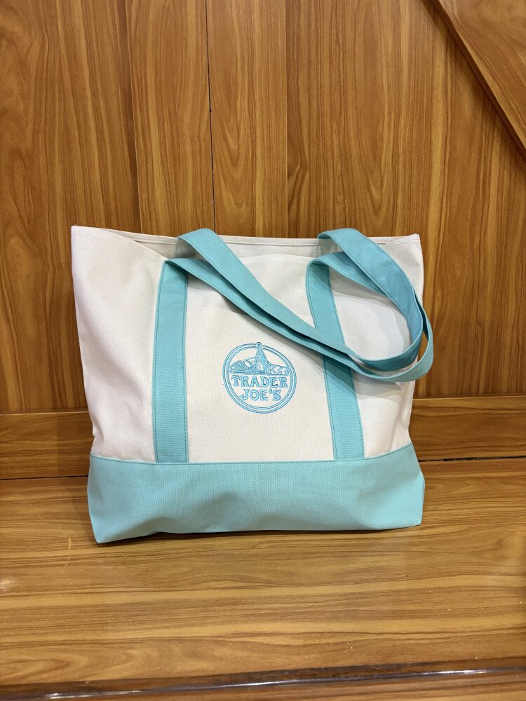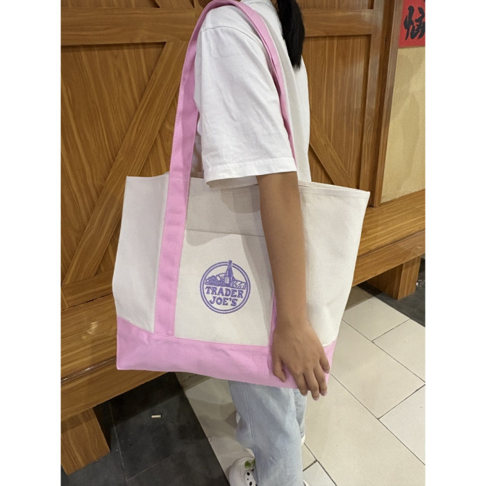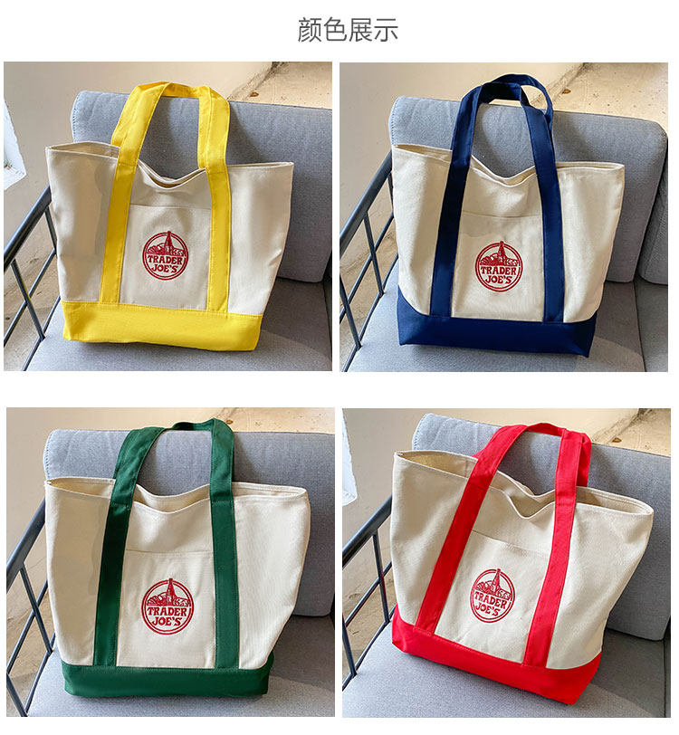 美國Trader Joe's缺德舅拼色大容量購物袋帆布袋手提單肩托特包