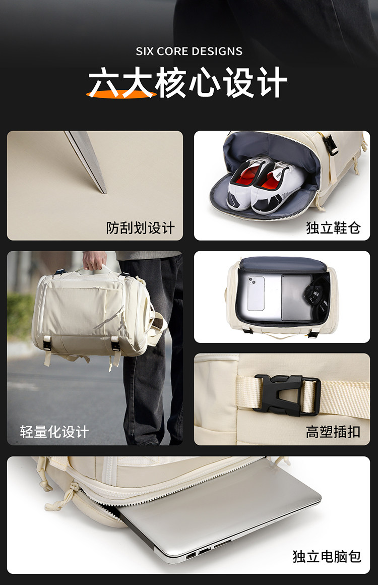大容量雙肩包輕便多層口袋可擴展出差旅行包高顔值休閒通勤電腦包