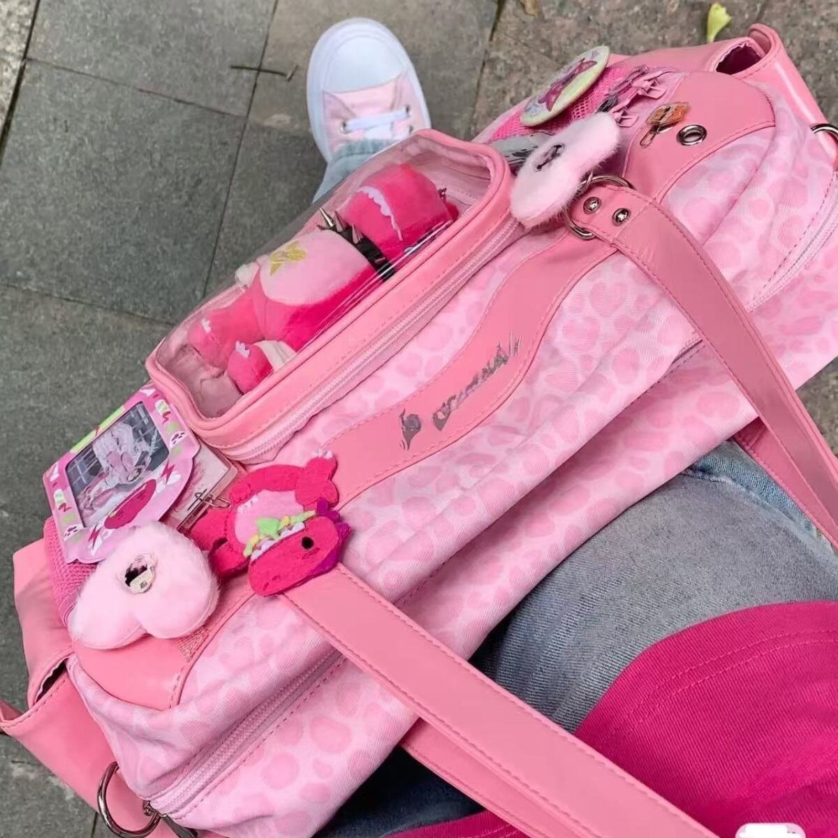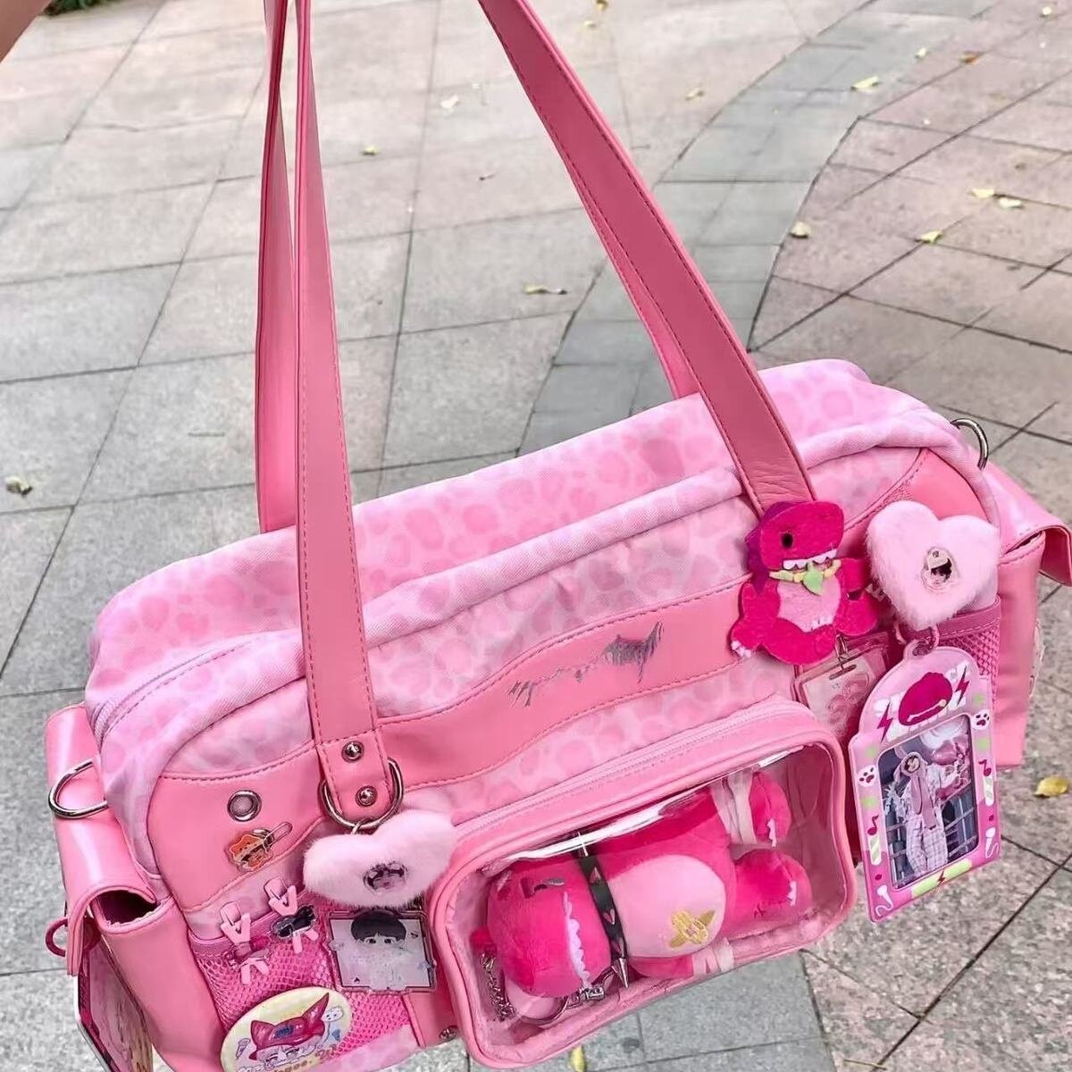2026新款時尚百搭粉色豹紋休閒二次元大容量痛包可愛單肩斜後後背包潮