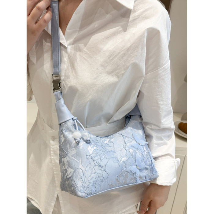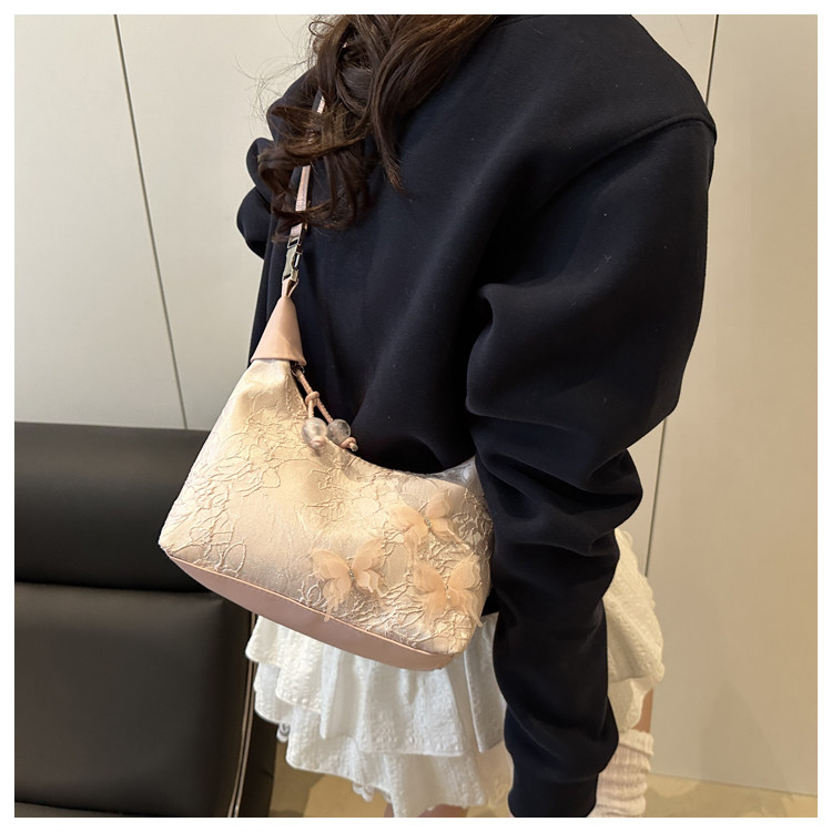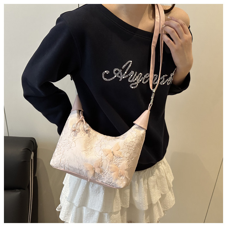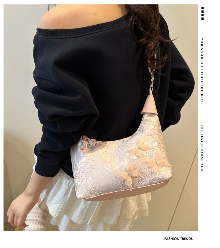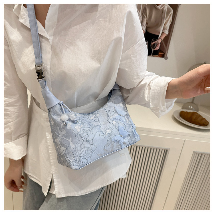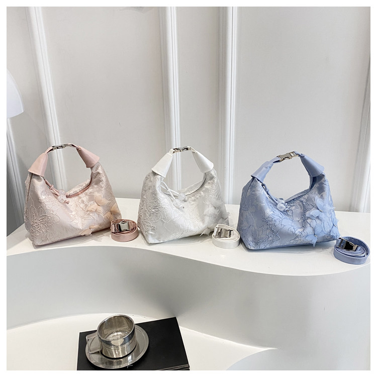 超火小衆新中式包包女2025新款夏季國風刺綉小拎包百搭斜背餃子包