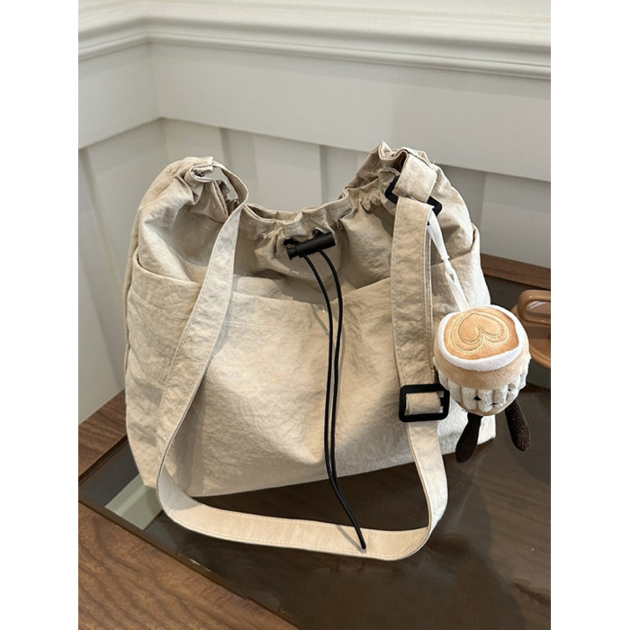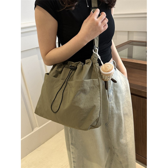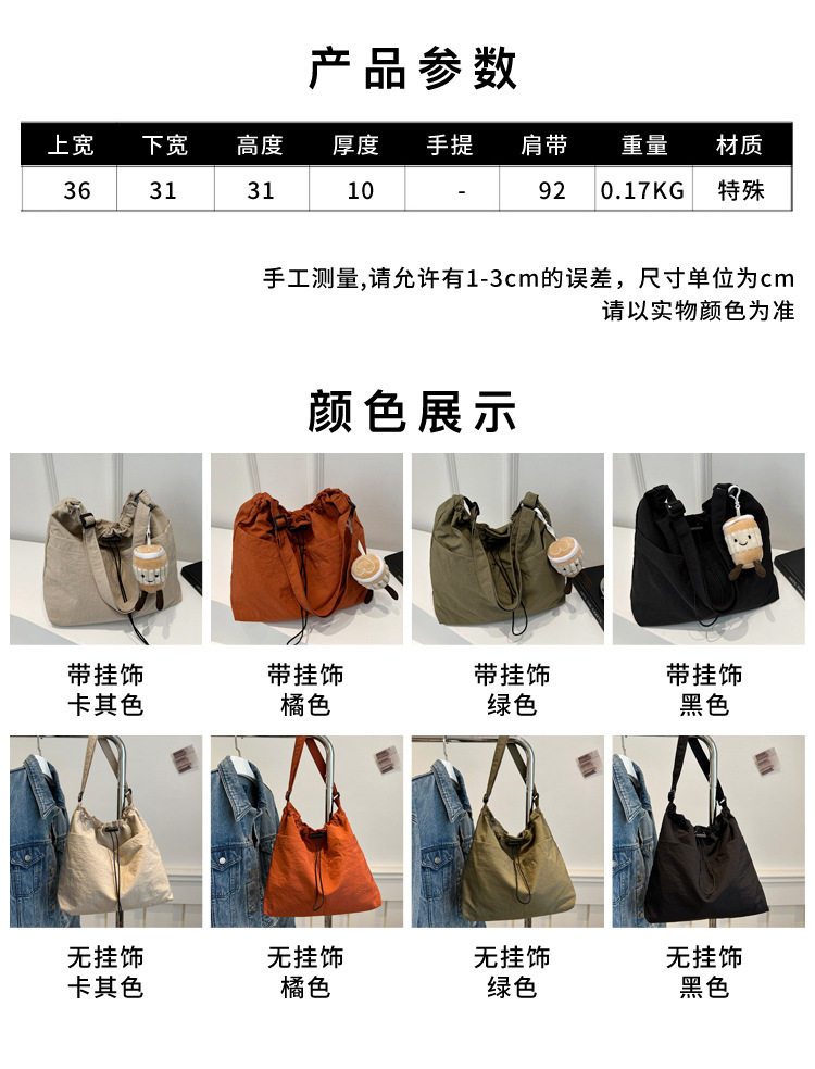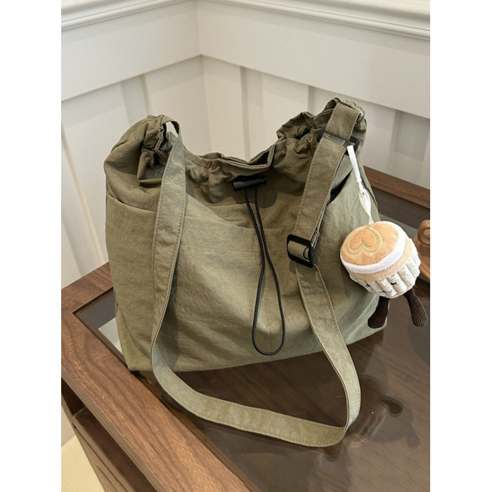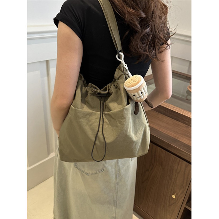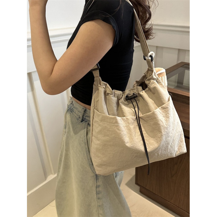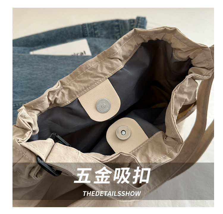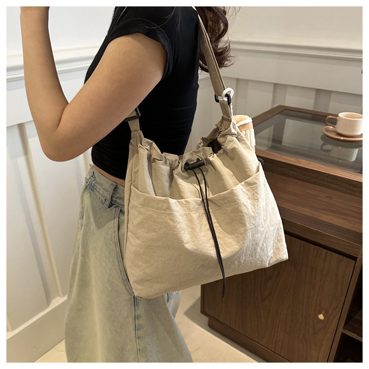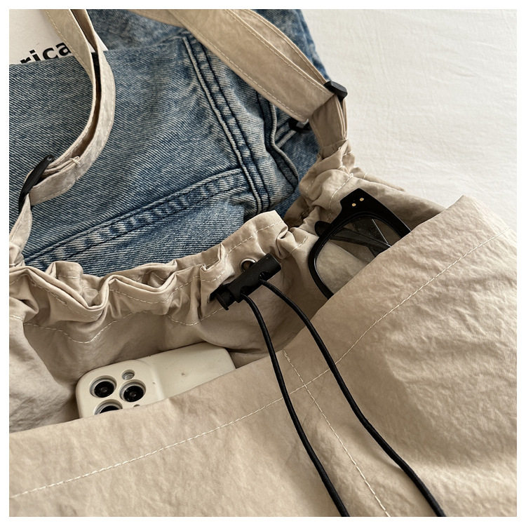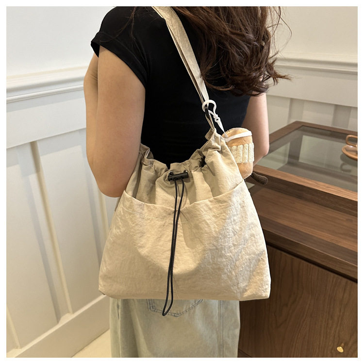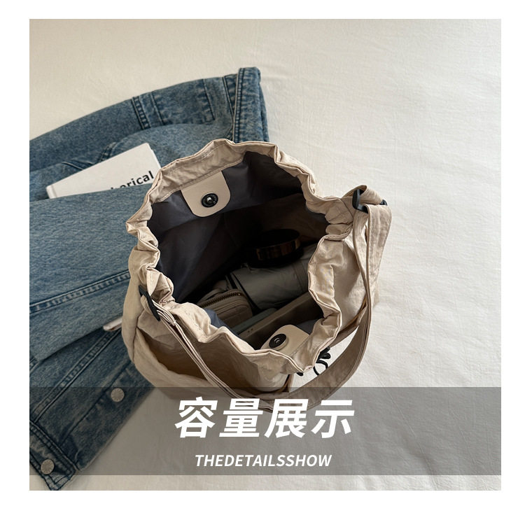 大容量防水尼龍布抽繩褶皺單肩包2025新款旅遊出行休閒斜背水桶包