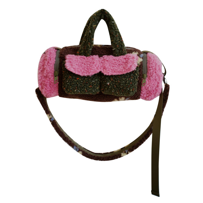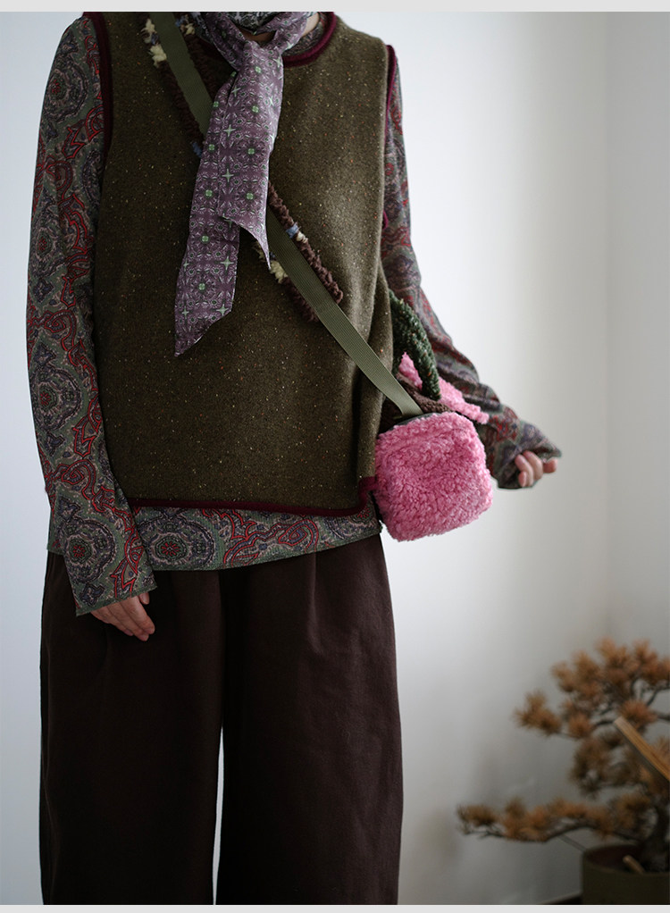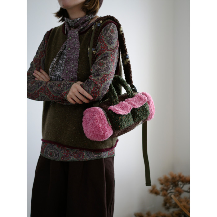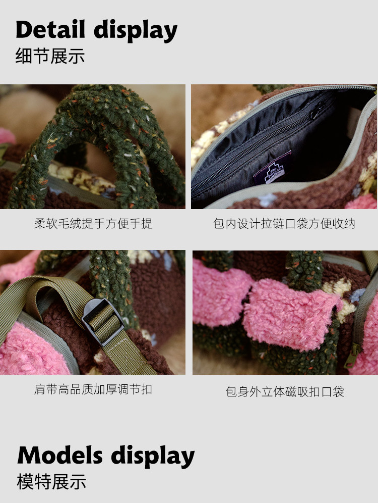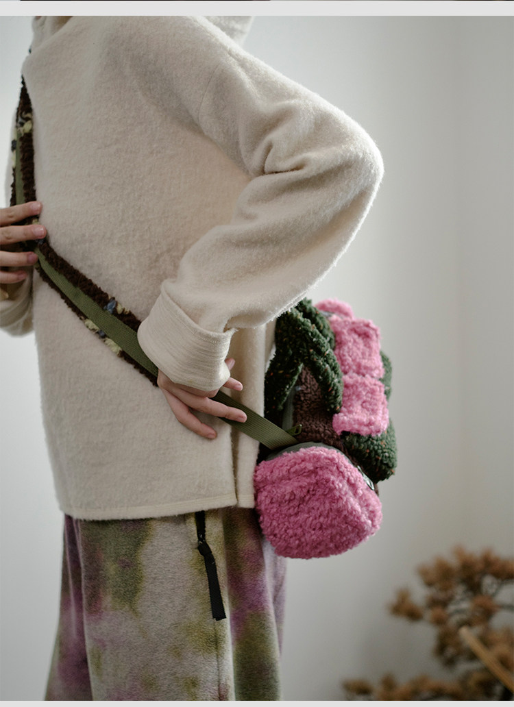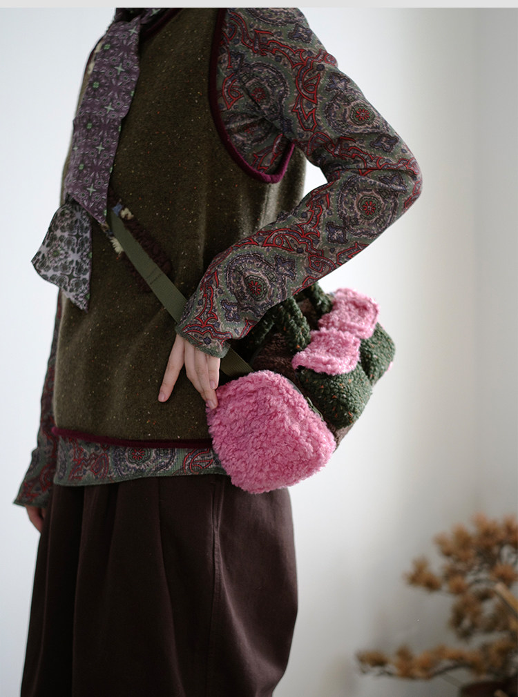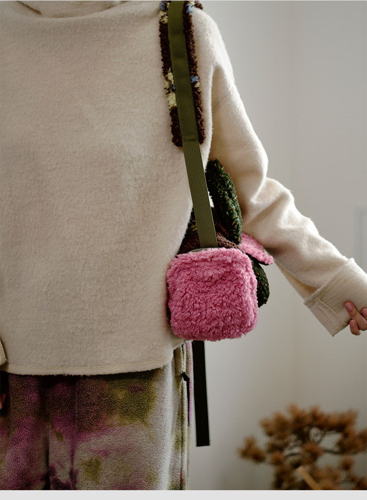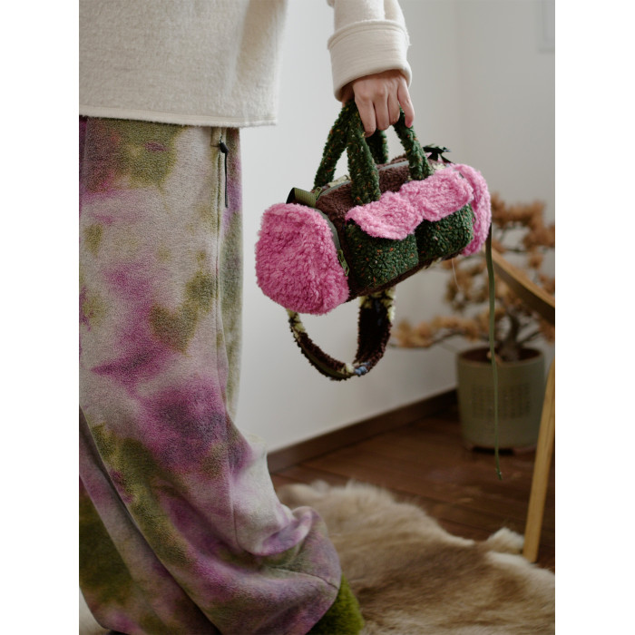 housedesign原創新拼色毛毛斜後後背包2025冬小衆時尚毛絨波士頓包女