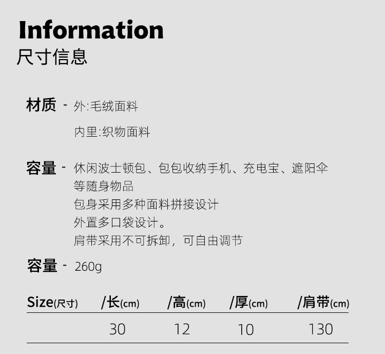 | 款式名稱 | 波士頓包 |