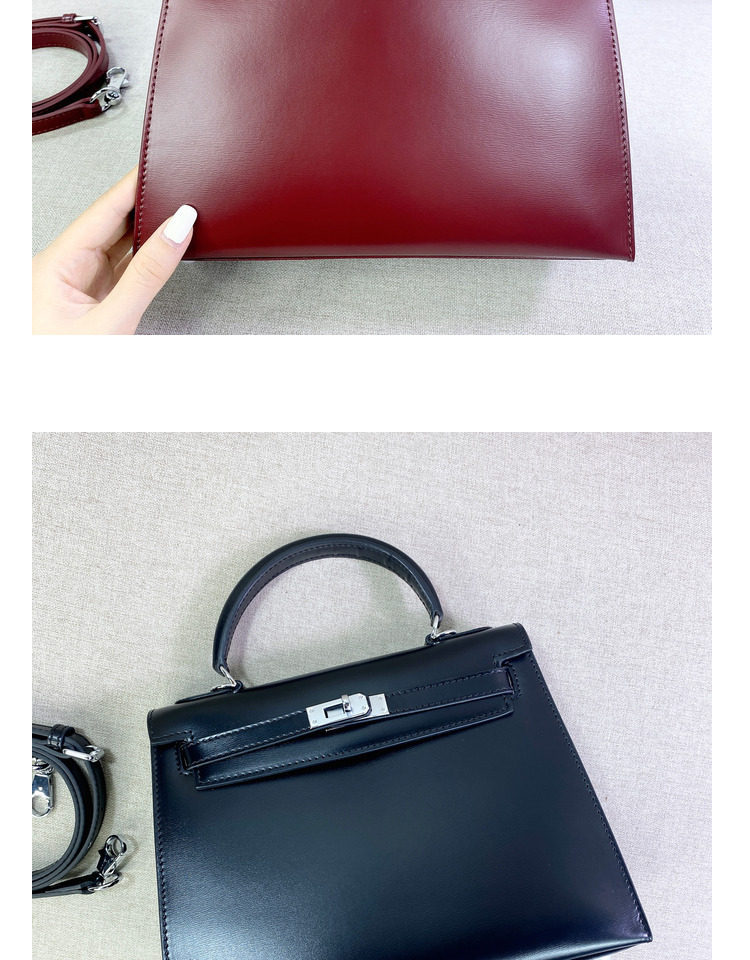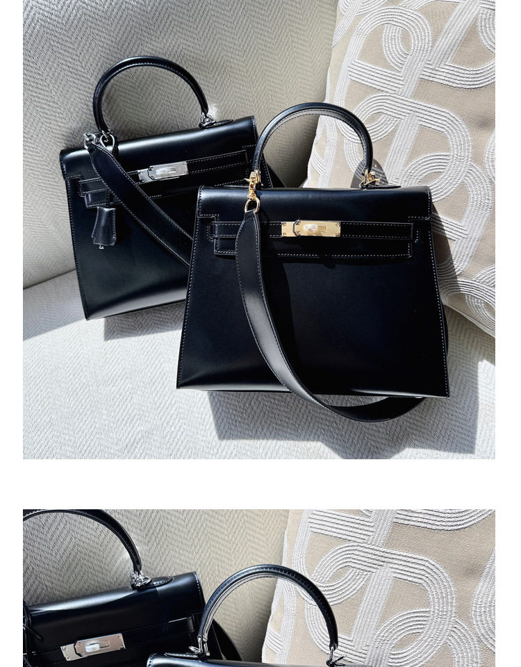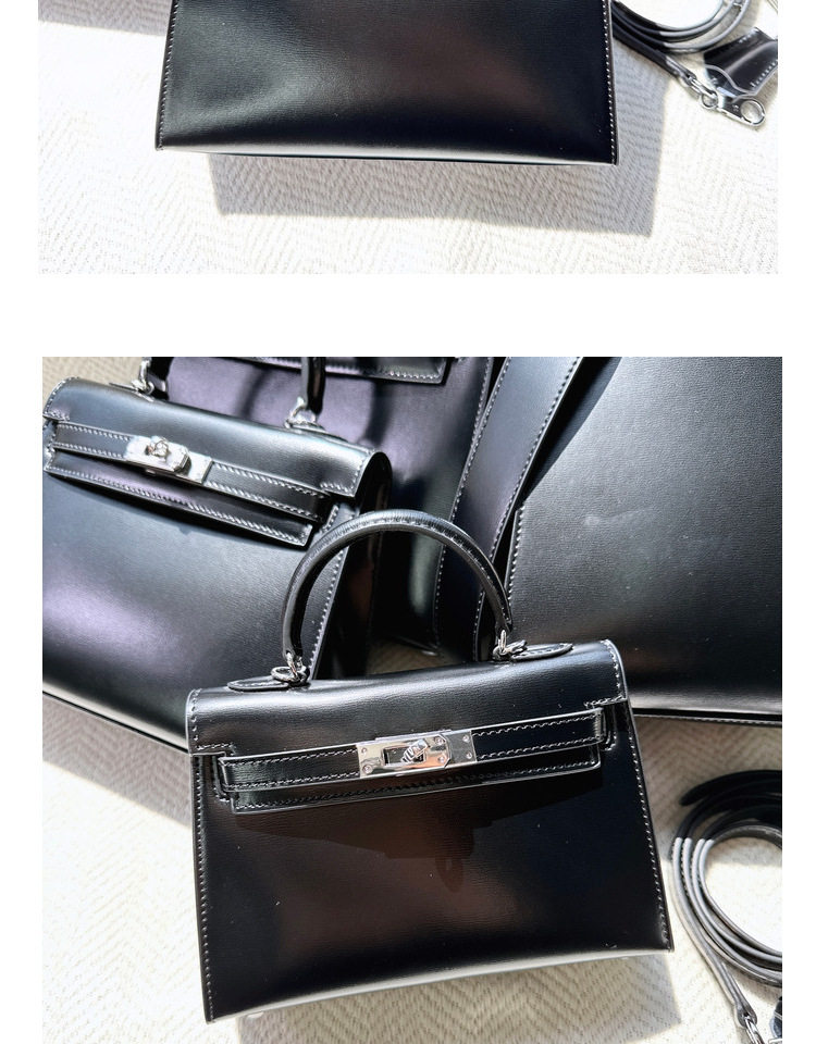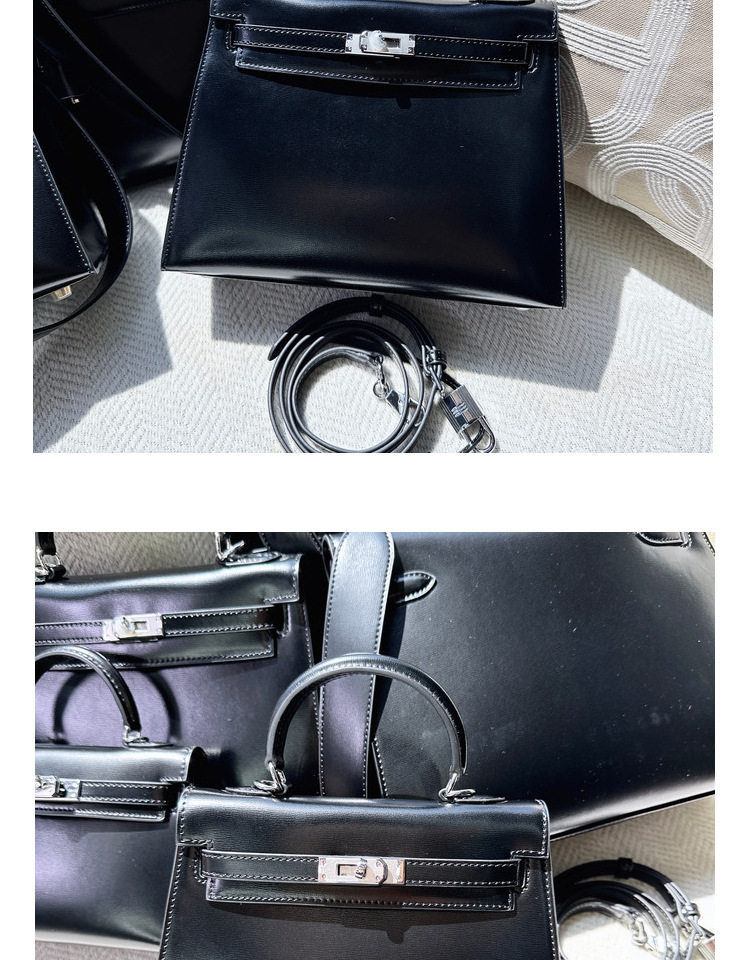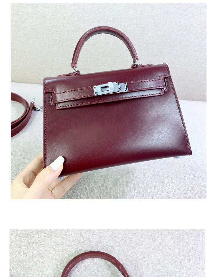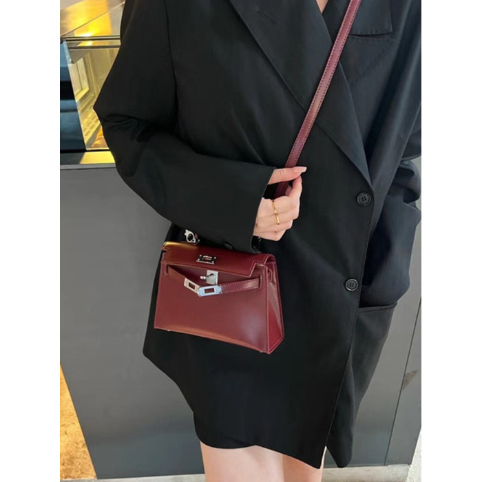 ss小衆2024新款迷你復古真皮二代box牛皮銀釦凱莉包單肩斜背鉑金