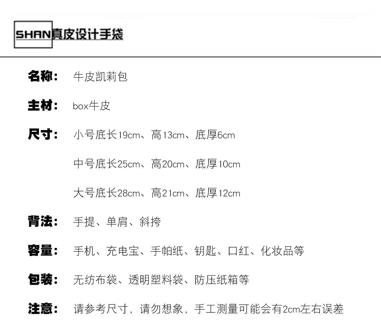 | 款式名稱 | 凱莉包 |