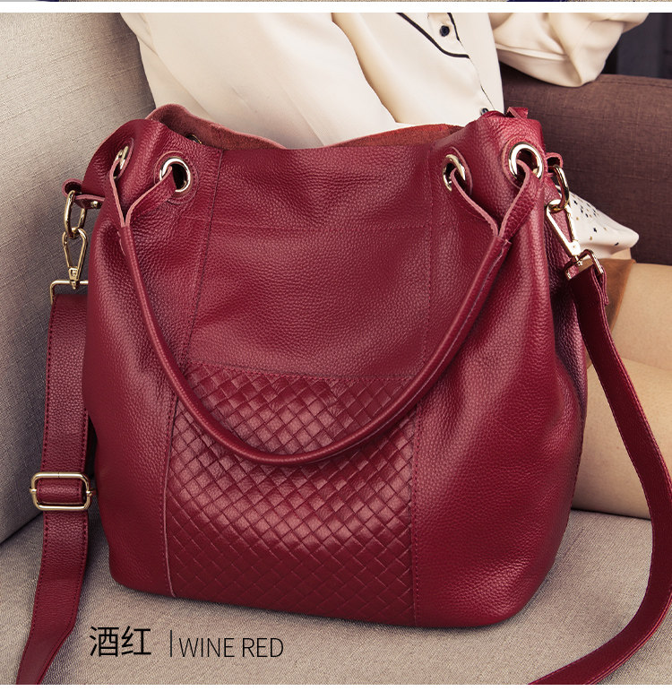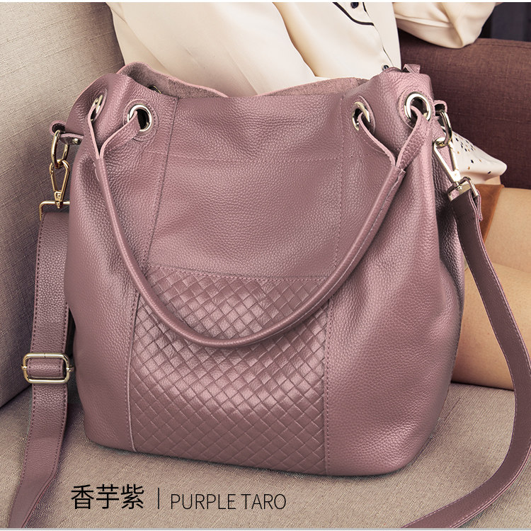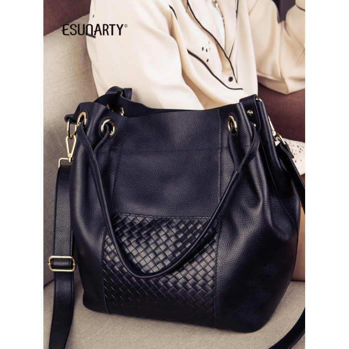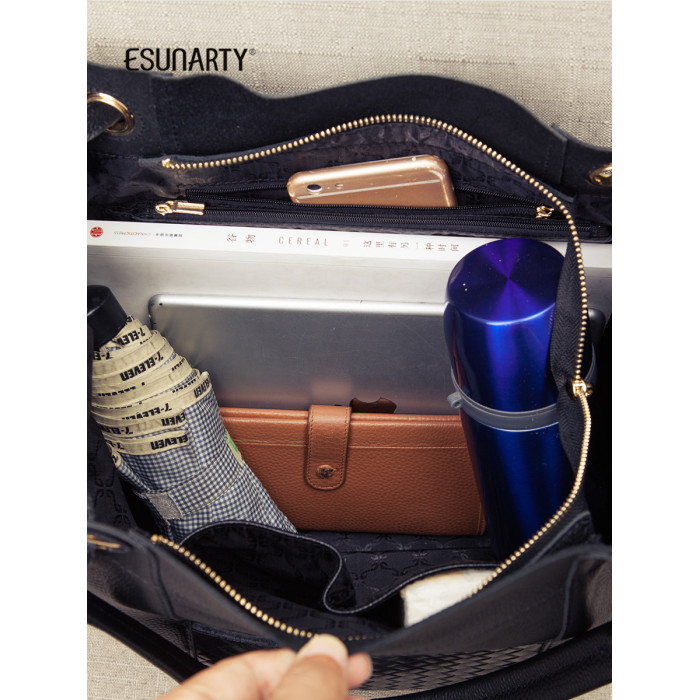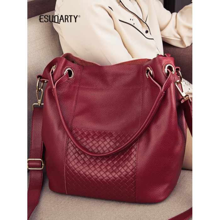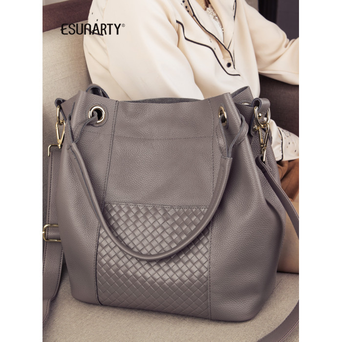 ESUNARTY單肩斜背手提水桶包女2026新款高級感包包真皮軟皮大容量