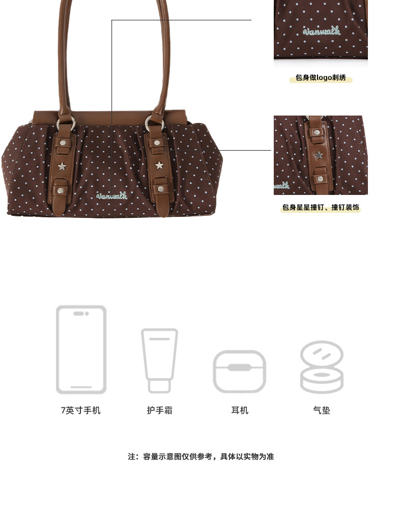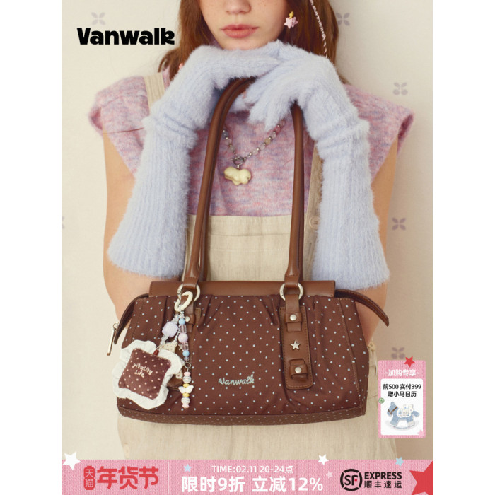 VANWALK糯米團 小衆大容量波點腋下單肩托特包女通勤休閒手提包包