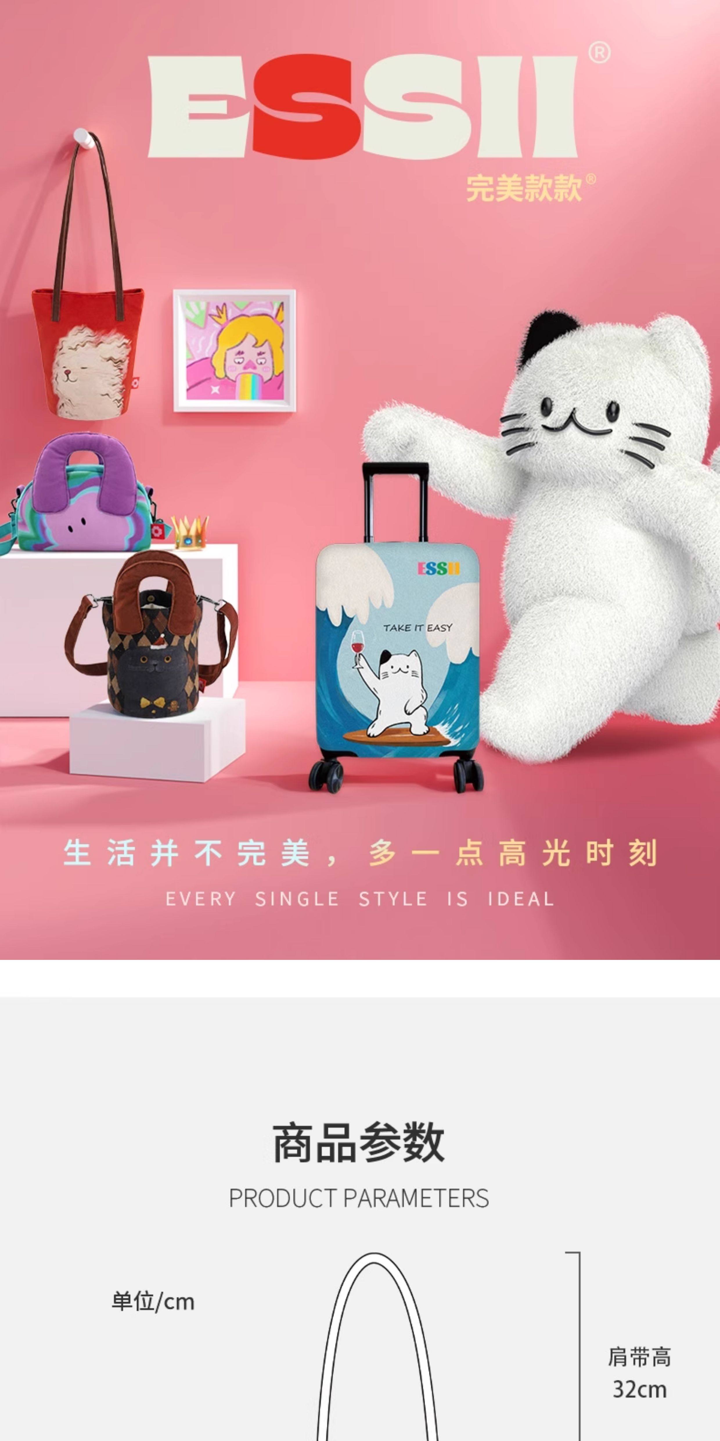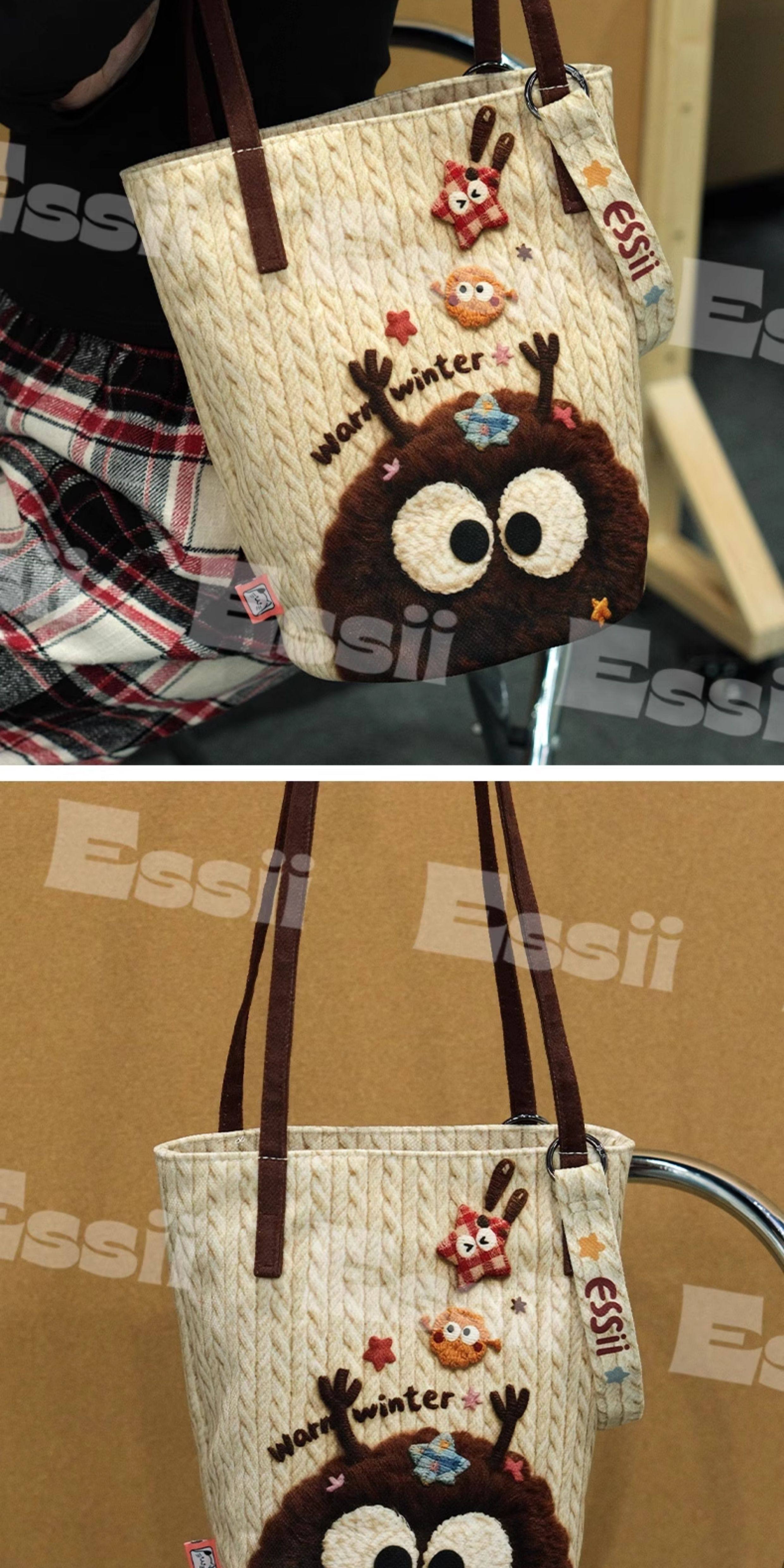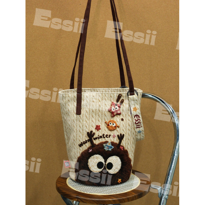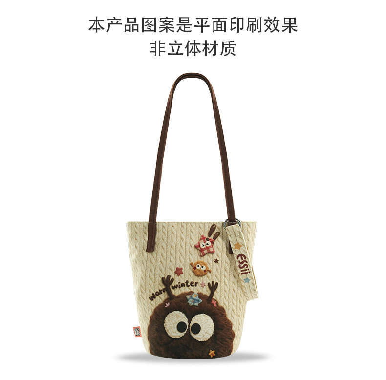 完美款款essii可愛絨毛煤球原創可愛印花單肩可斜背長水桶帆布包