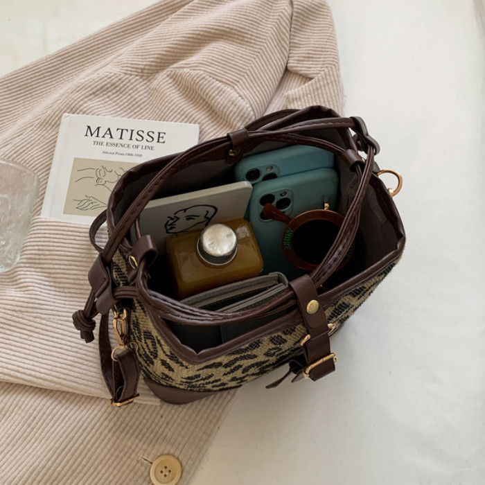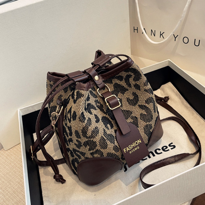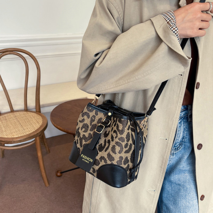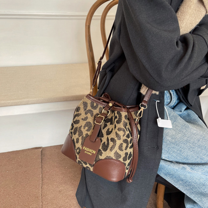 今年流行小包包女ins小衆2021新款時尚豹紋斜後後背包秋冬質感水桶包