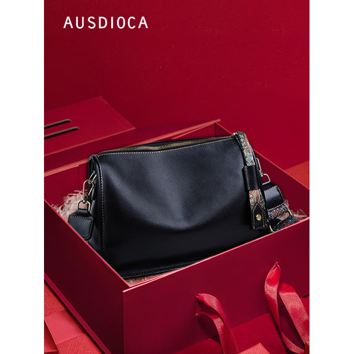 真皮斜後後背包女2026新款時尚小方包中年女包媽媽包頭層牛皮單肩小包