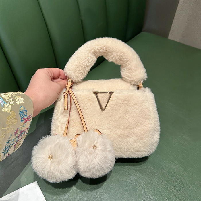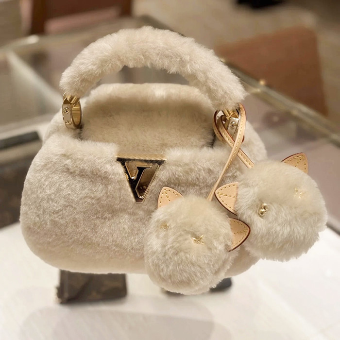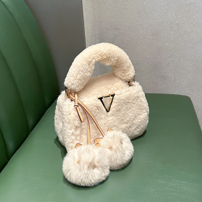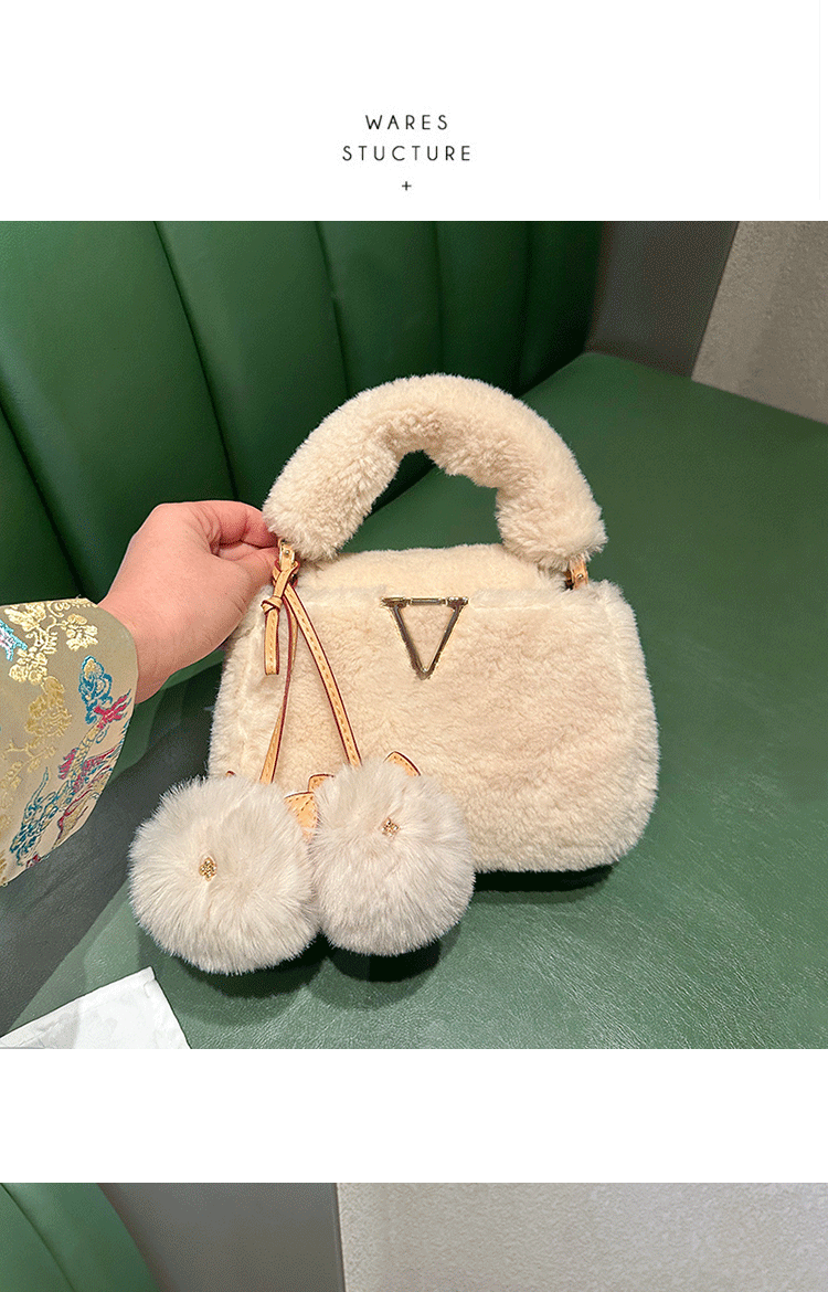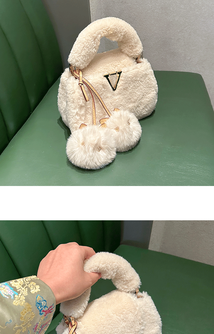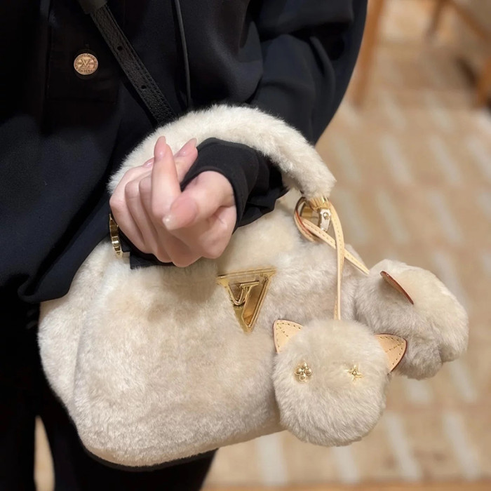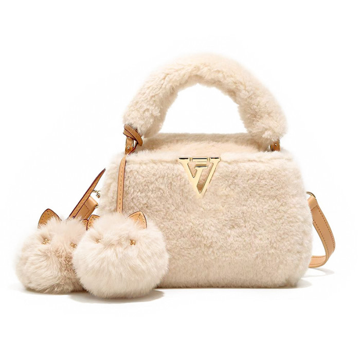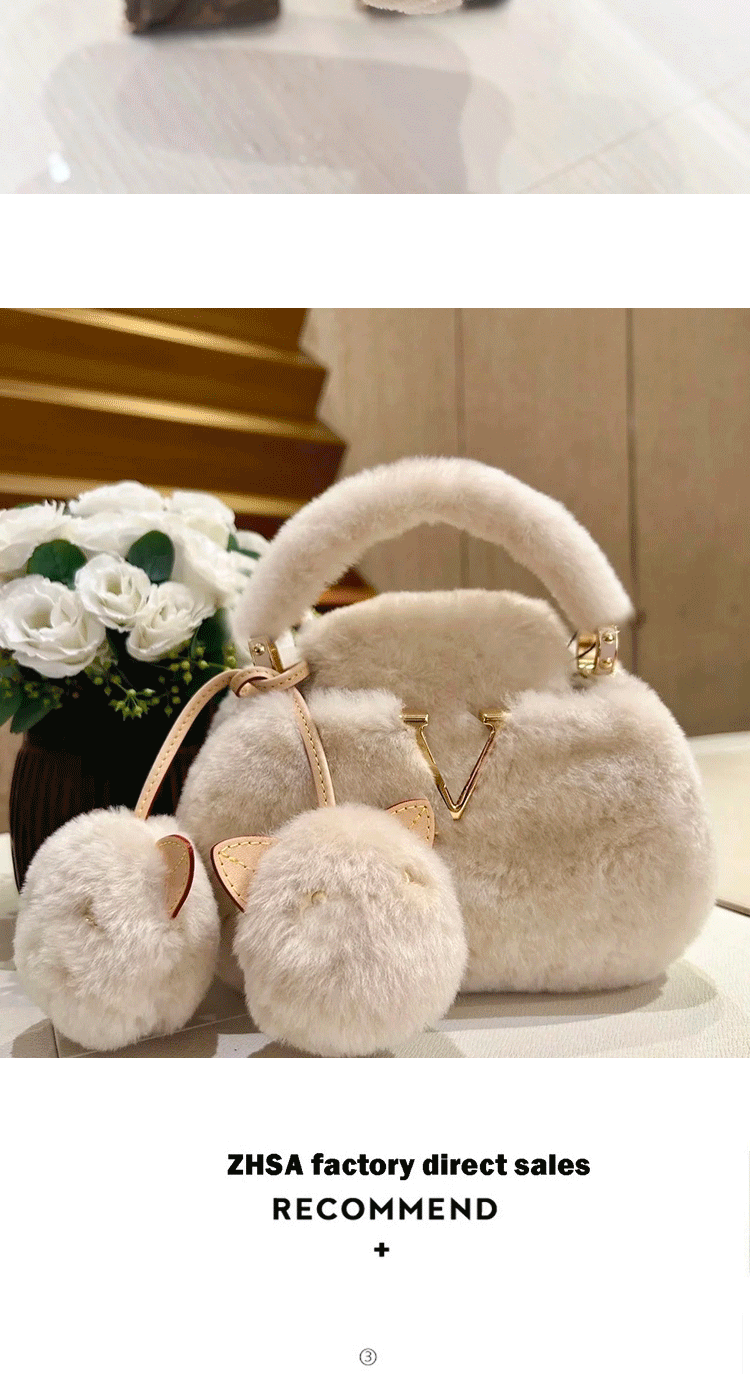 2026秋冬毛絨手提包V羊絨皮草大衣搭配神器單肩包毛掛飾小貓斜背