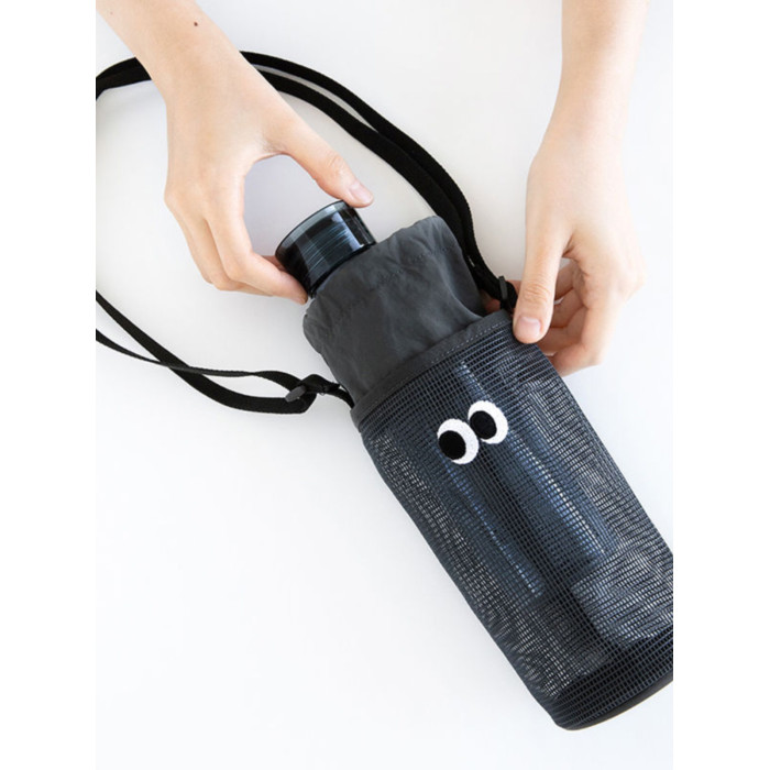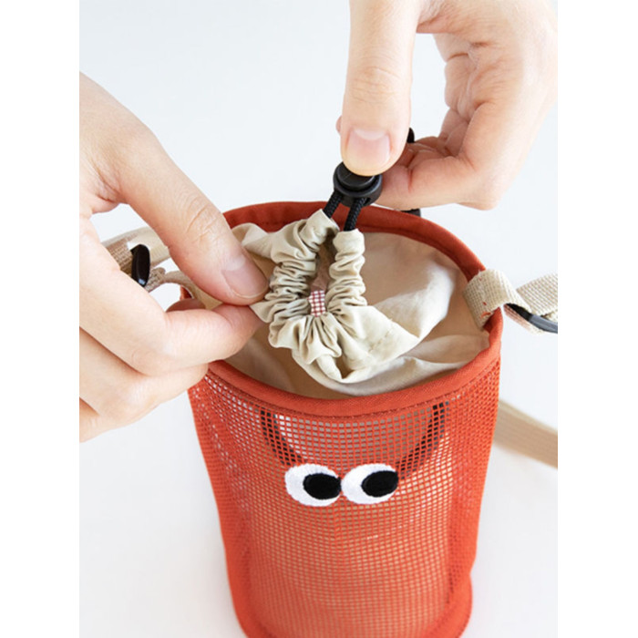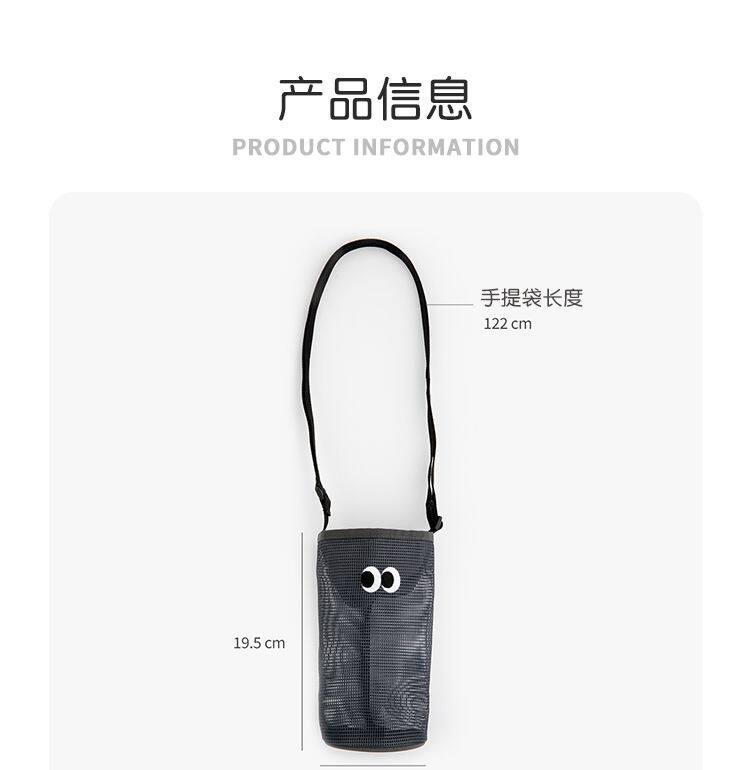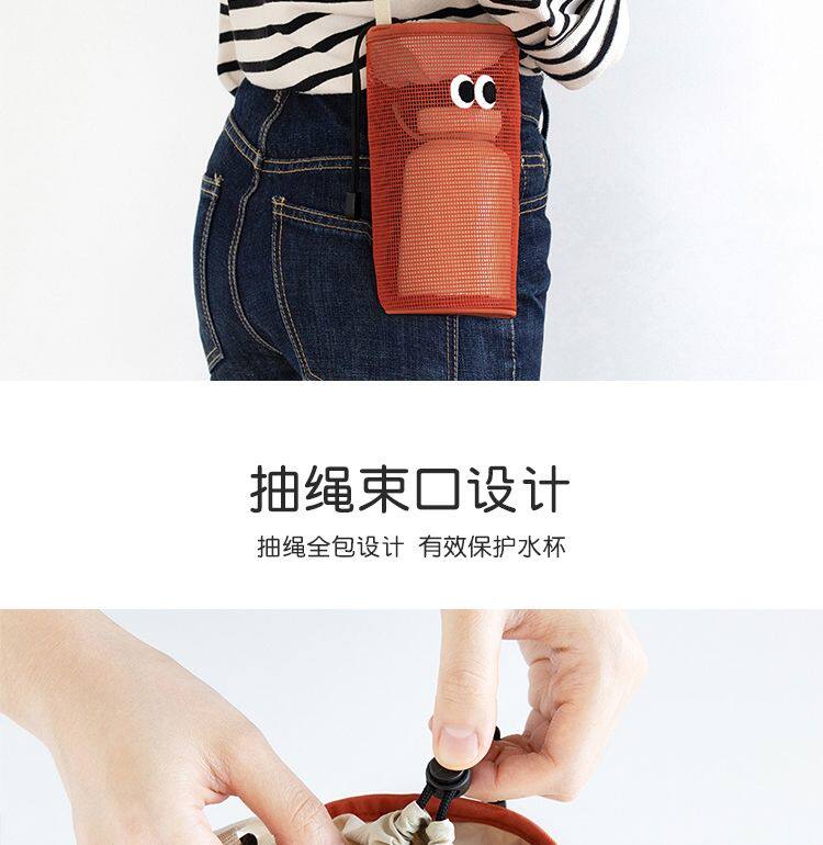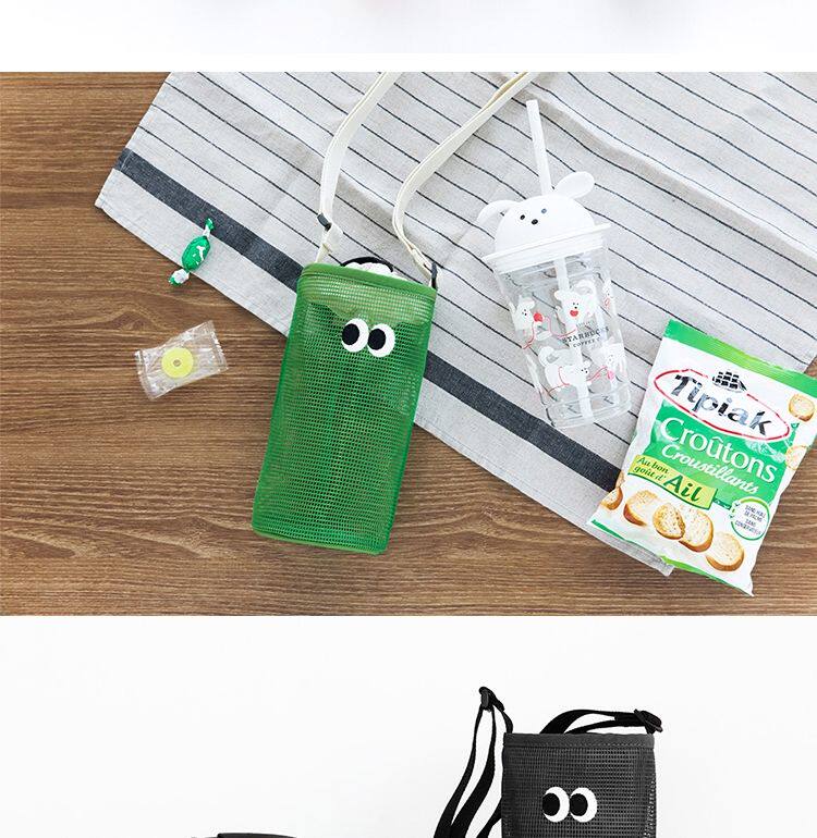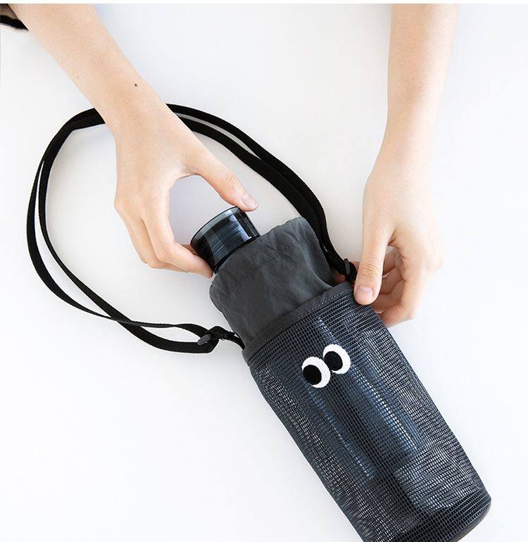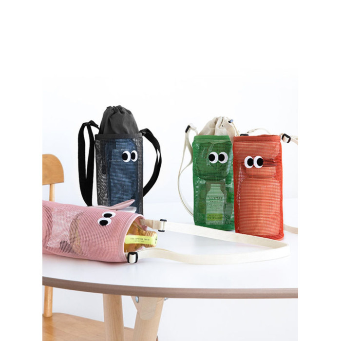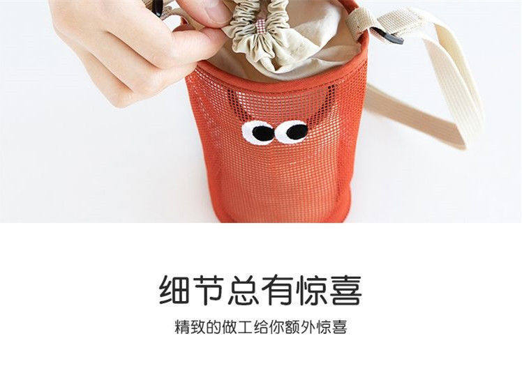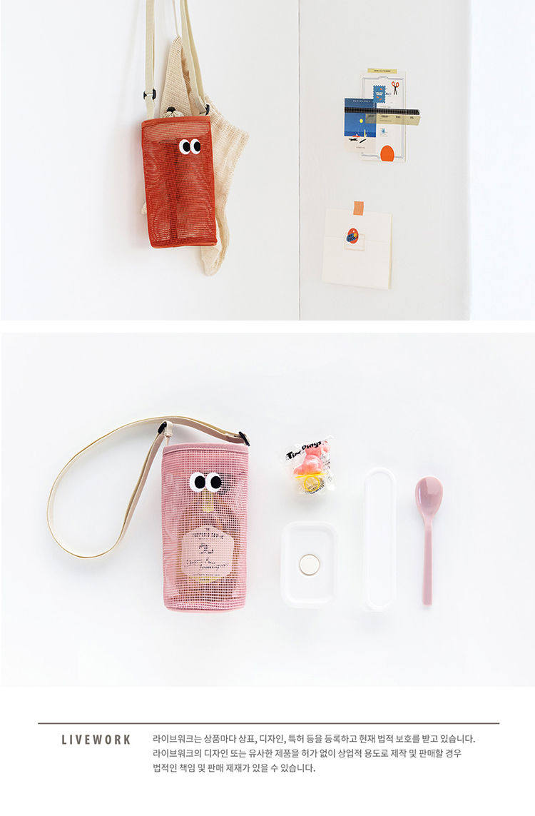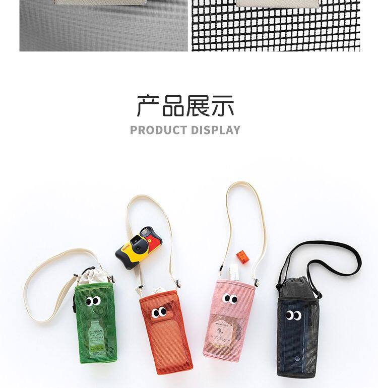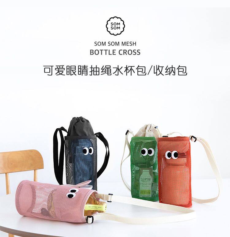 韓國livework可愛大眼睛抽繩束口水杯瓶收納袋女單肩斜背網眼小包