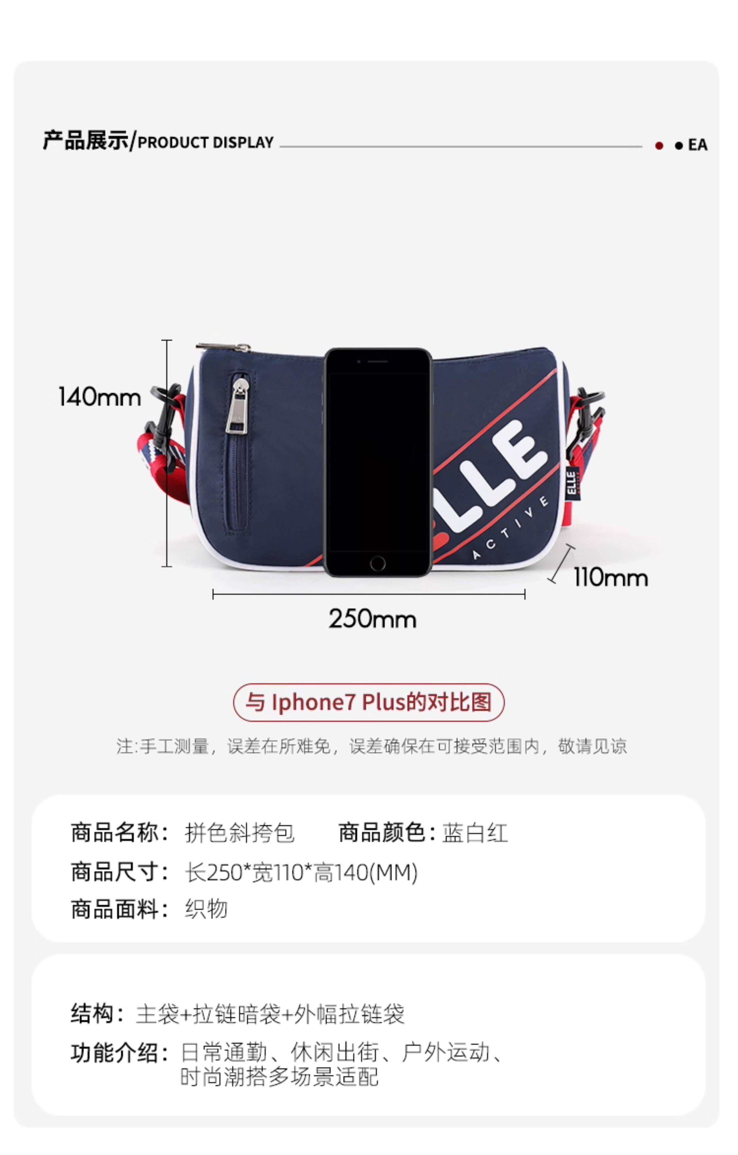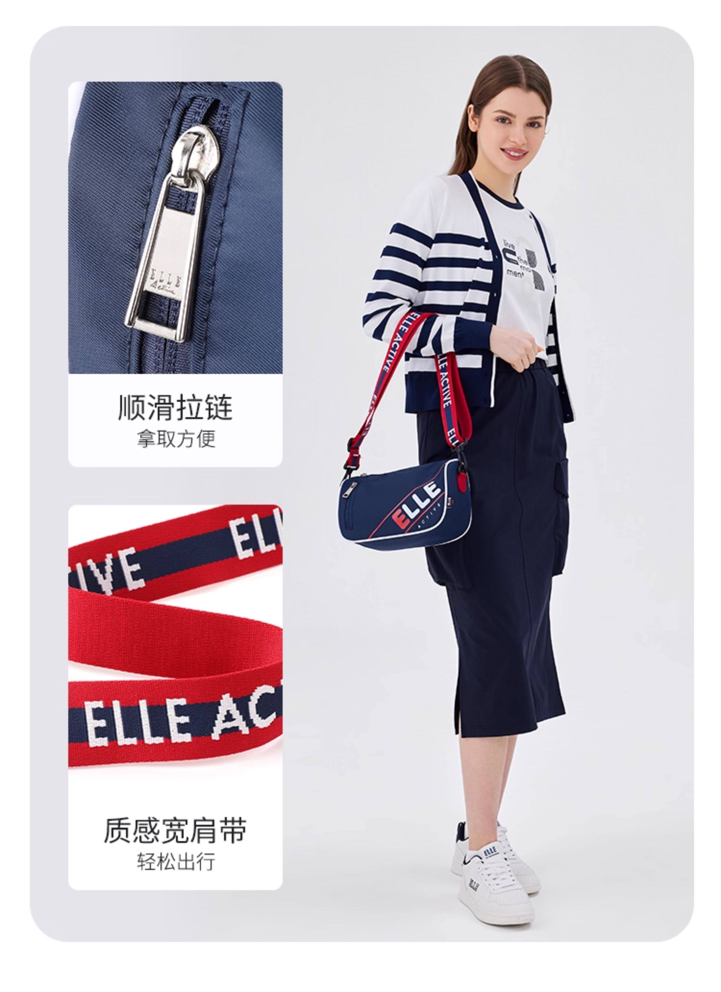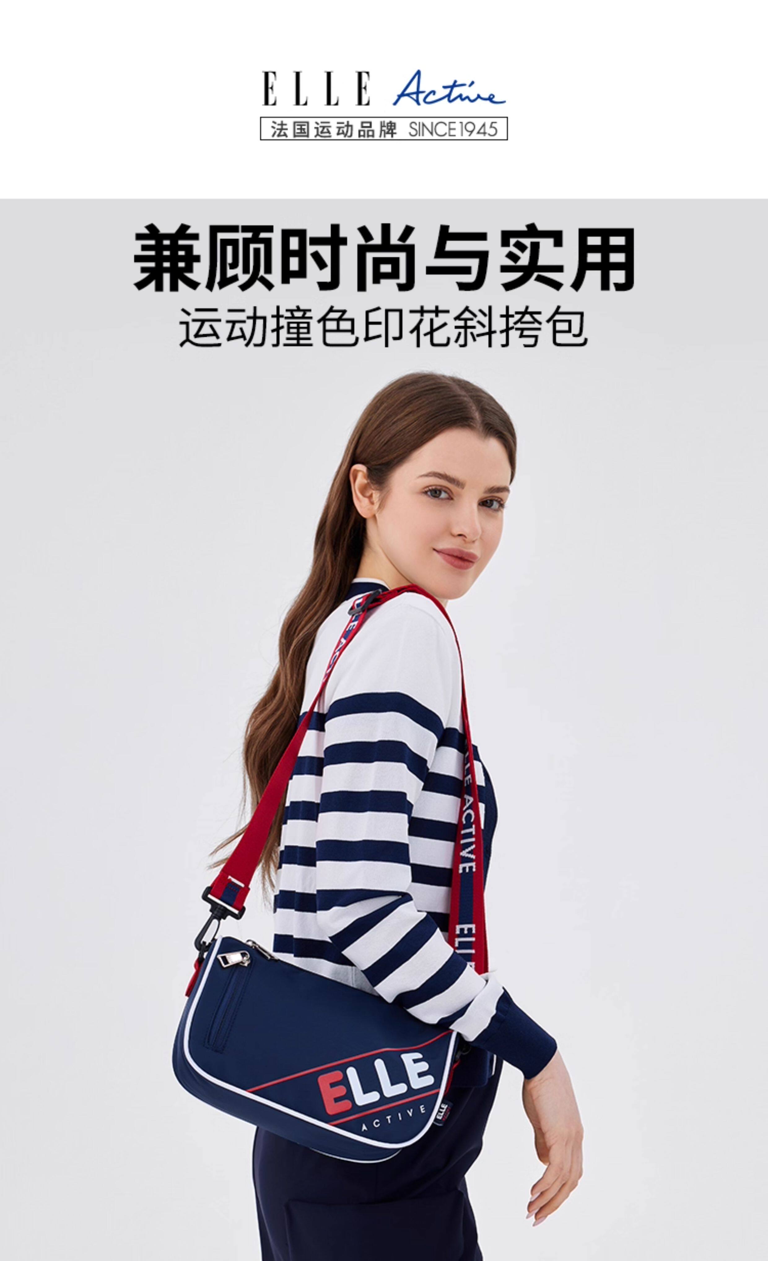 ELLE Active新款女包拼色字母印花尼龍運動斜後後背包休閒百搭單肩包