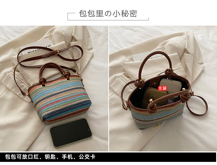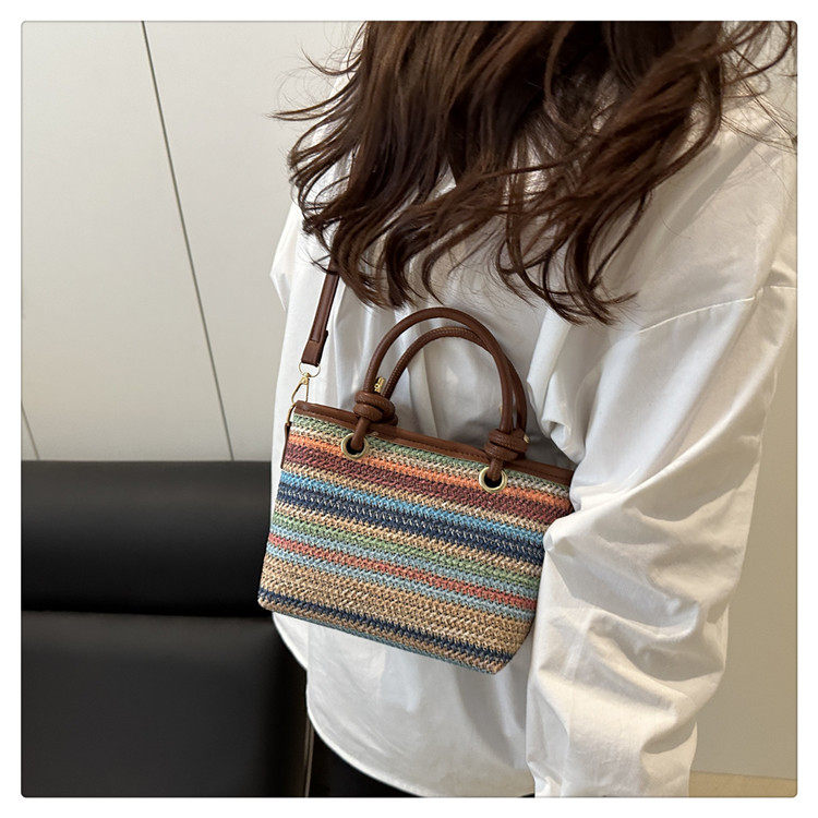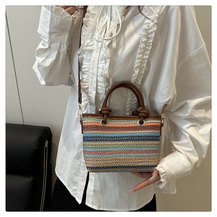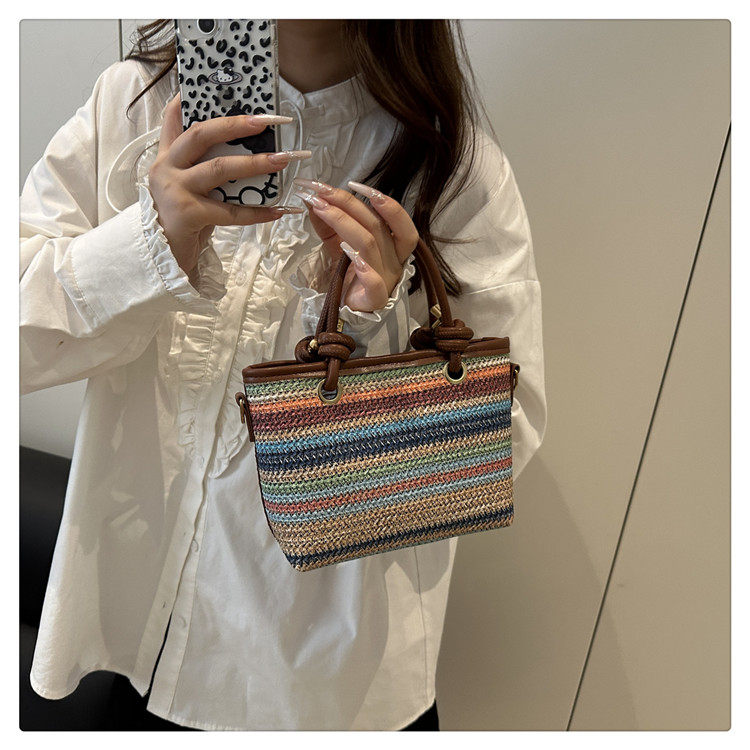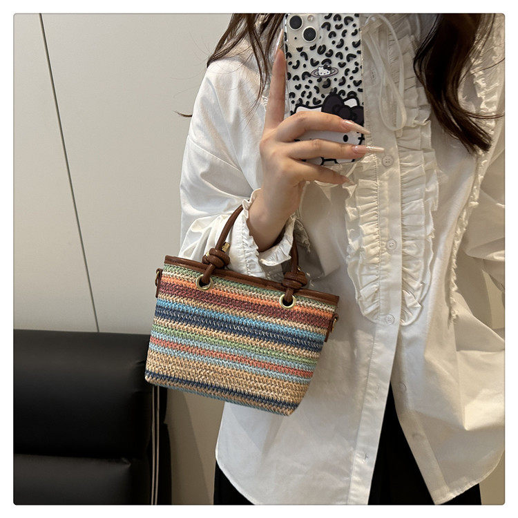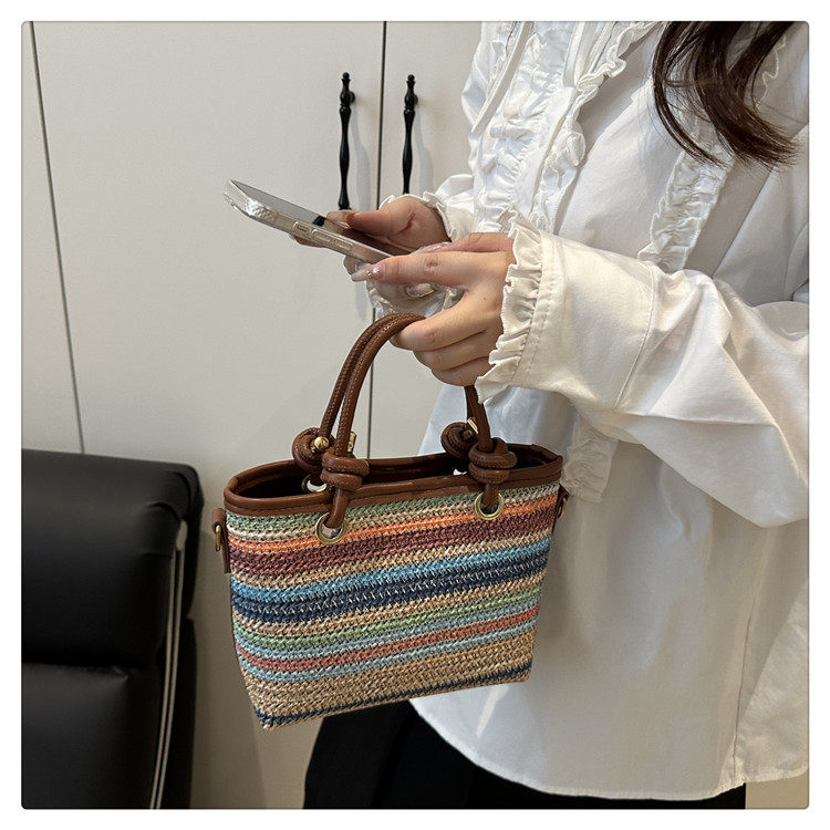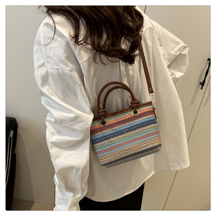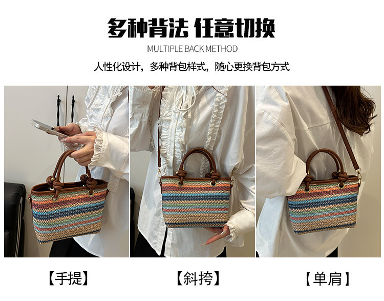 夏季手提編織包包女2025新款潮時尚復古小托特包百搭斜背草編包