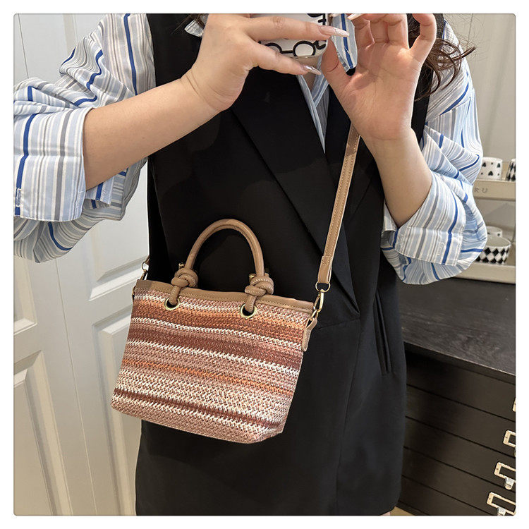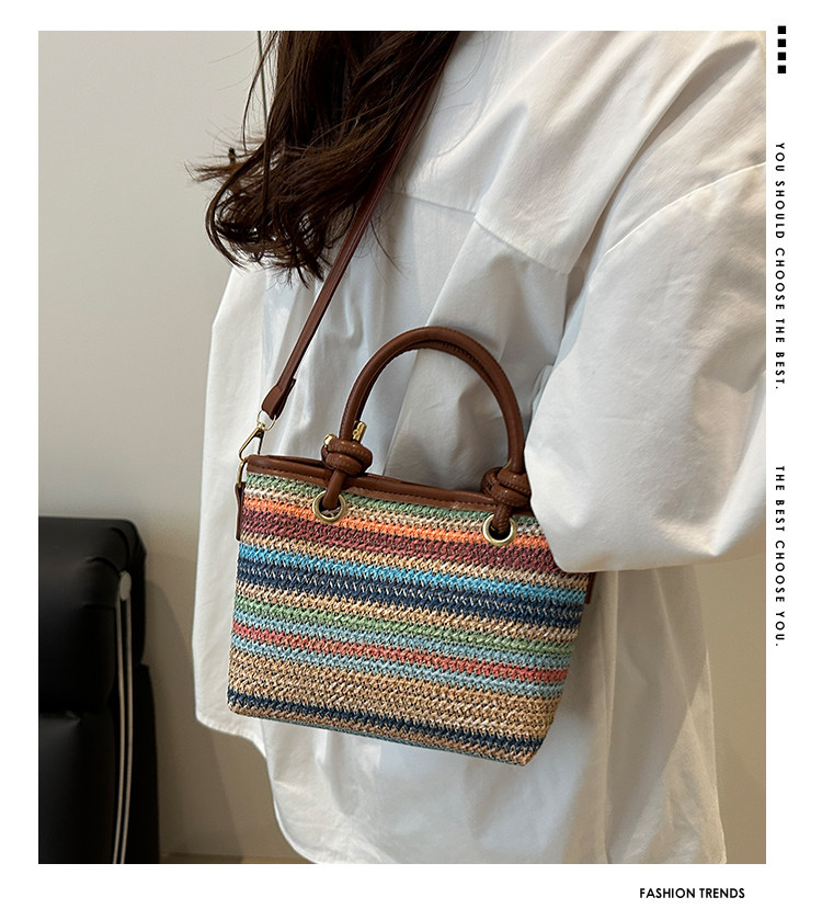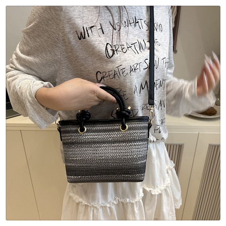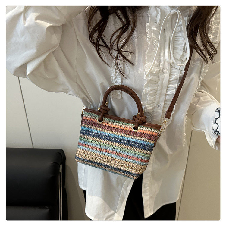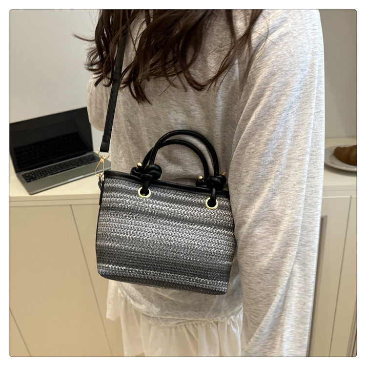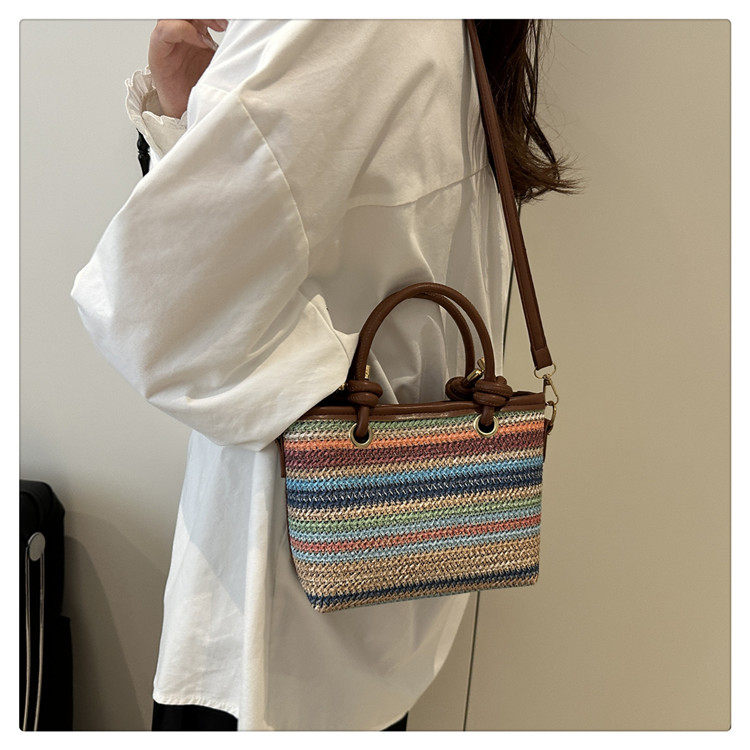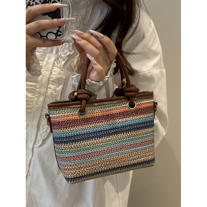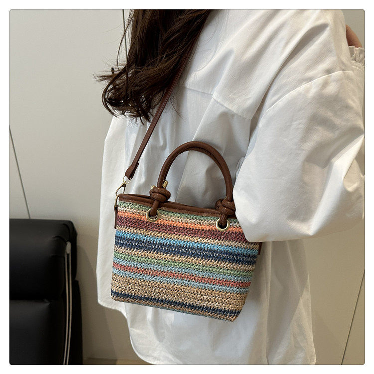 夏季手提編織包包女2025新款潮時尚復古小托特包百搭斜背草編包