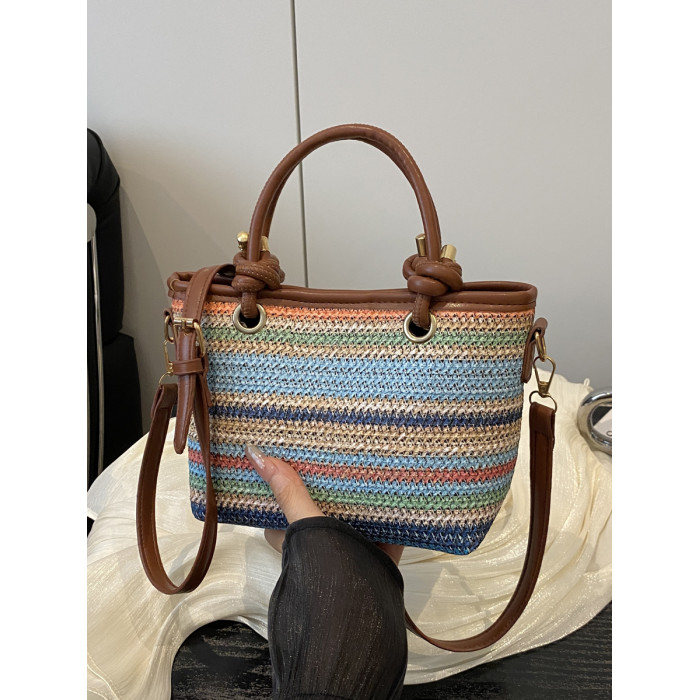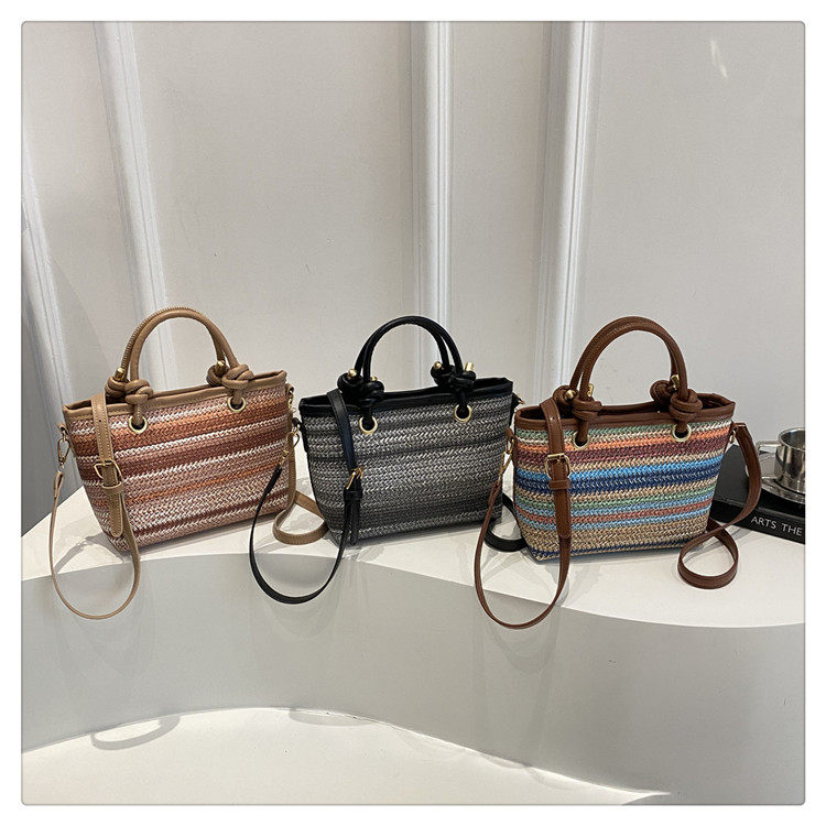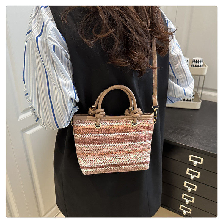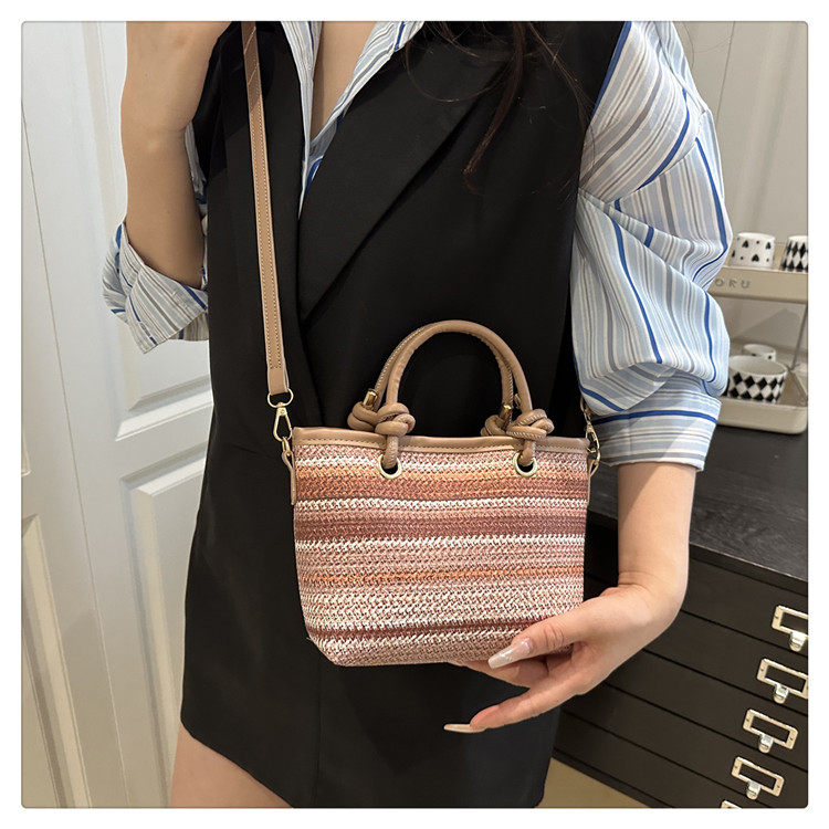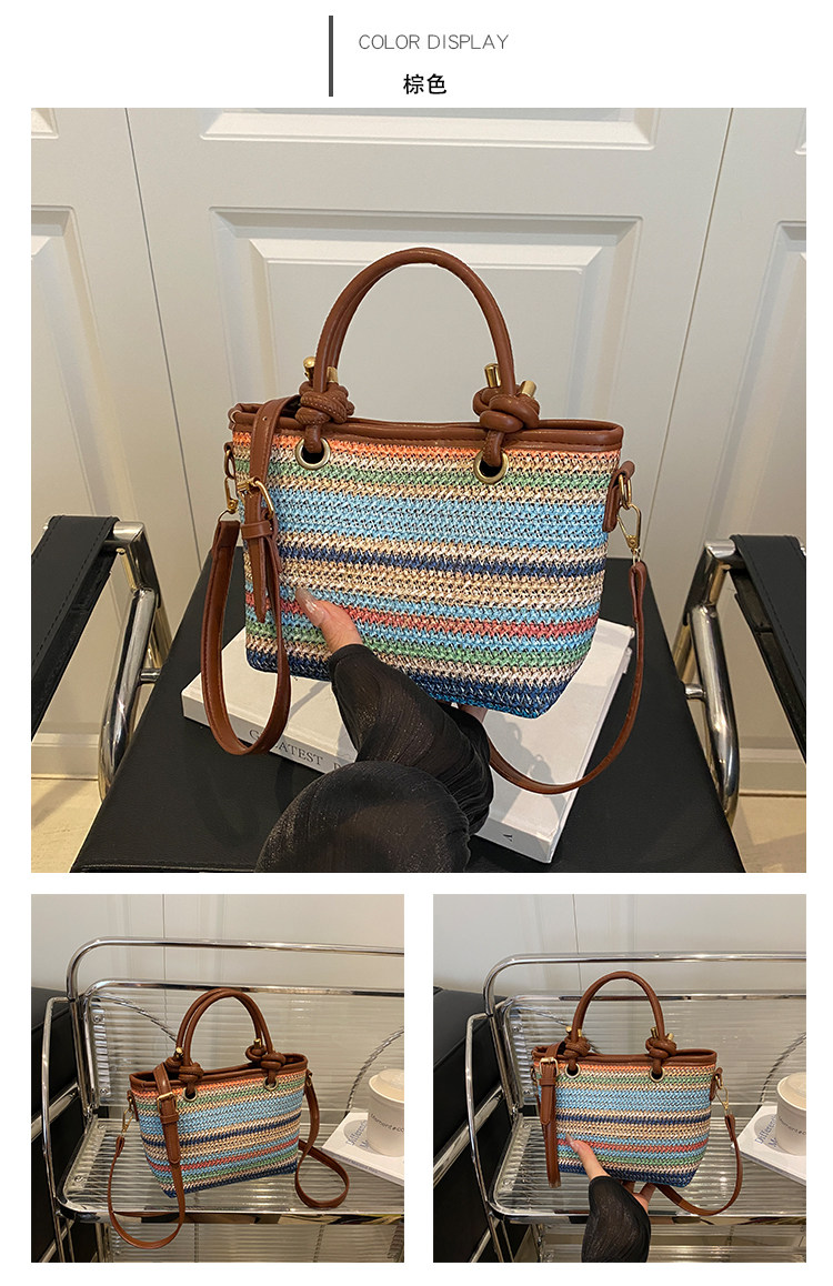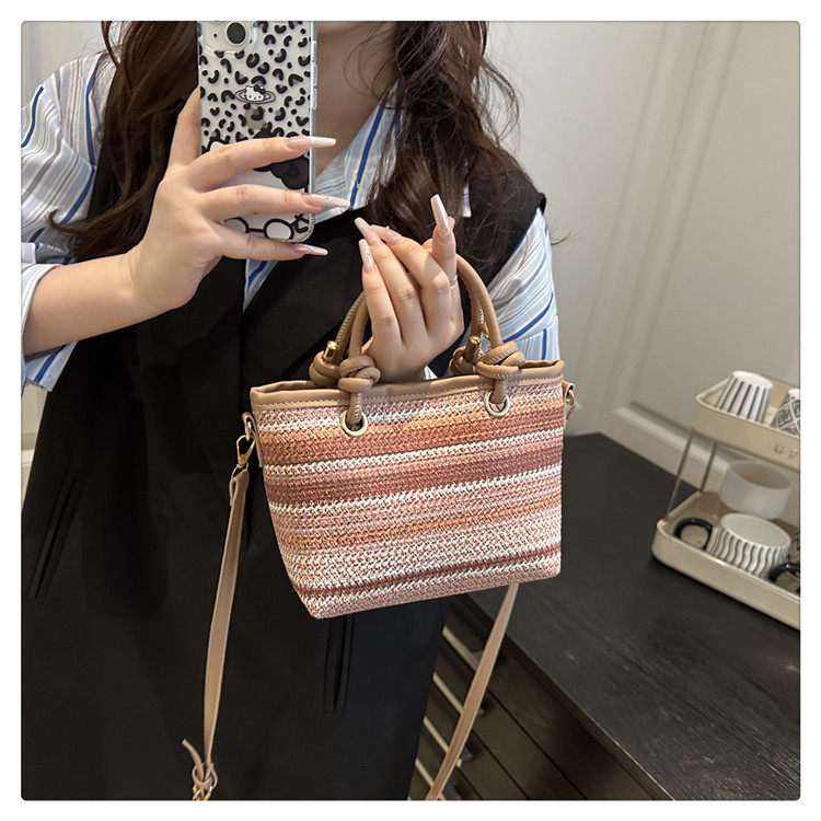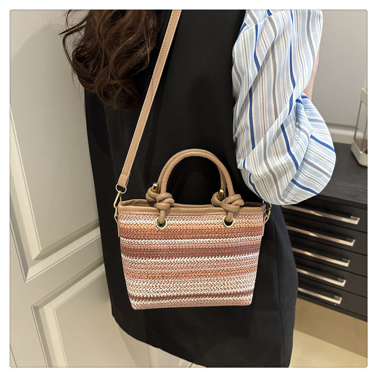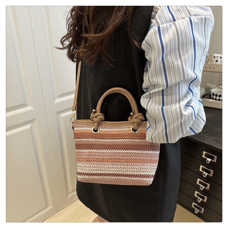 夏季手提編織包包女2025新款潮時尚復古小托特包百搭斜背草編包