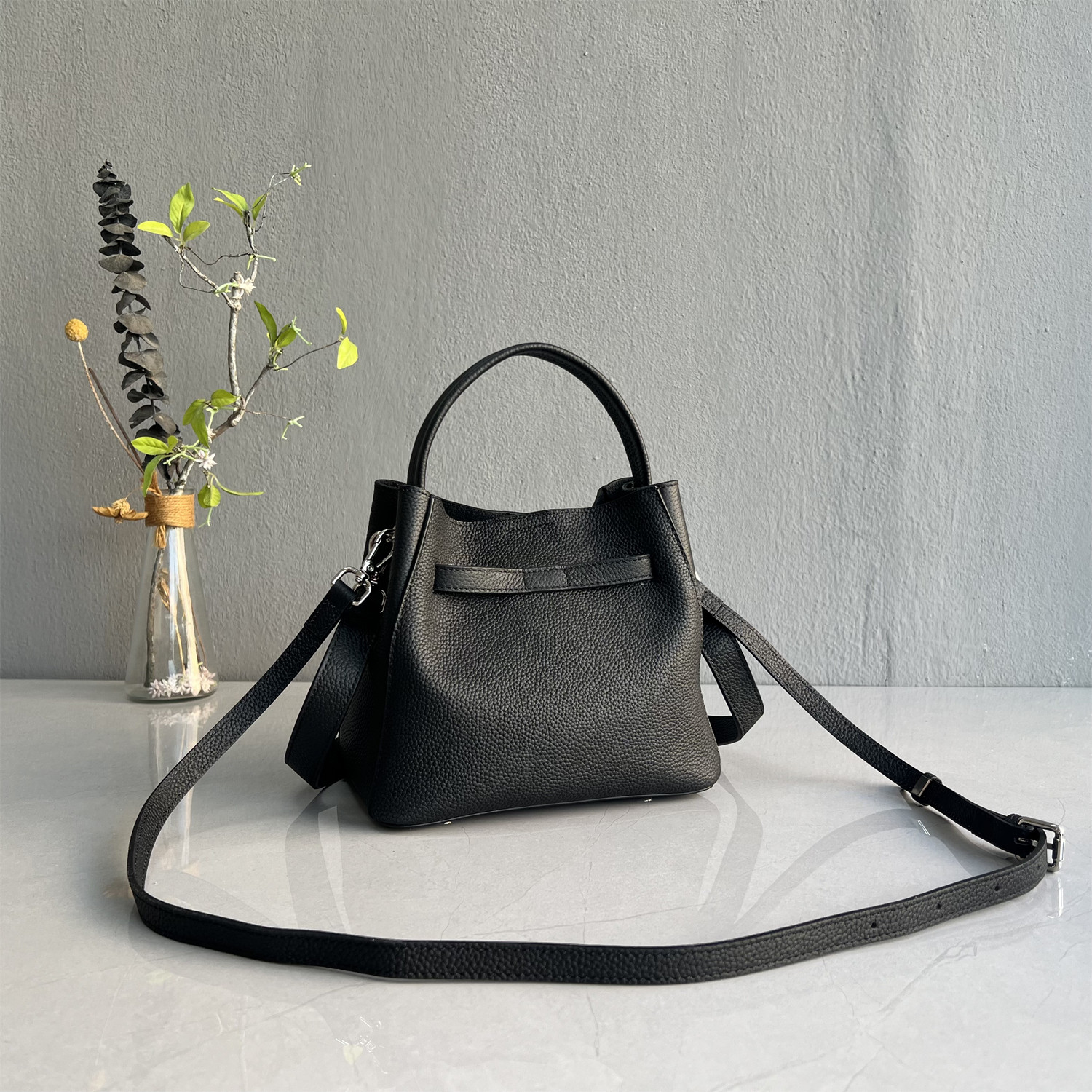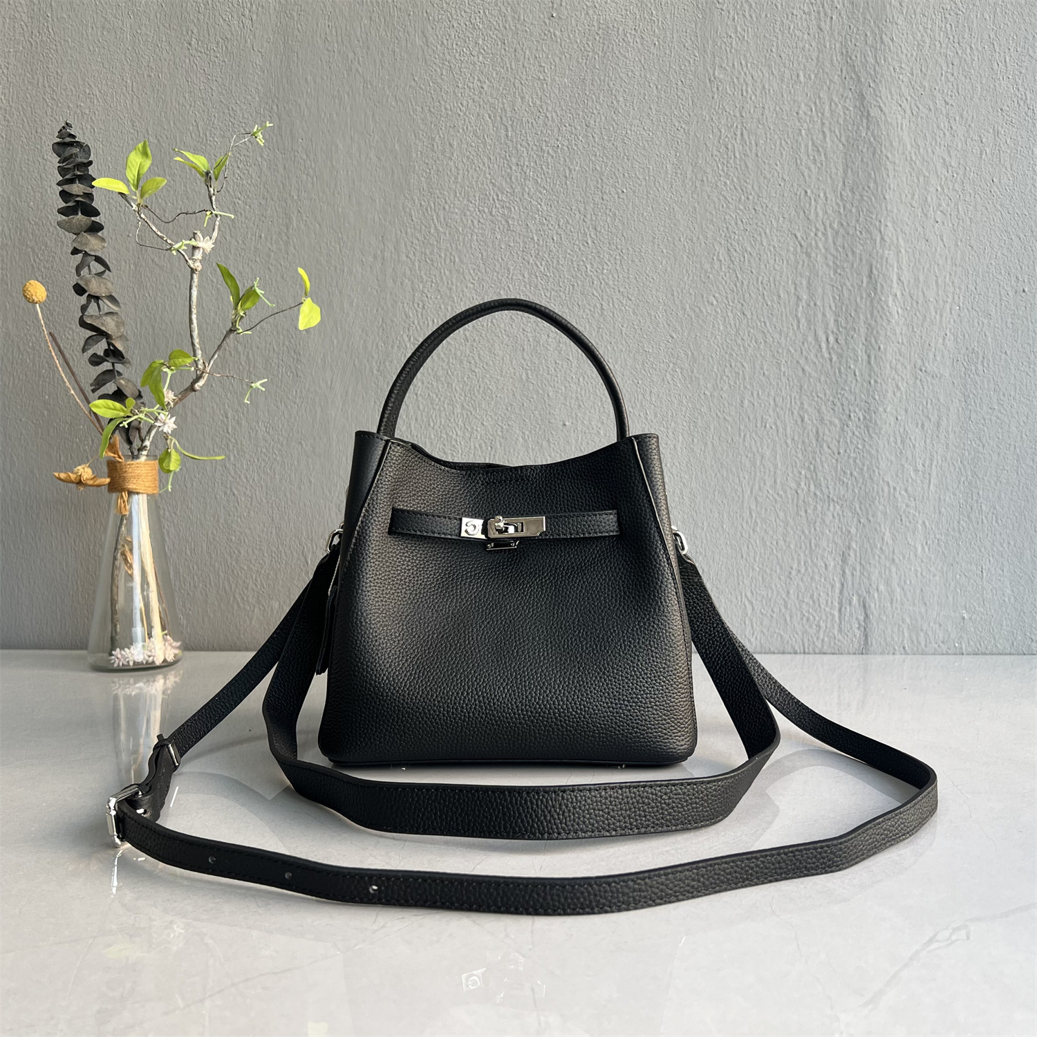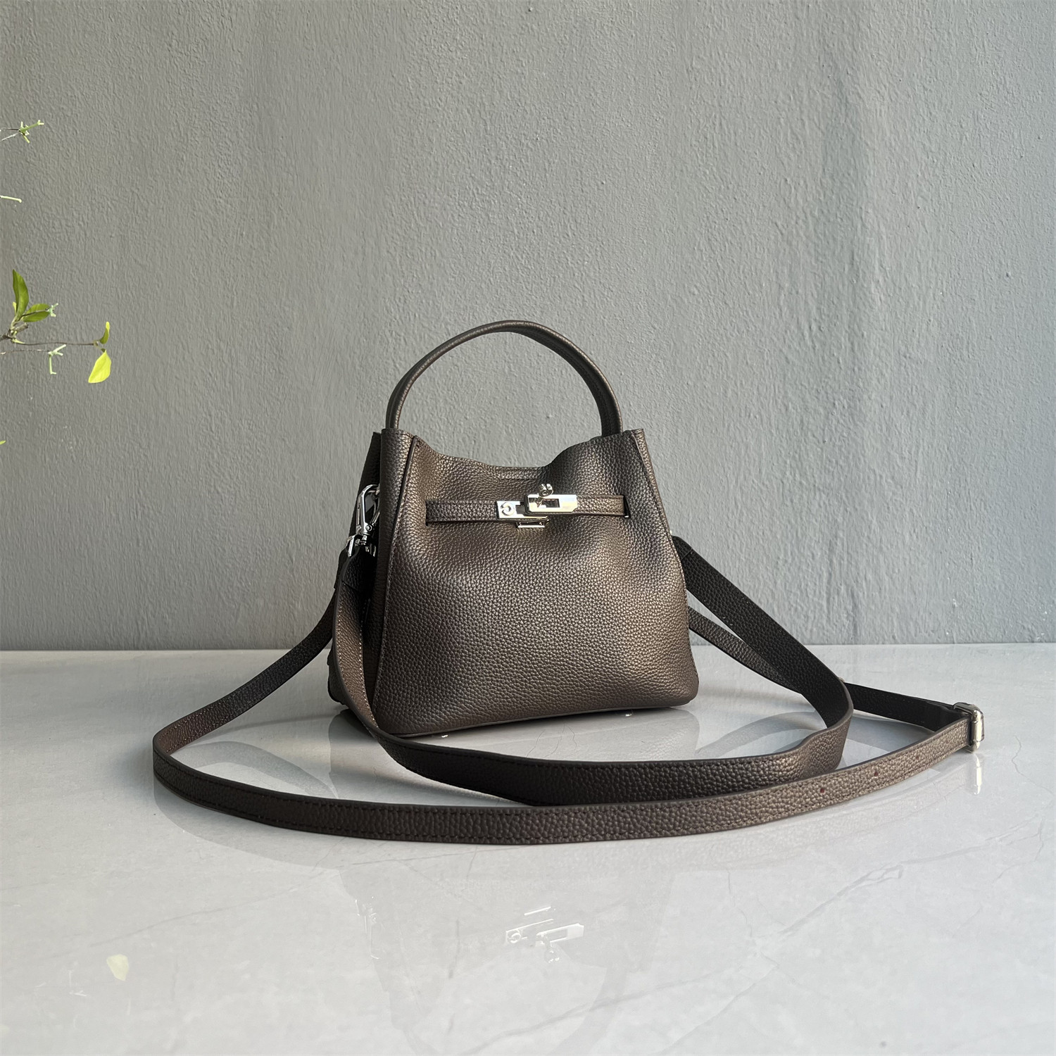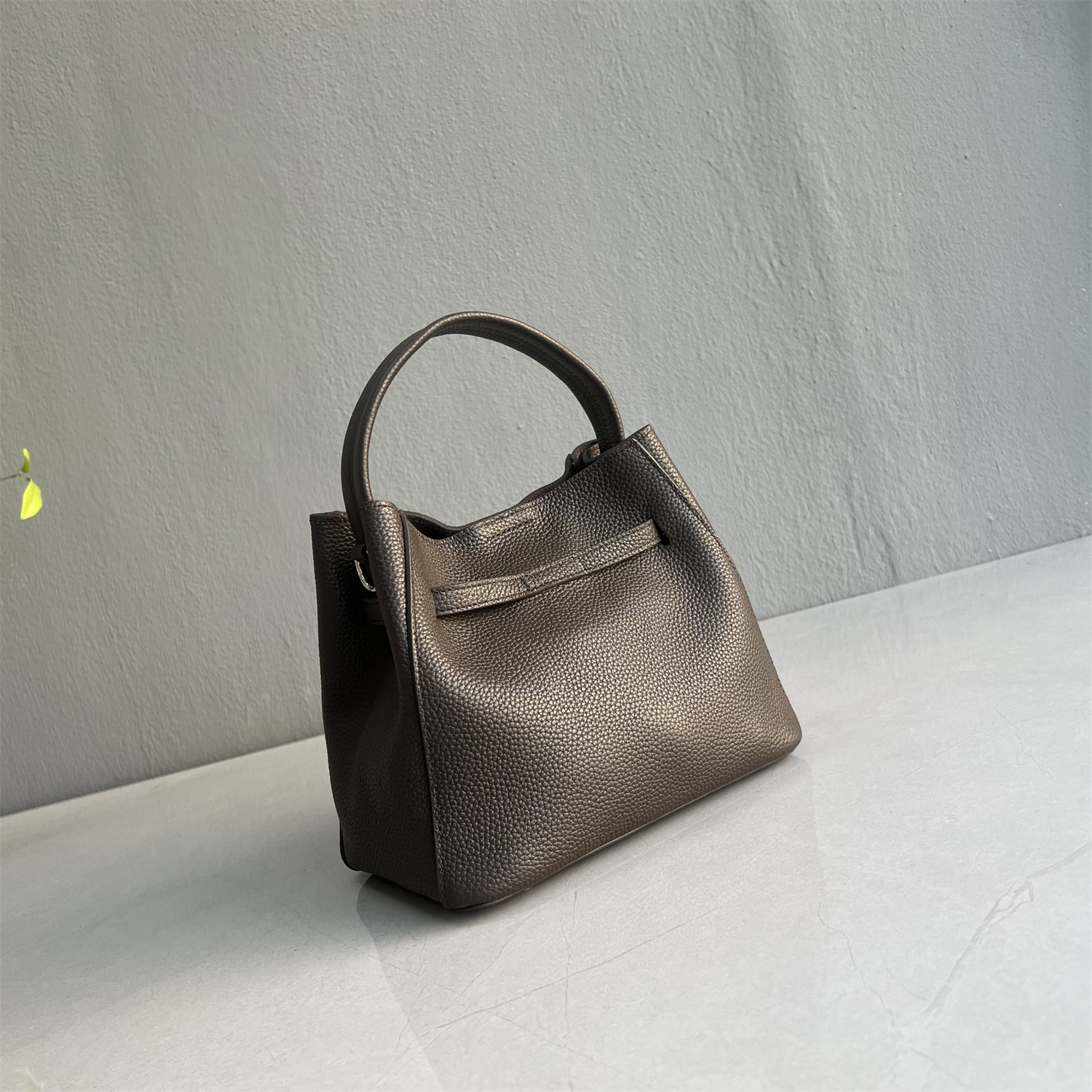 訂單~尾貨~特價新款小衆設計簡約純頭層牛皮菜籃子腋下水桶包