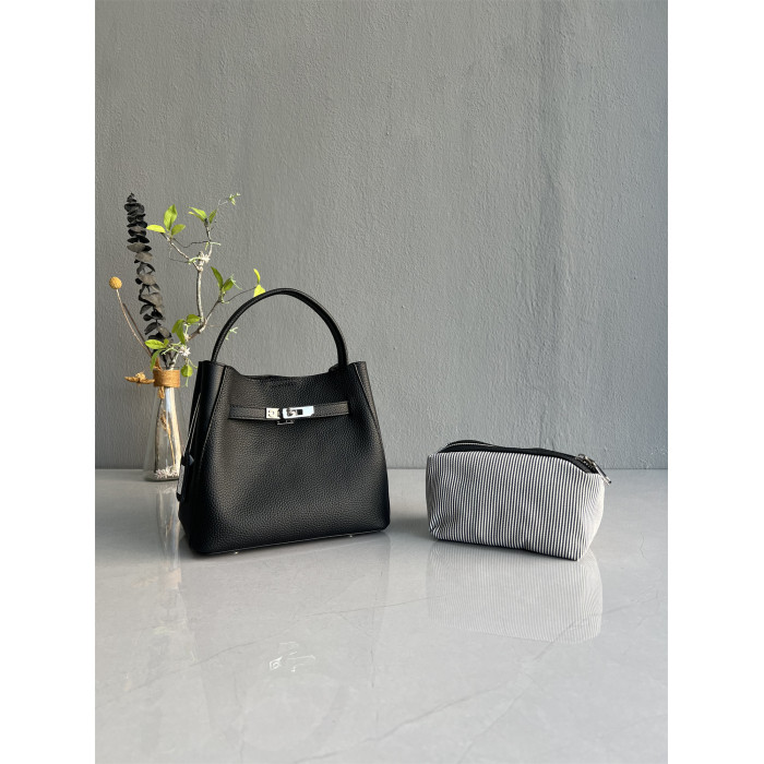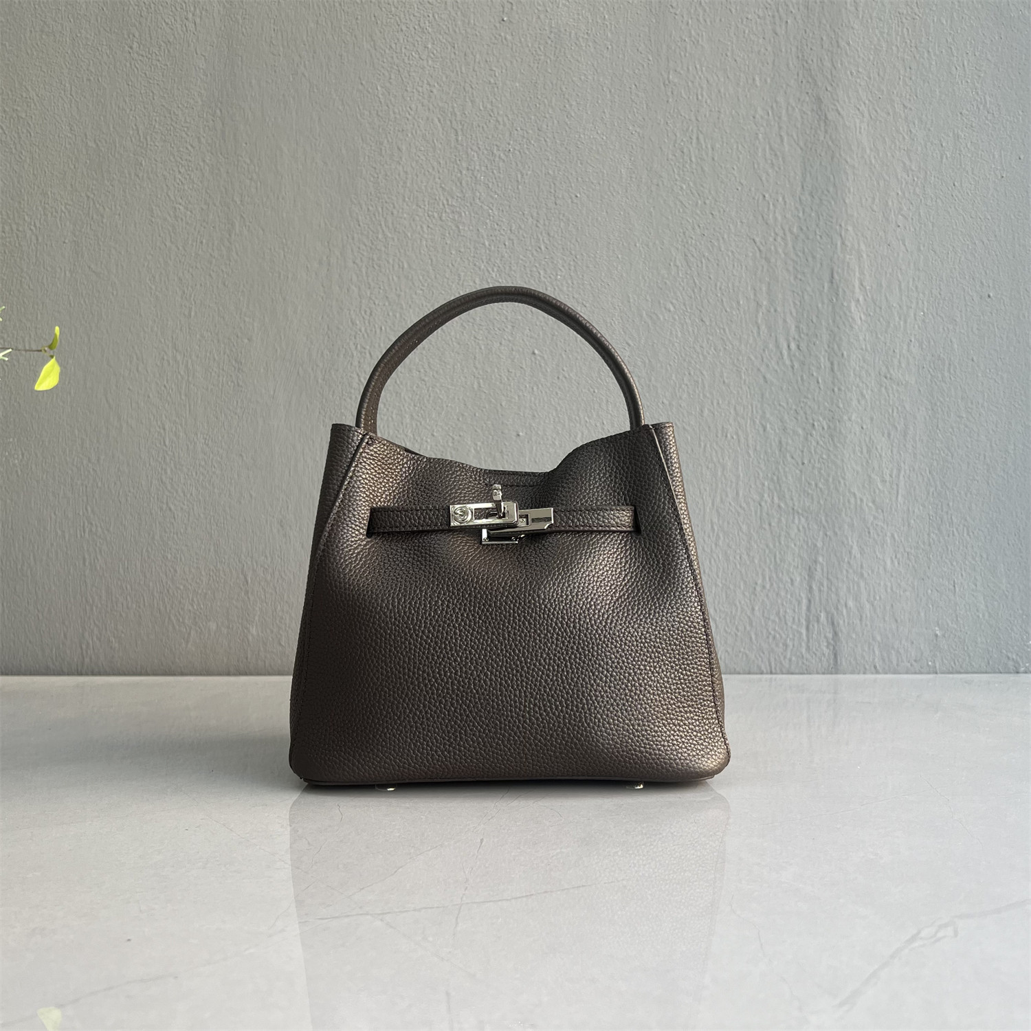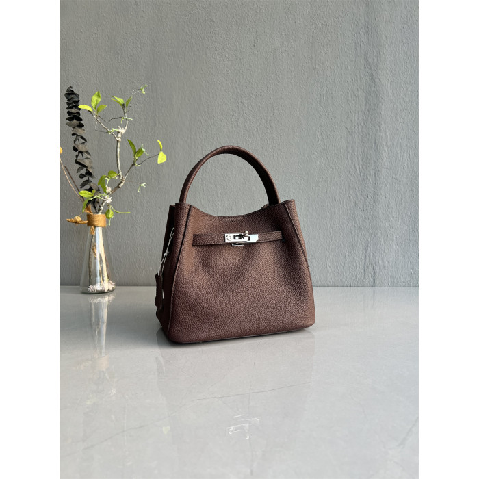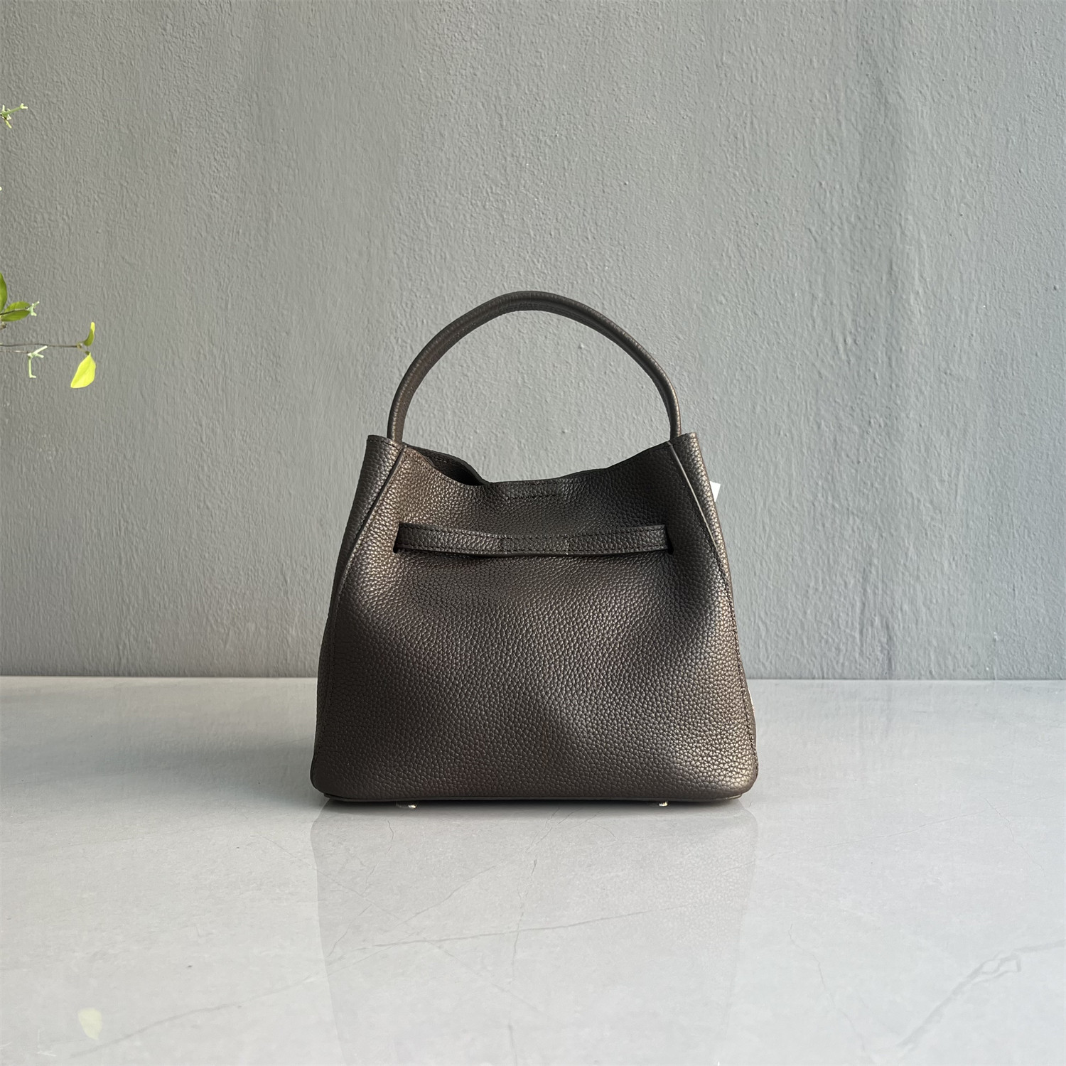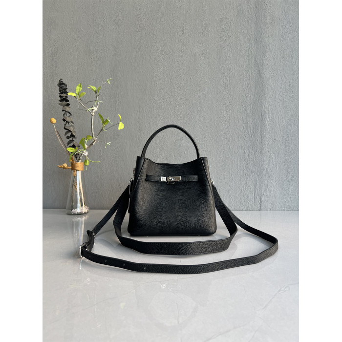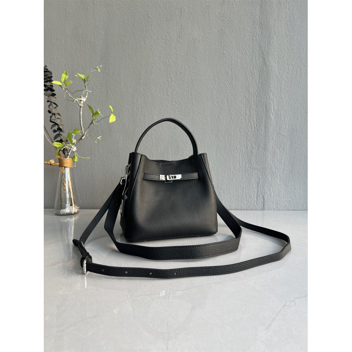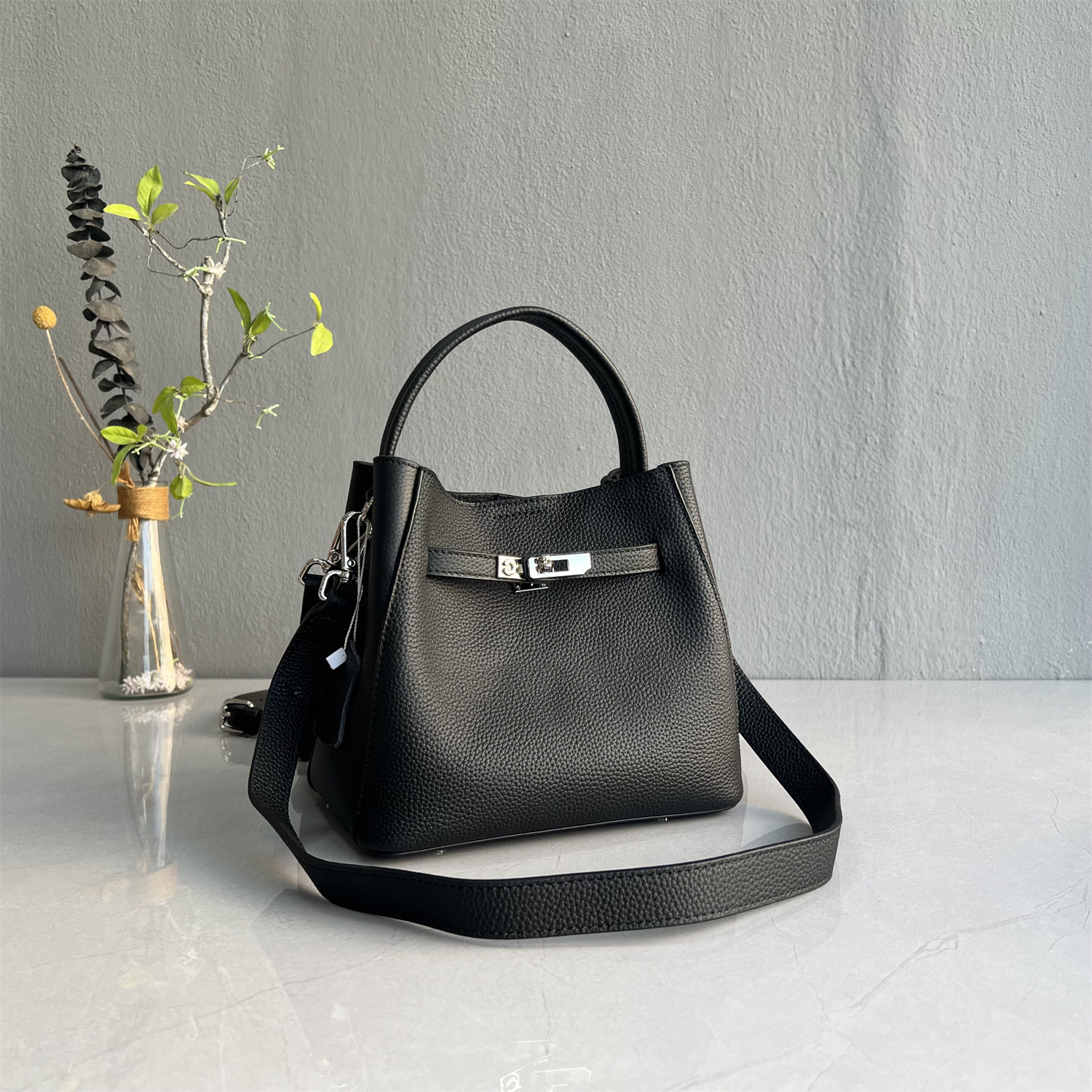 訂單~尾貨~特價新款小衆設計簡約純頭層牛皮菜籃子腋下水桶包