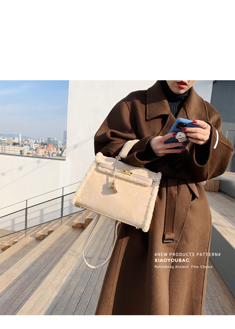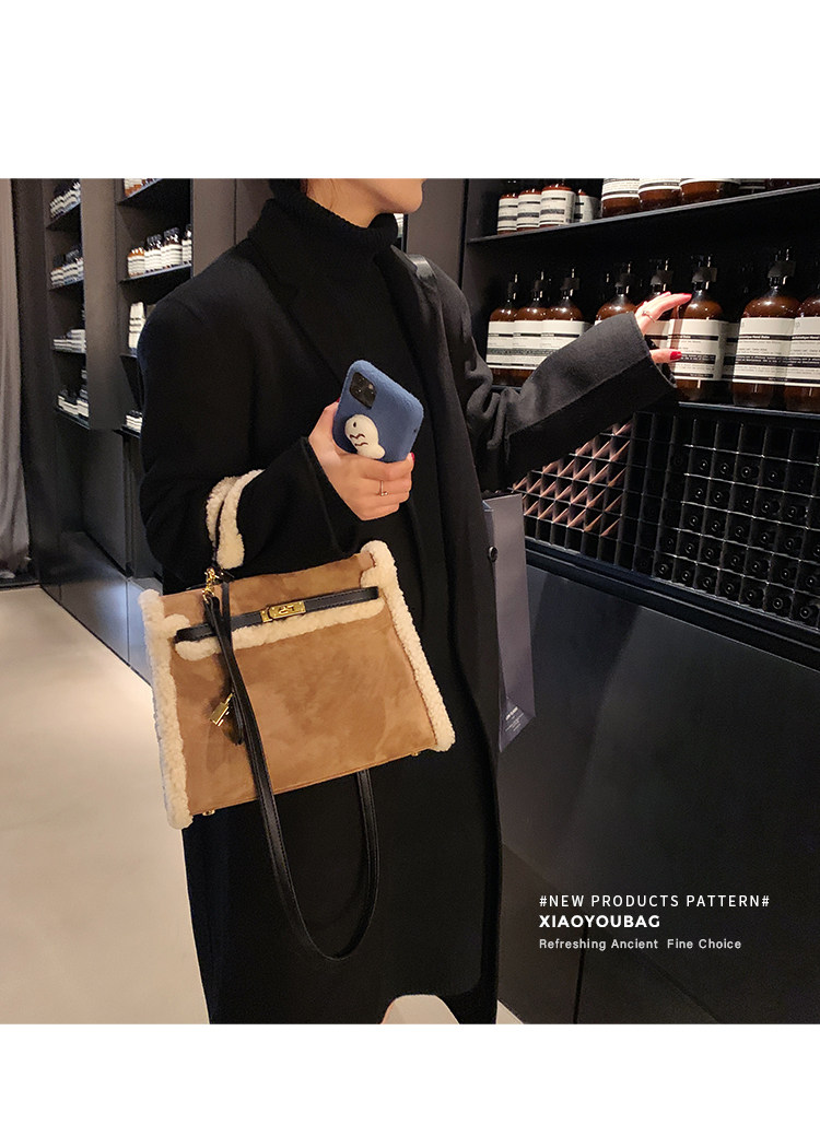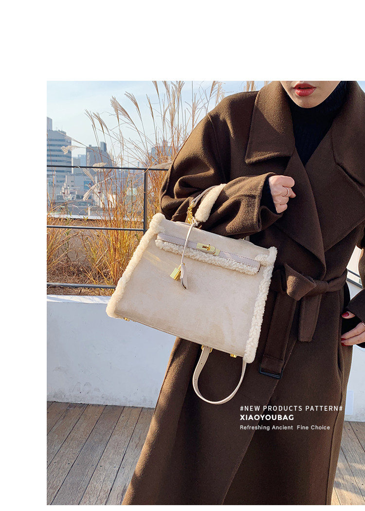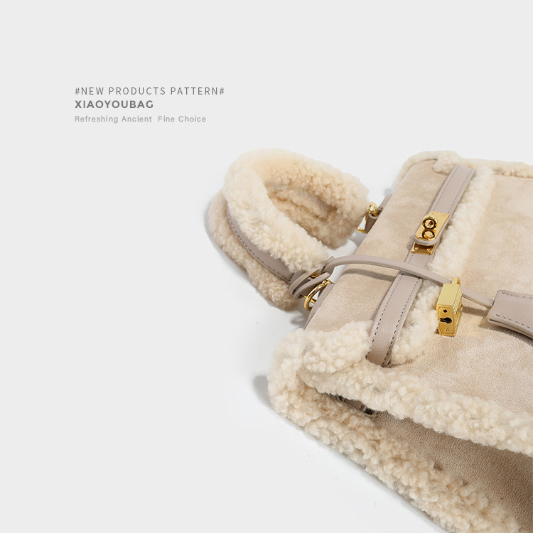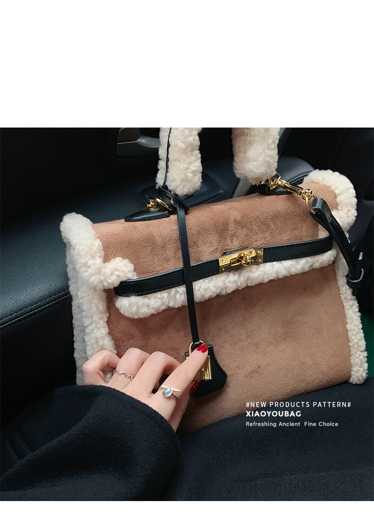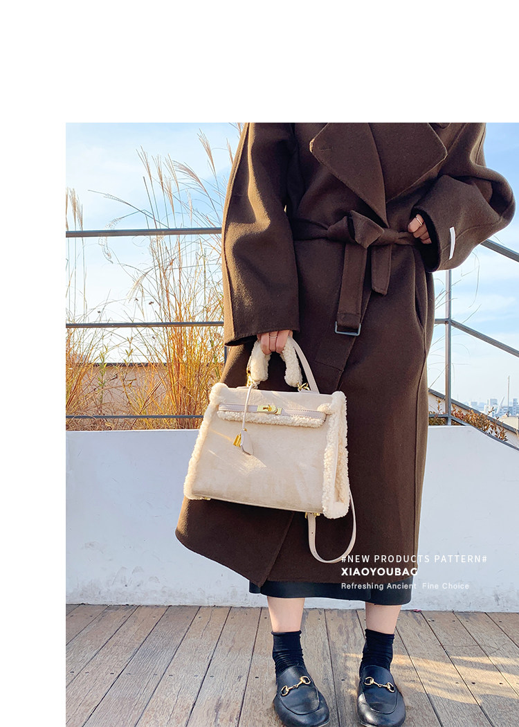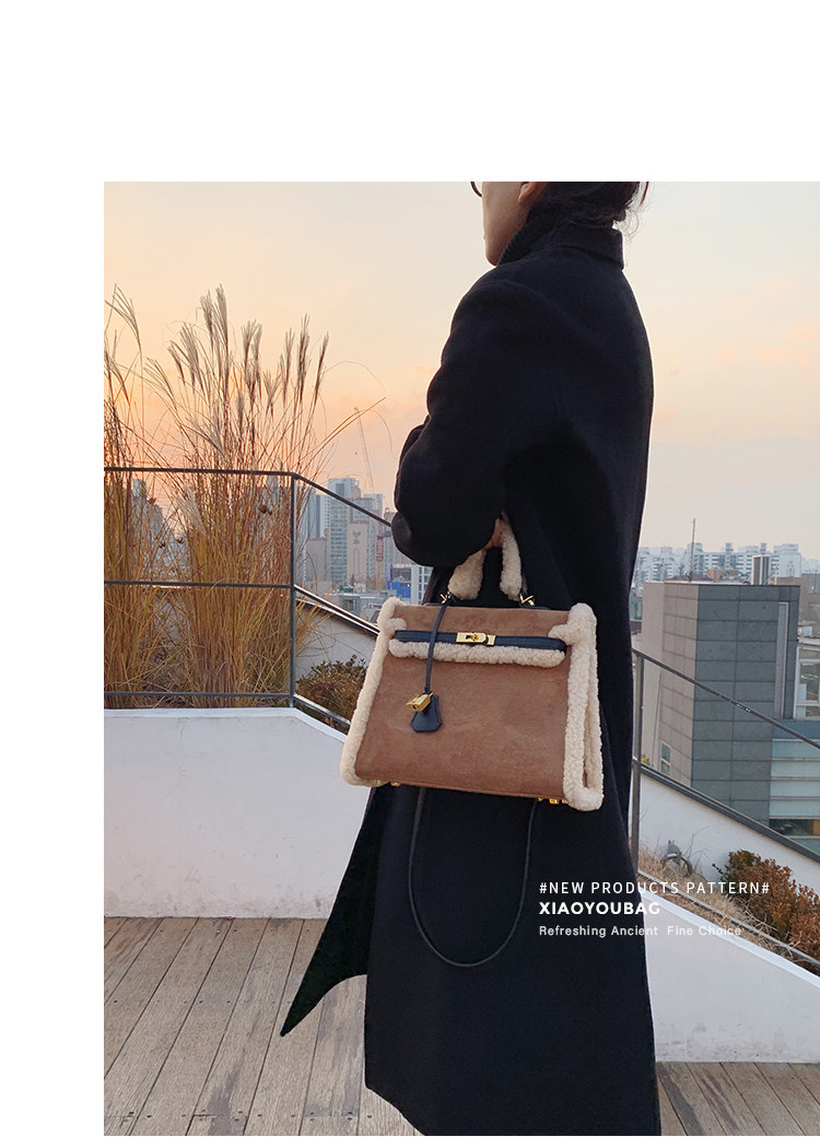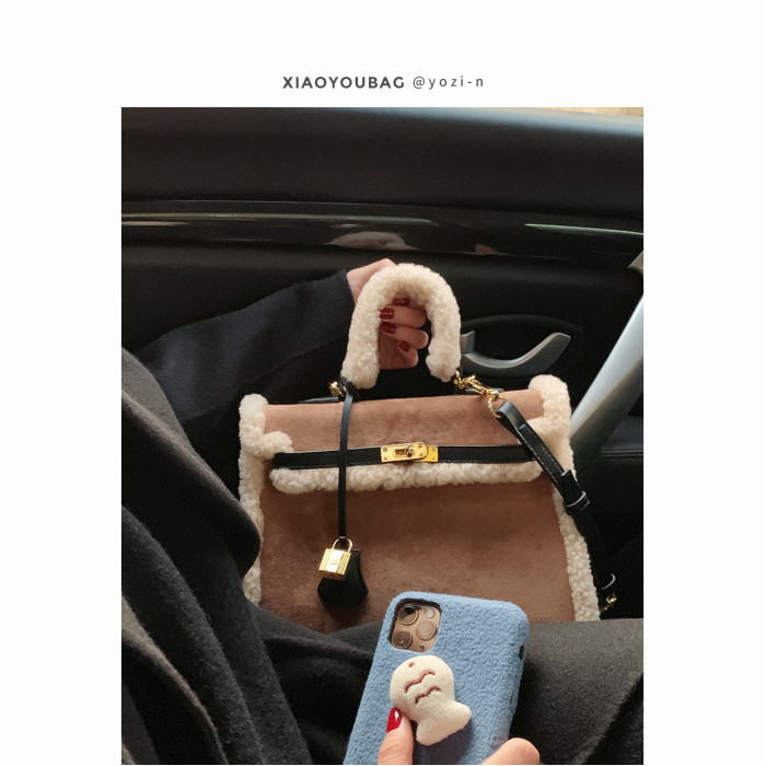 小優家包包 真羊羔毛包毛毛包包女大容量單肩手提包女包新款2026
