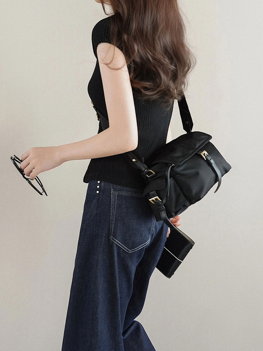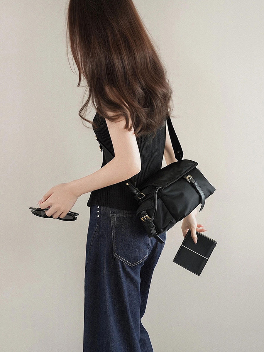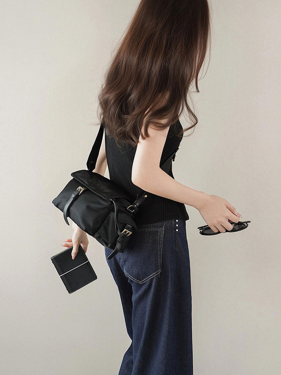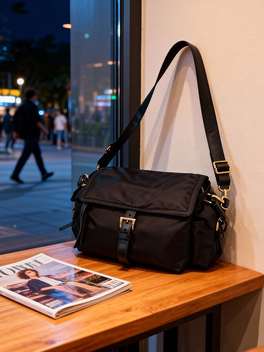 黑色真皮尼龍大容量托特包包女2026新款輕奢小衆高級感單肩斜後後背包