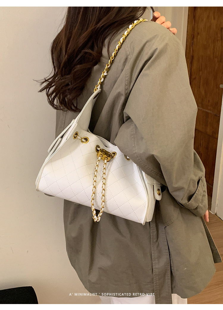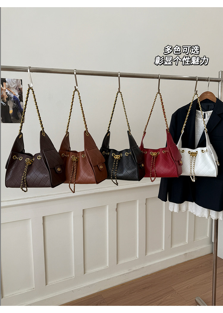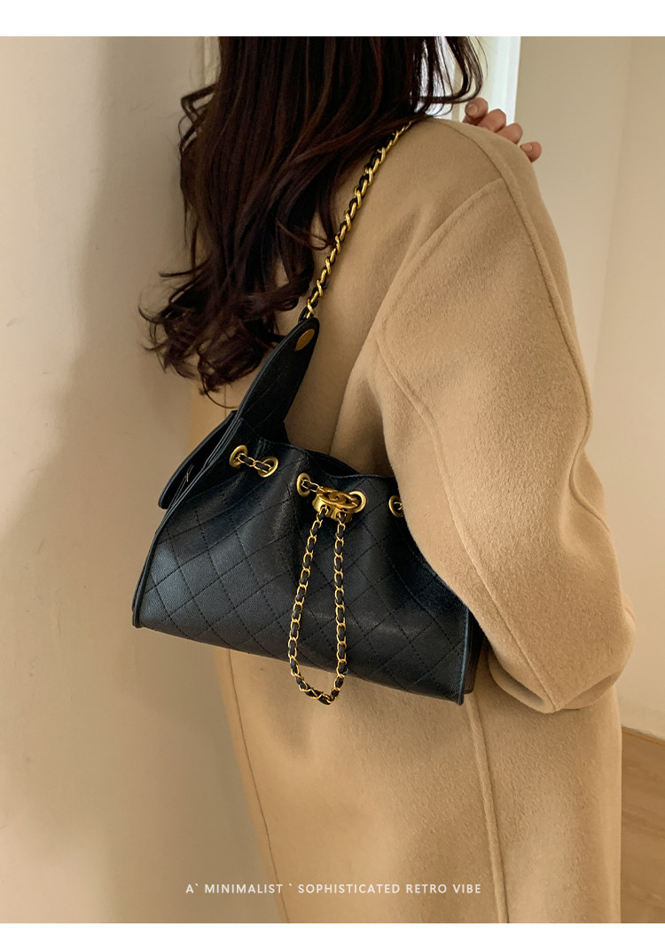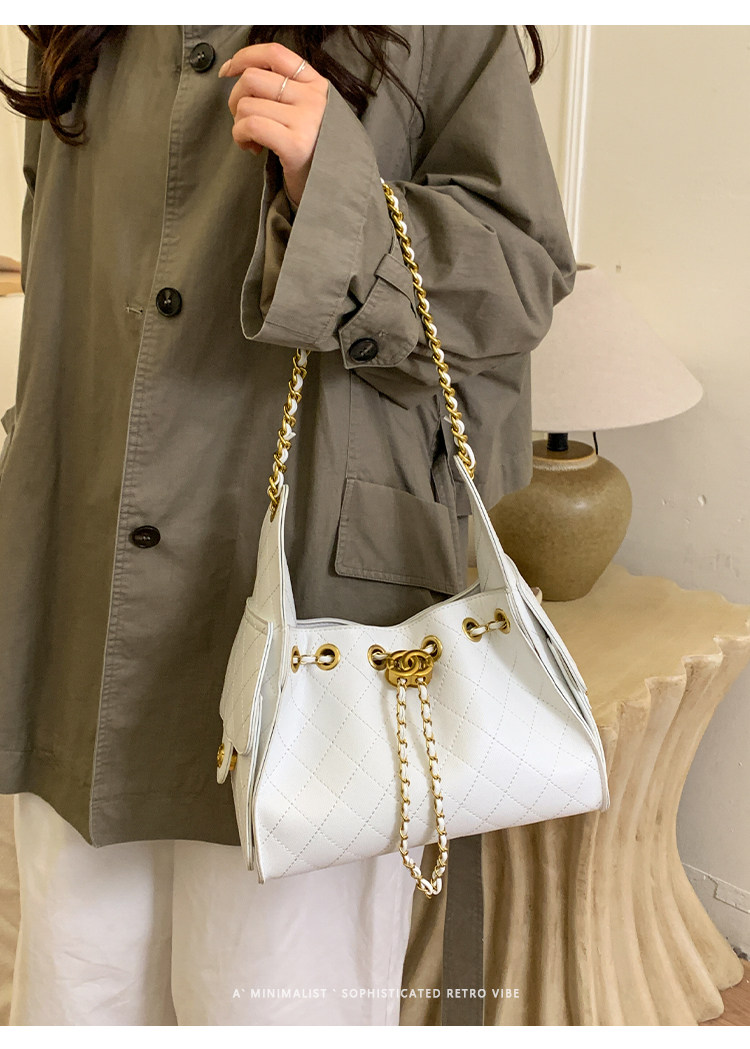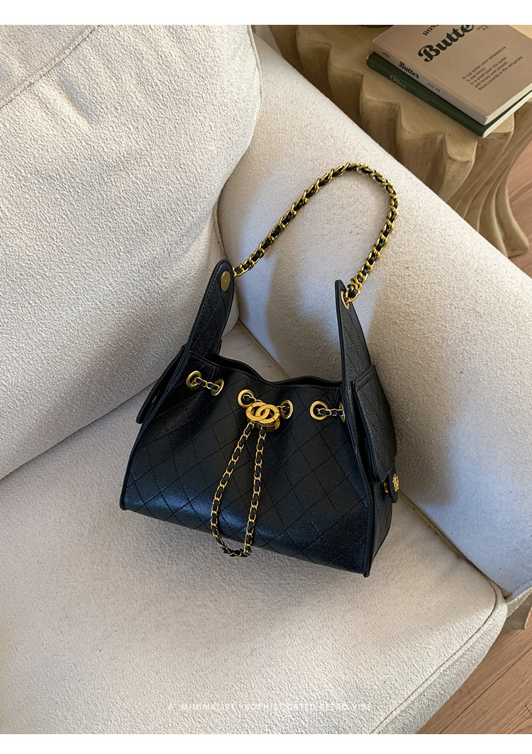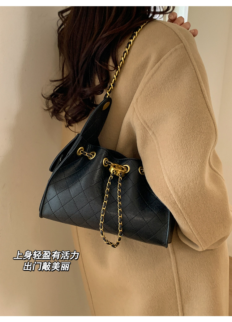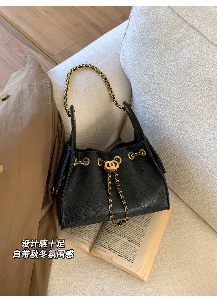 高級感小衆包包女2025新款秋冬百搭休閒單肩腋下包菱格鏈條水桶包