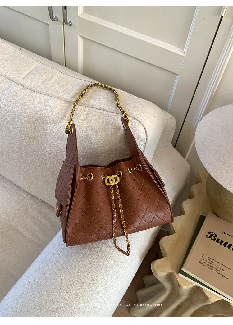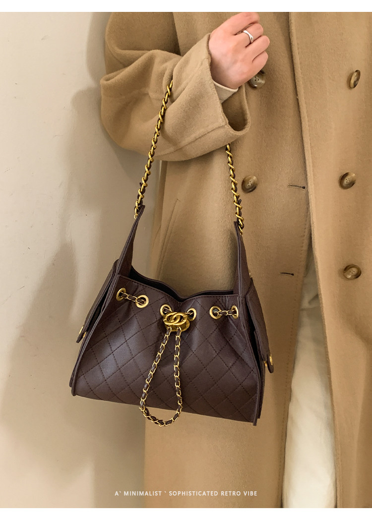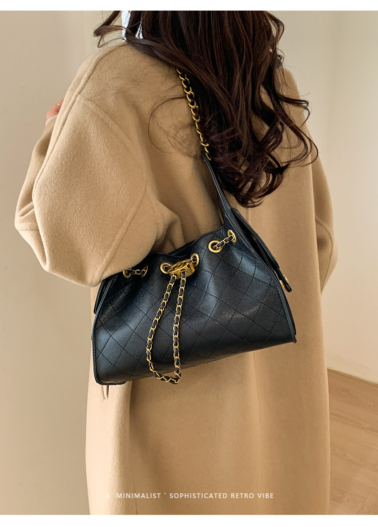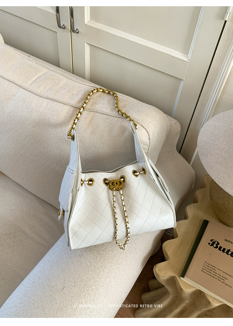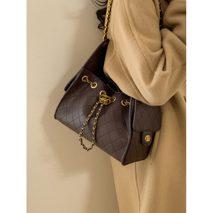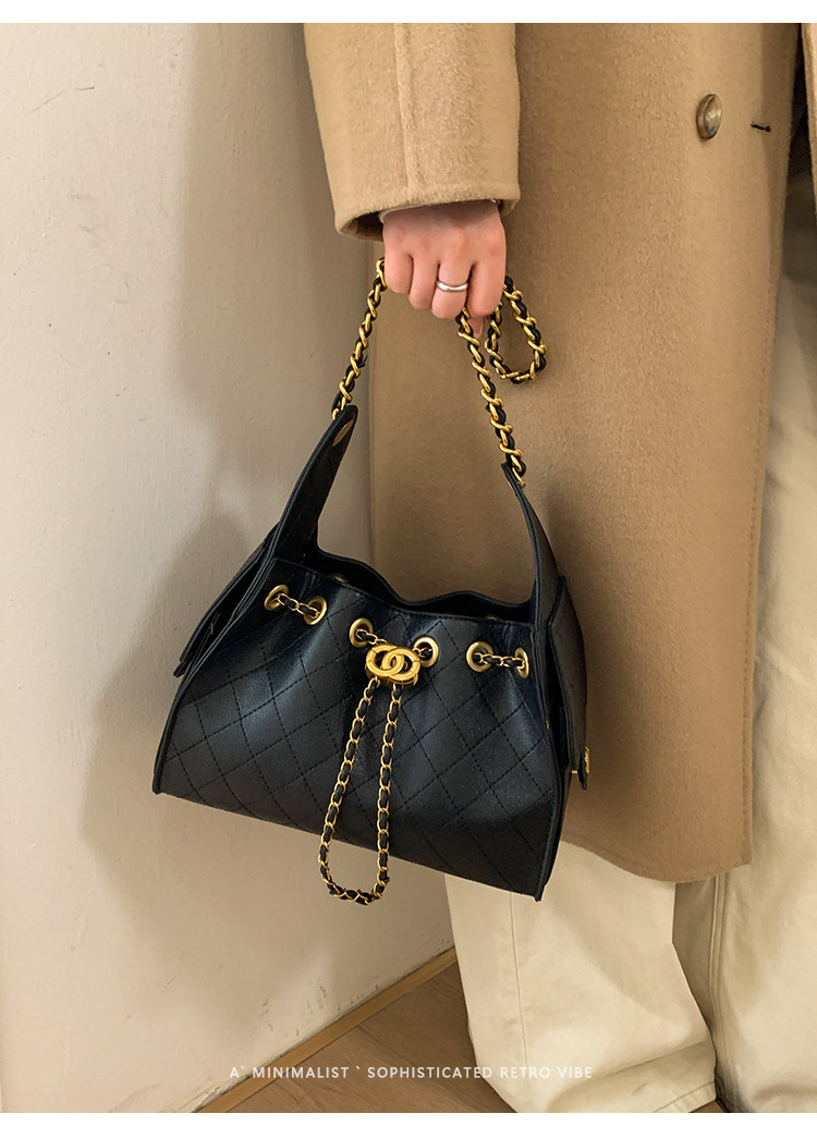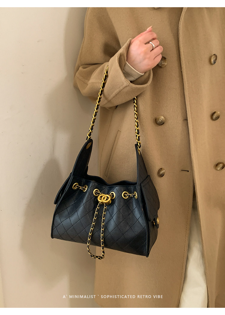 高級感小衆包包女2025新款秋冬百搭休閒單肩腋下包菱格鏈條水桶包