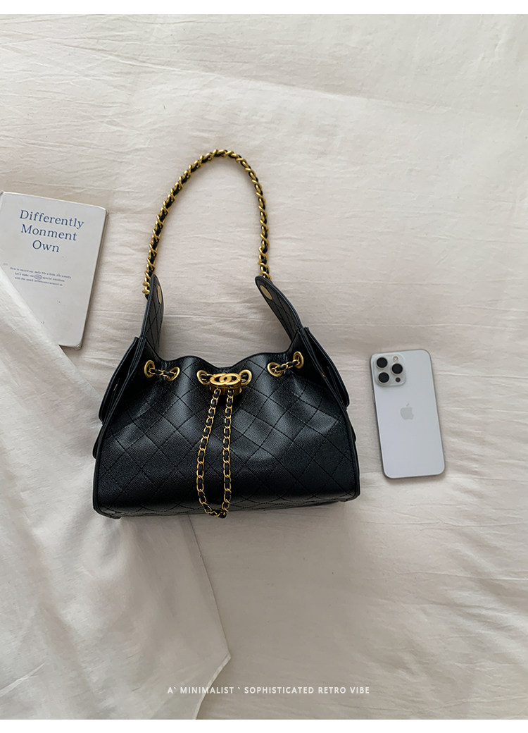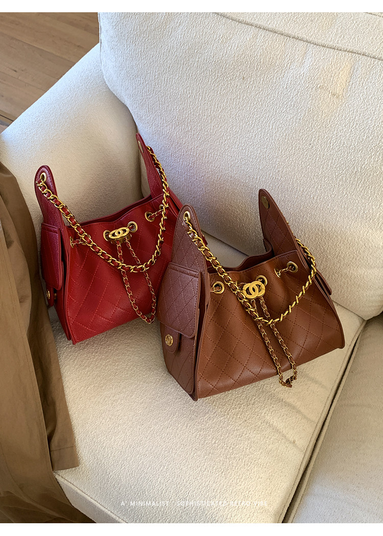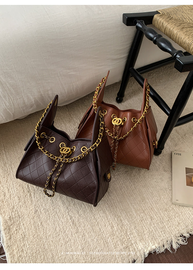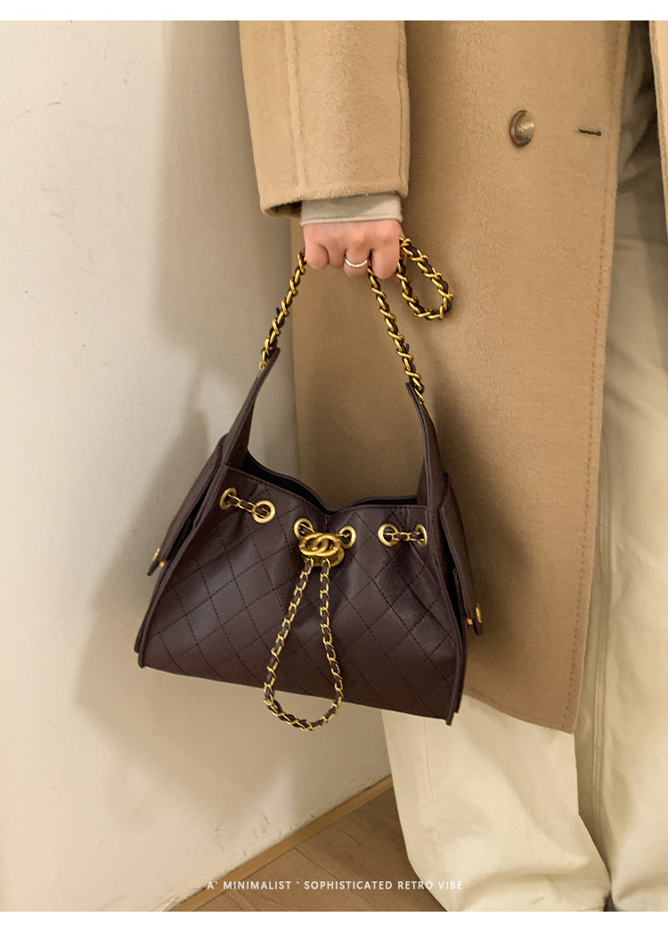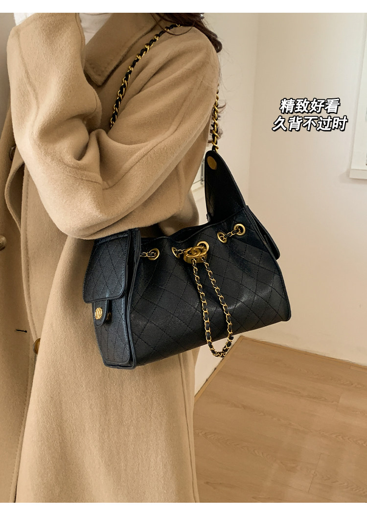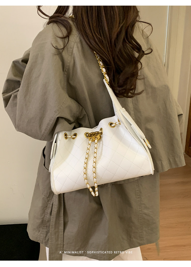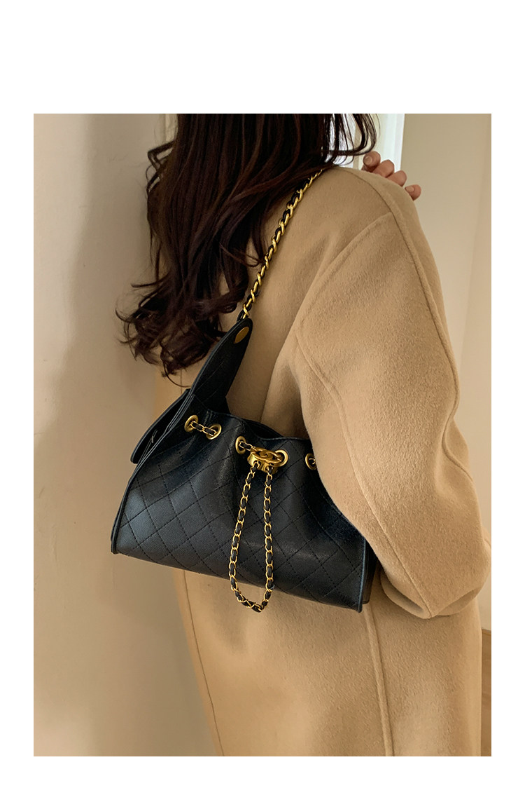 高級感小衆包包女2025新款秋冬百搭休閒單肩腋下包菱格鏈條水桶包