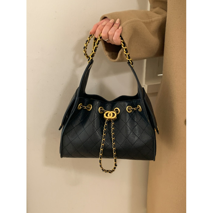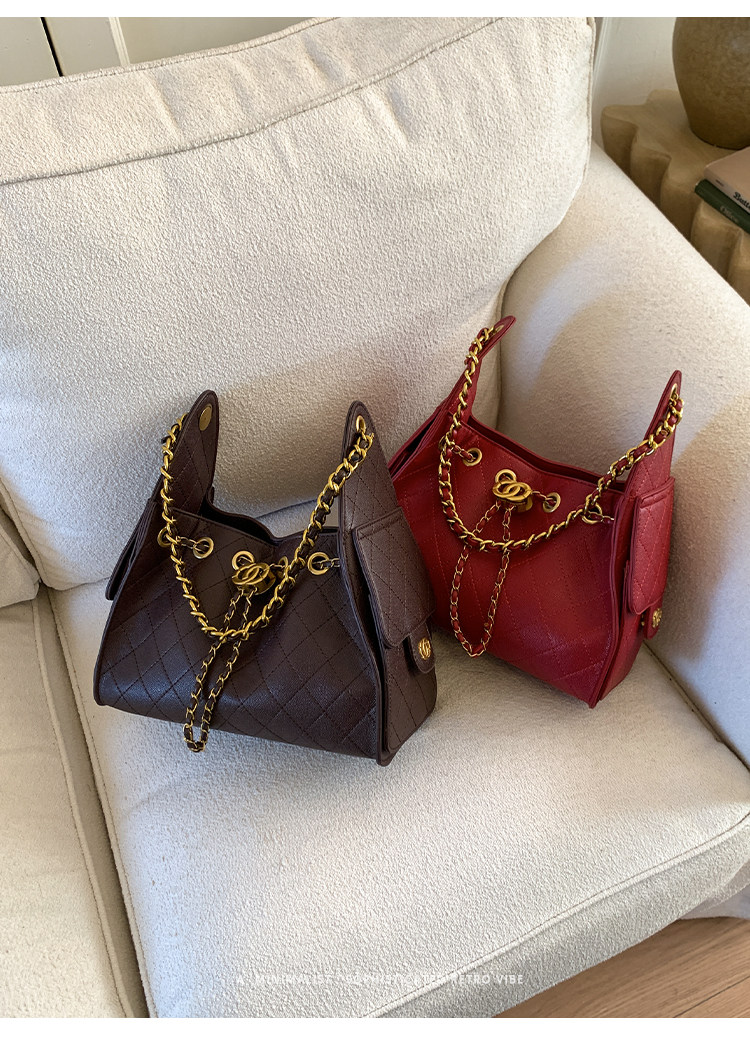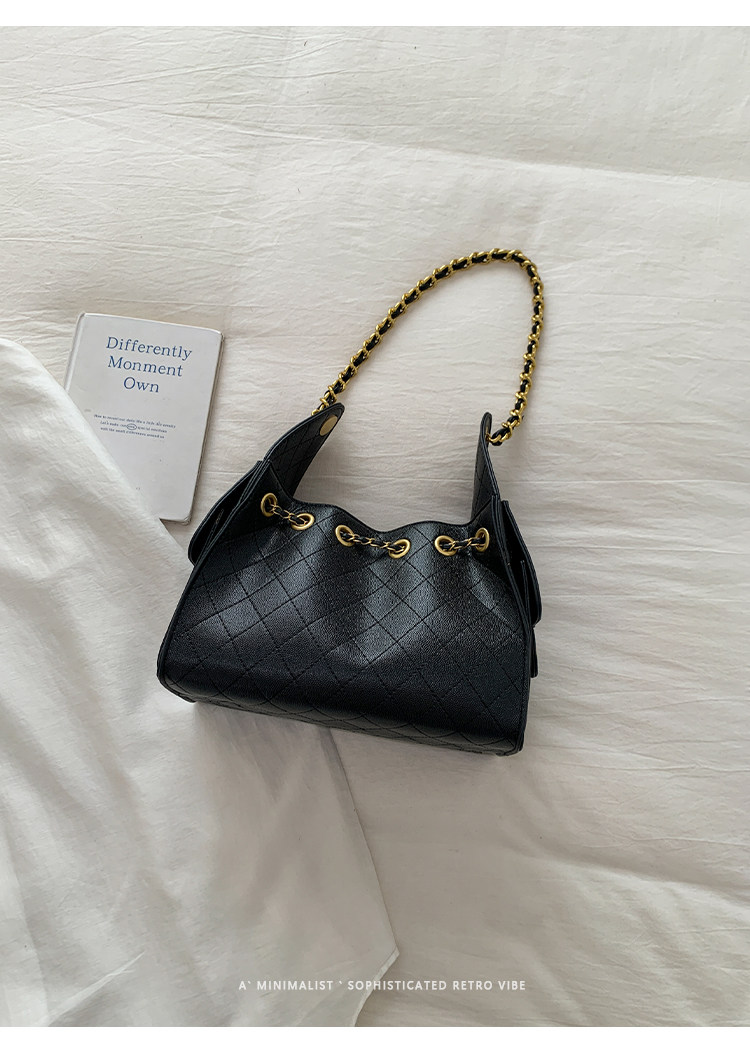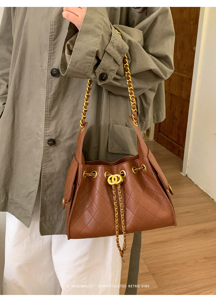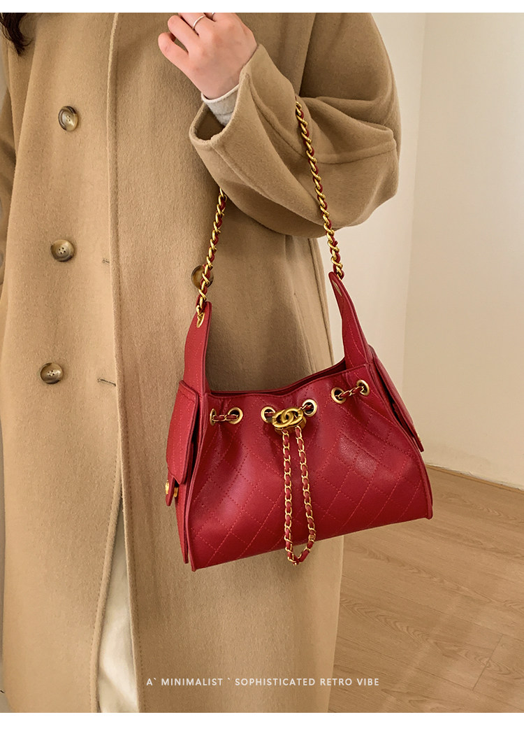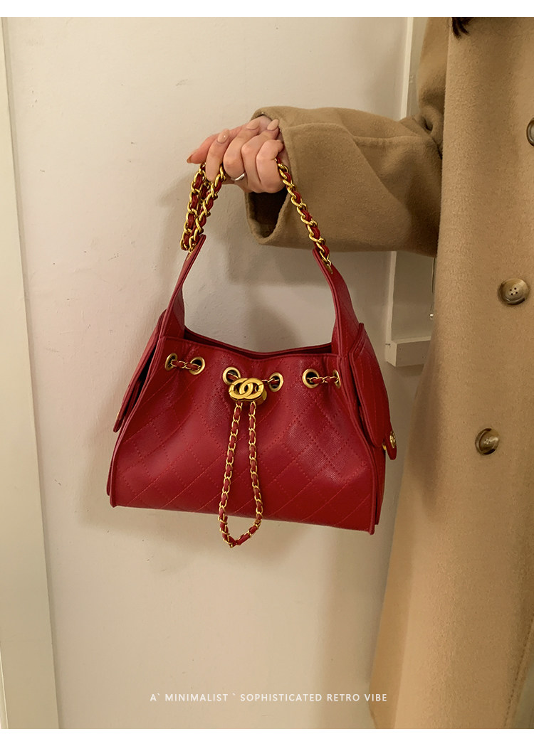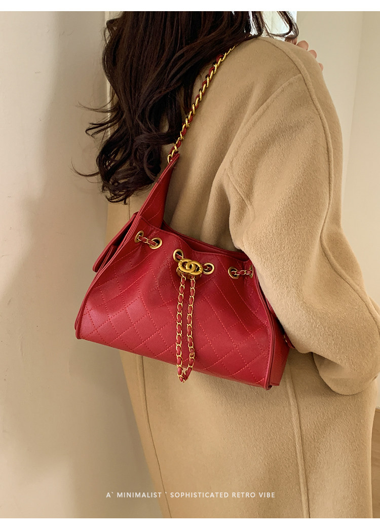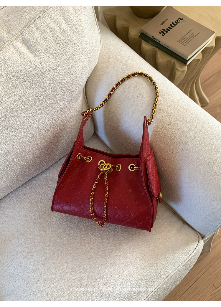 高級感小衆包包女2025新款秋冬百搭休閒單肩腋下包菱格鏈條水桶包