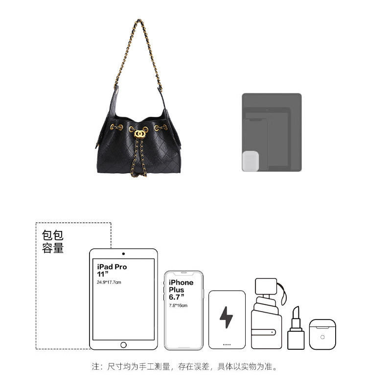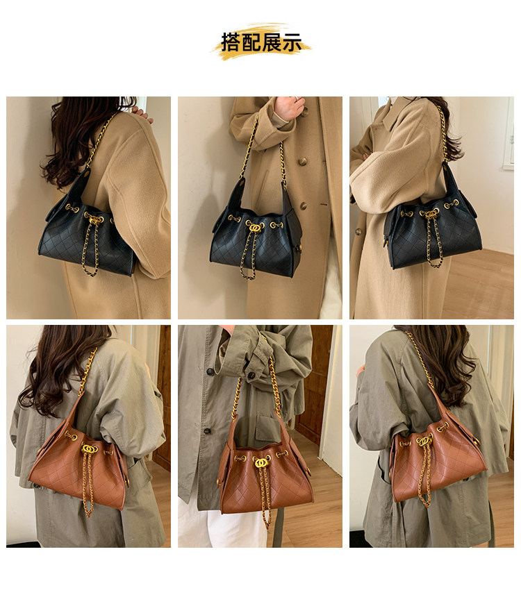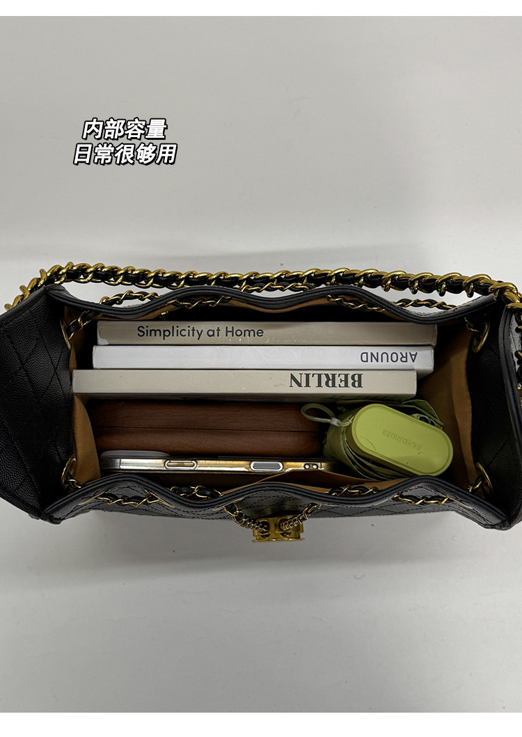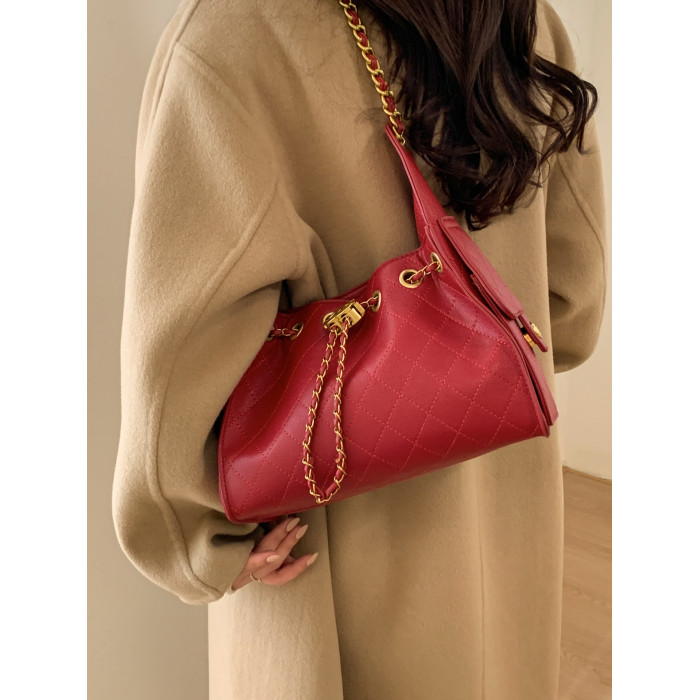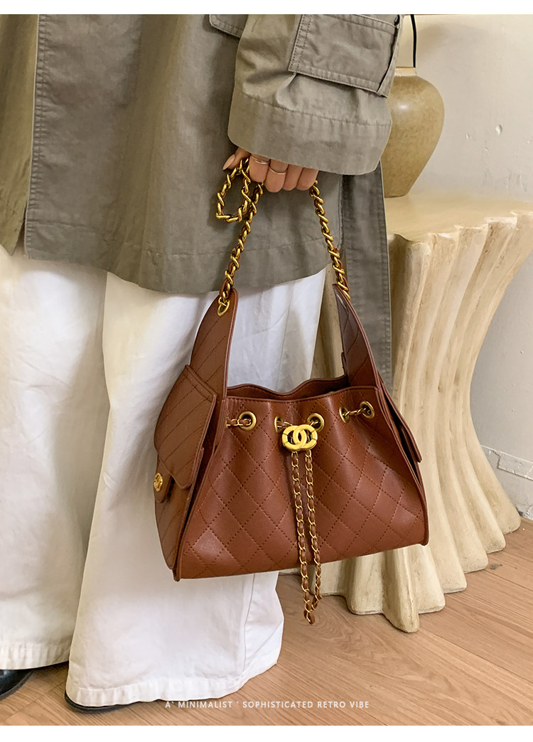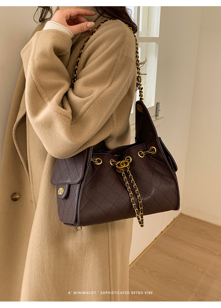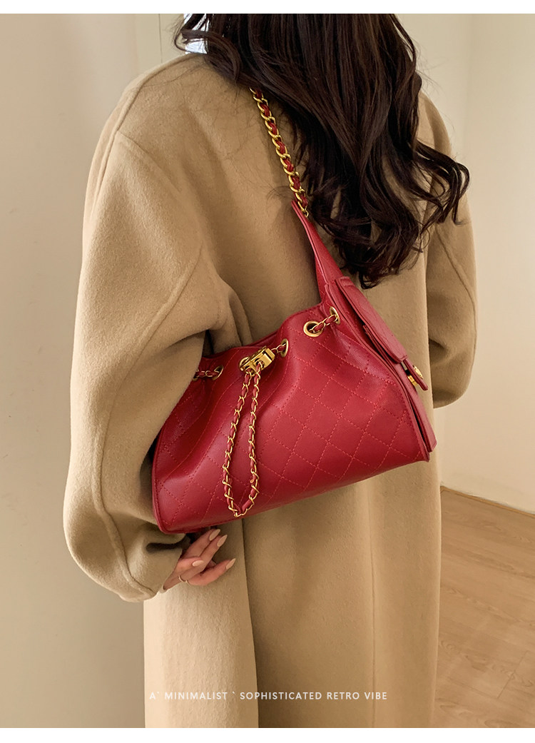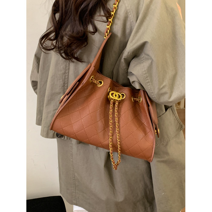 高級感小衆包包女2025新款秋冬百搭休閒單肩腋下包菱格鏈條水桶包