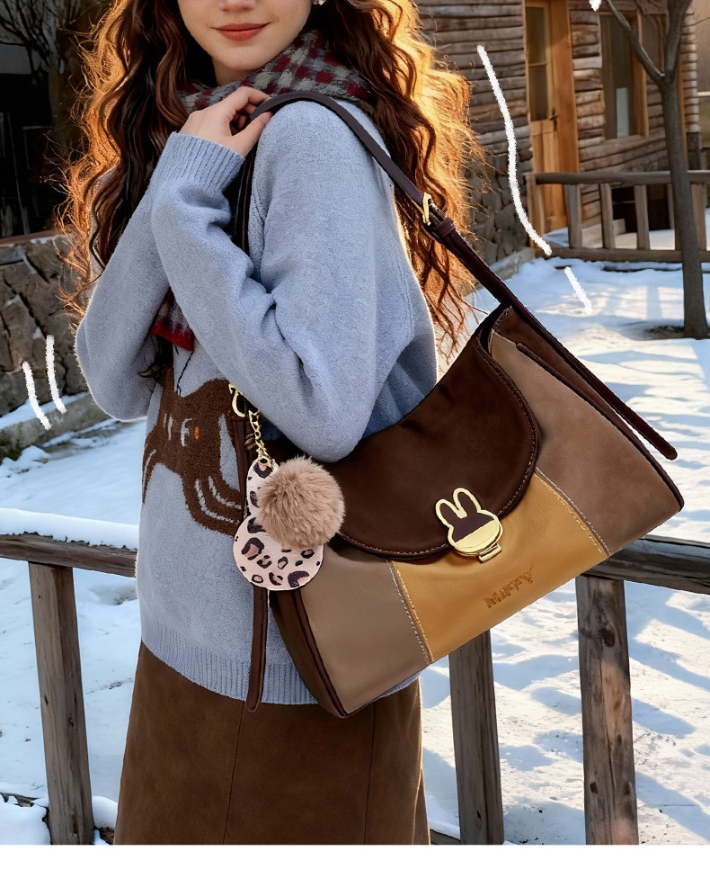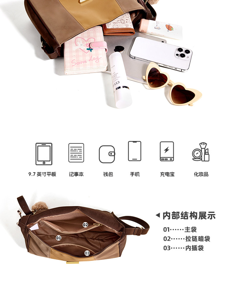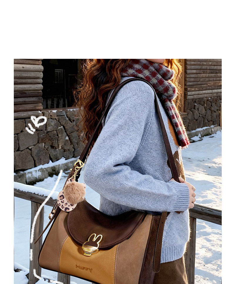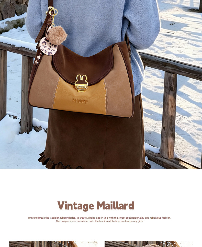 米菲大容量托特包復古拼色單肩hobo包氣質百搭通勤腋下包斜後後背包包