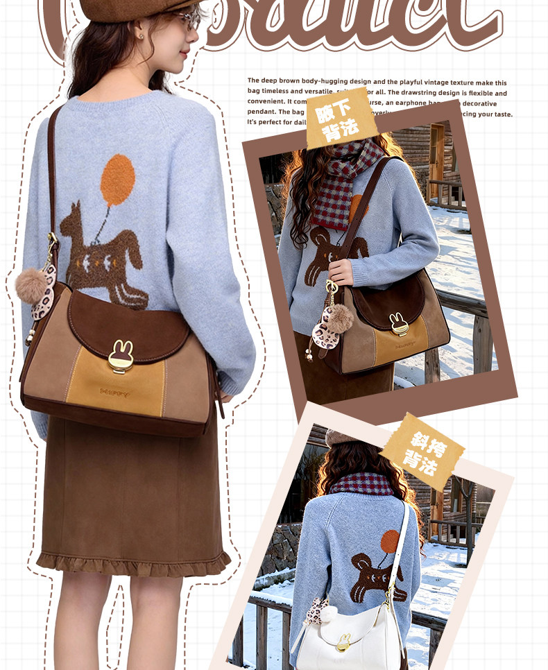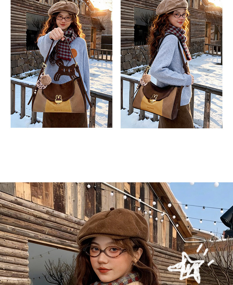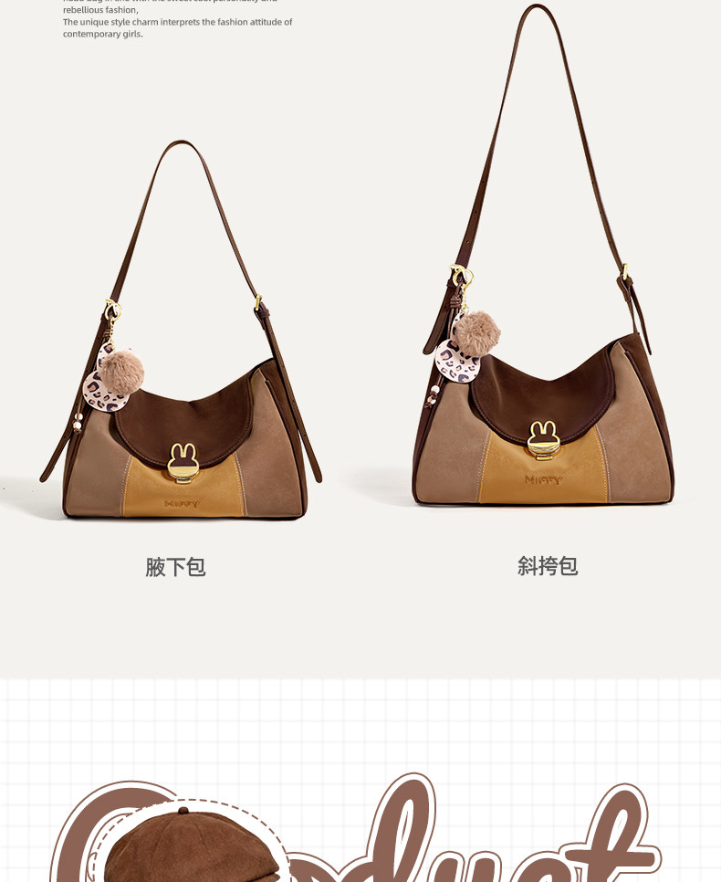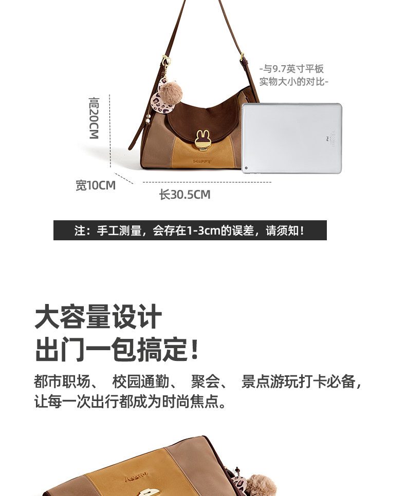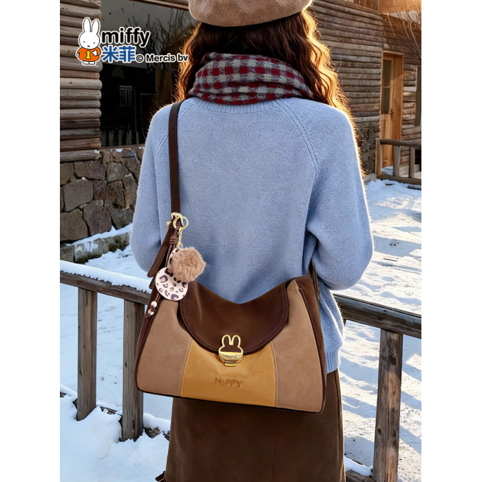 米菲大容量托特包復古拼色單肩hobo包氣質百搭通勤腋下包斜後後背包包