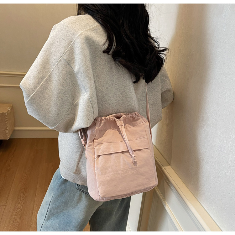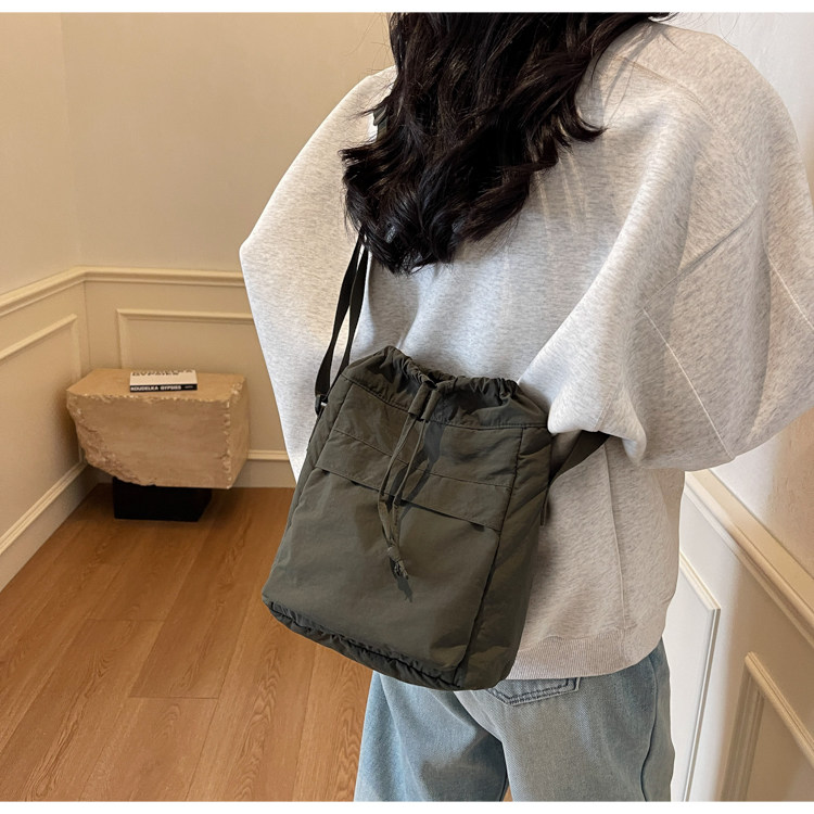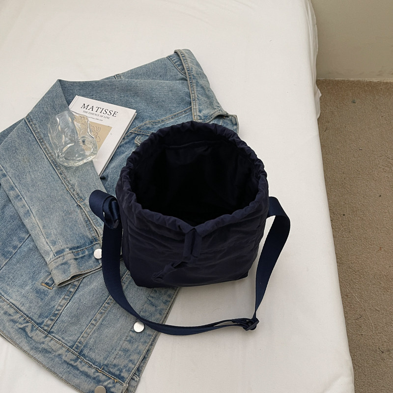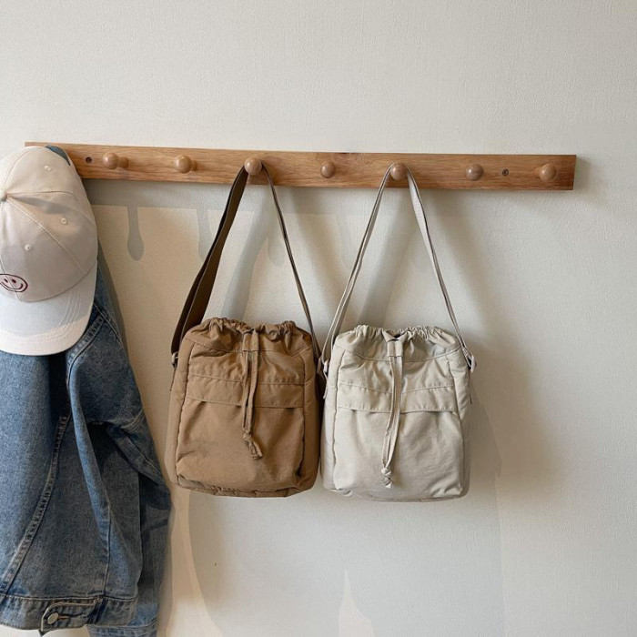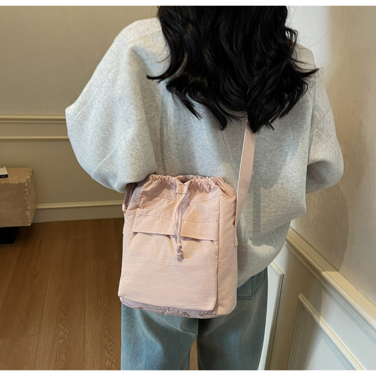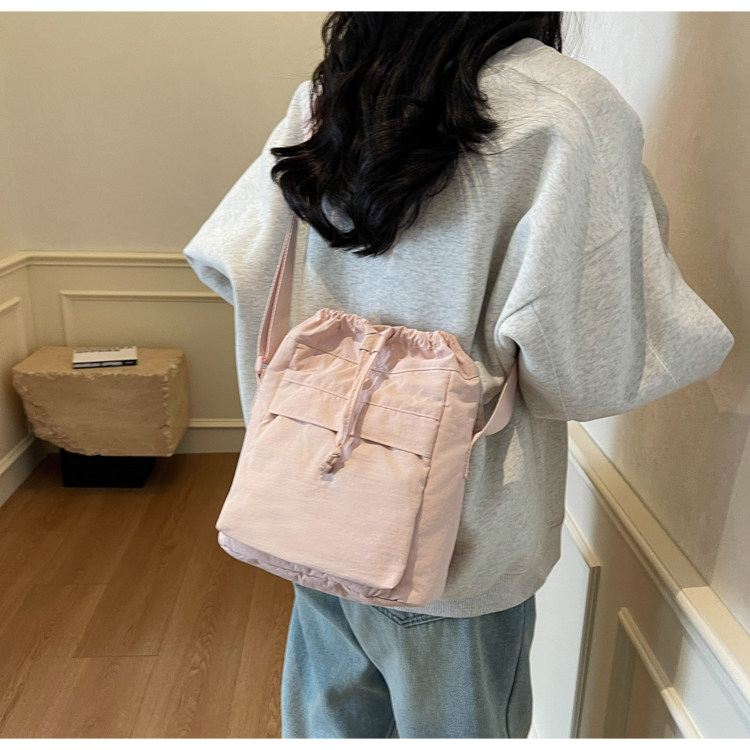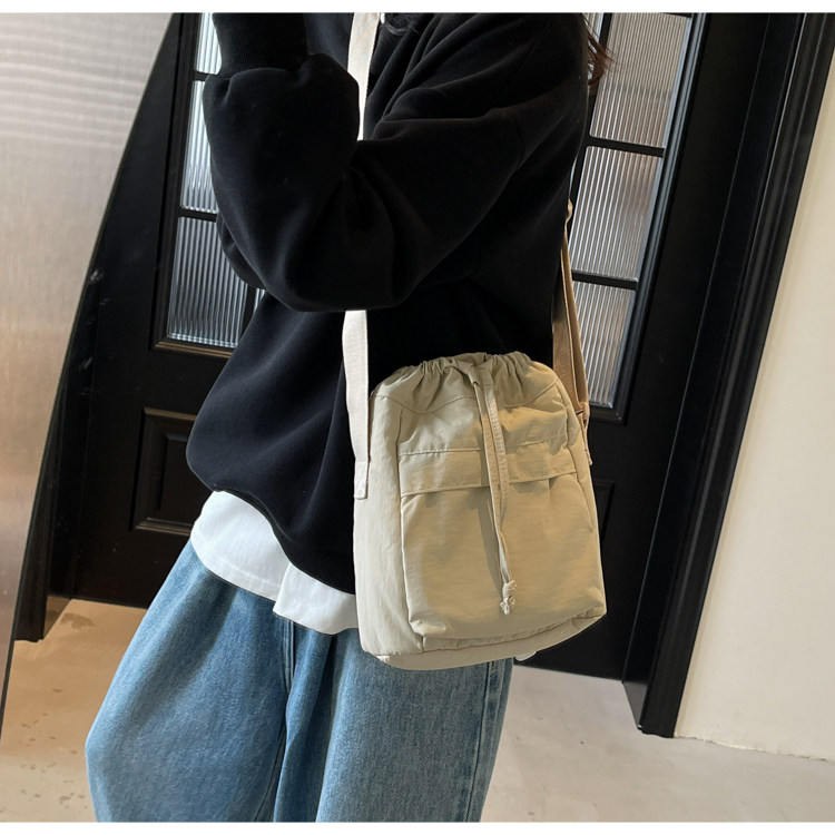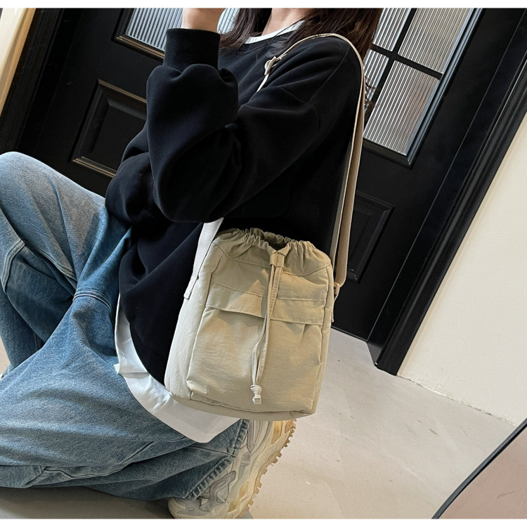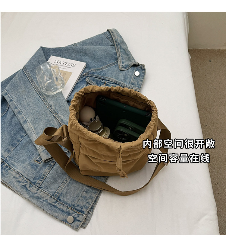 韓國chic小布包女斜背抽帶水桶包 日韓系文藝休閒百搭斜背小包